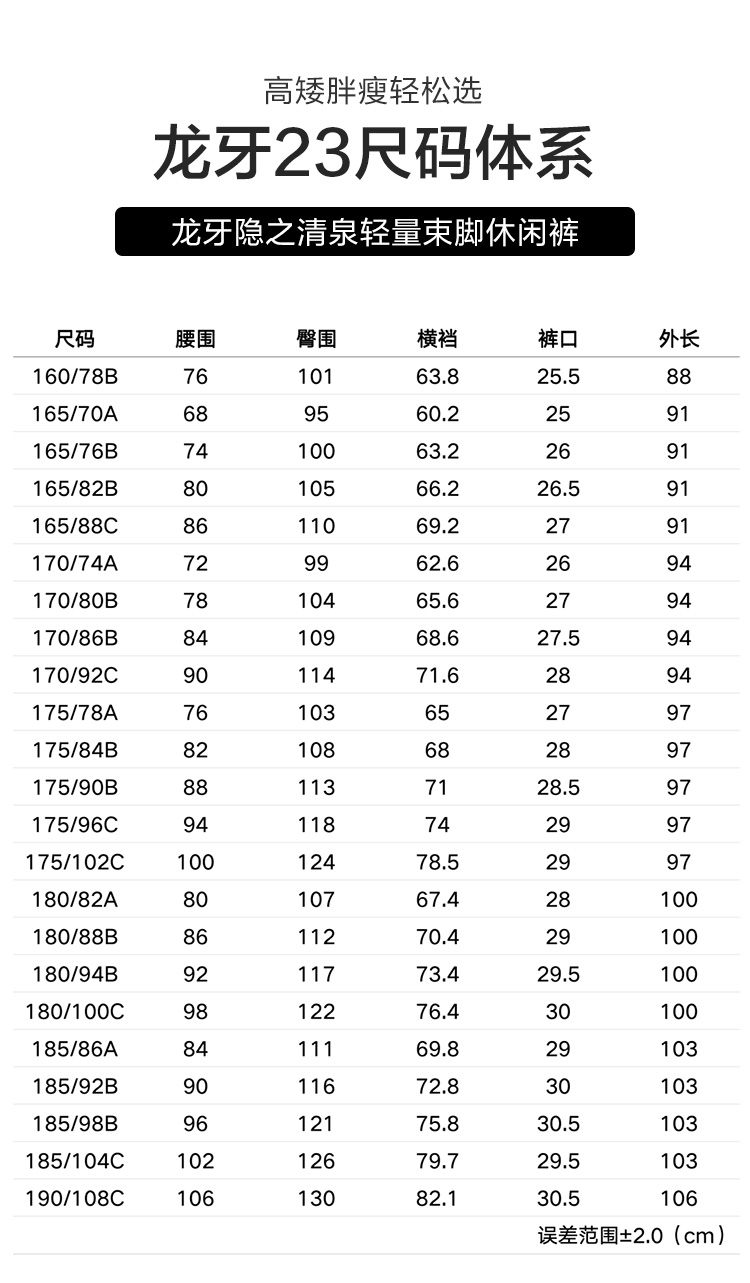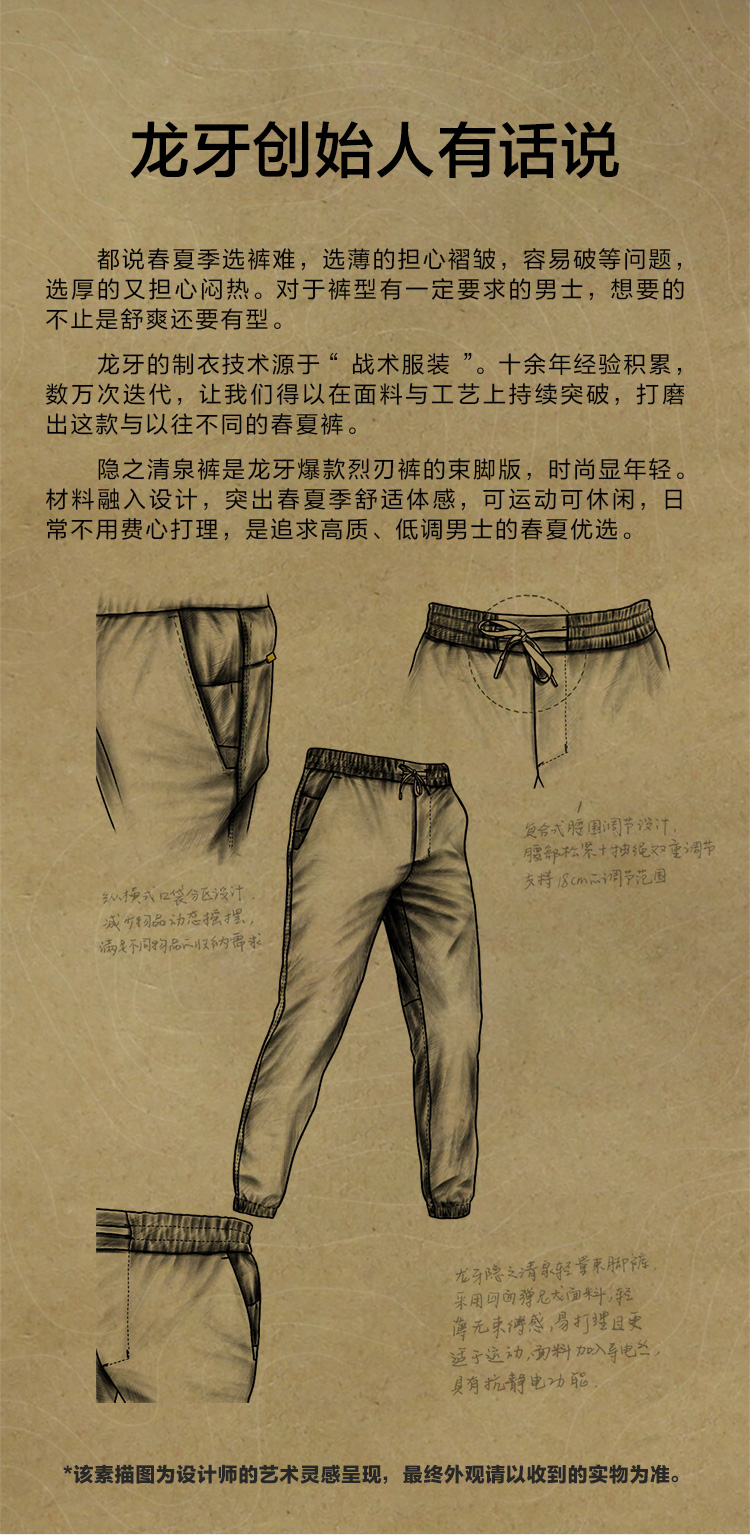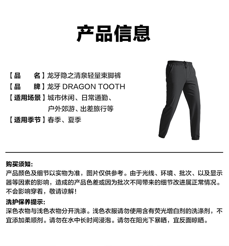 龙牙隐之清泉轻量束脚裤