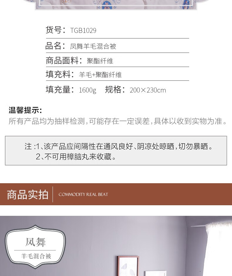 恒源祥礼业TGB1029凤舞羊毛混合被 凤舞羊毛混合被 200*230