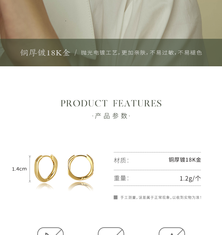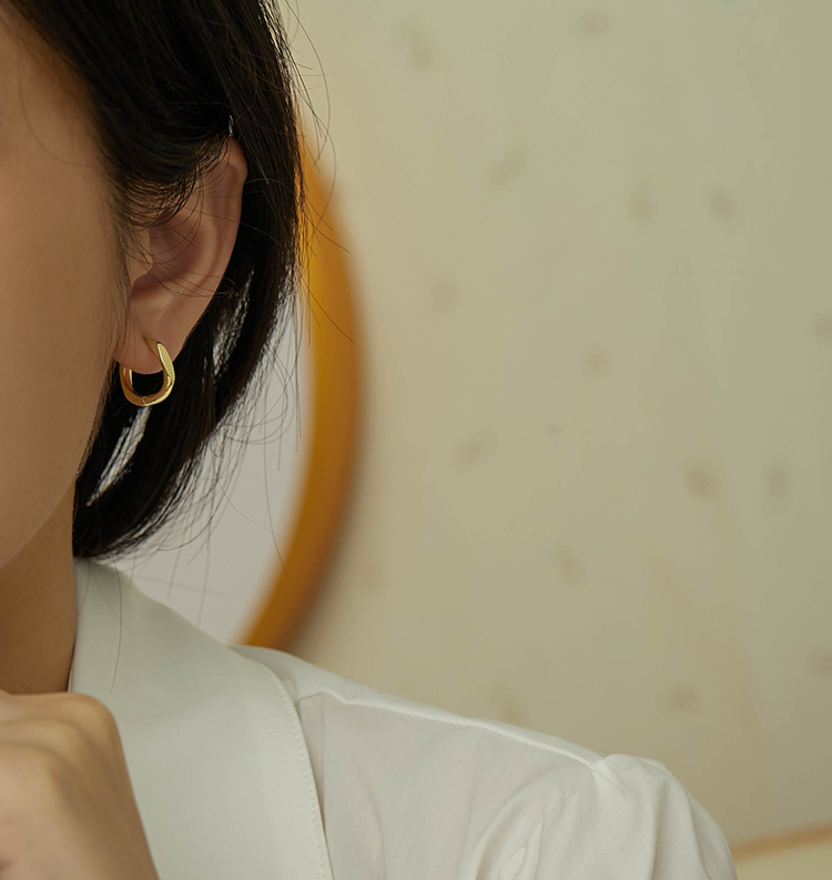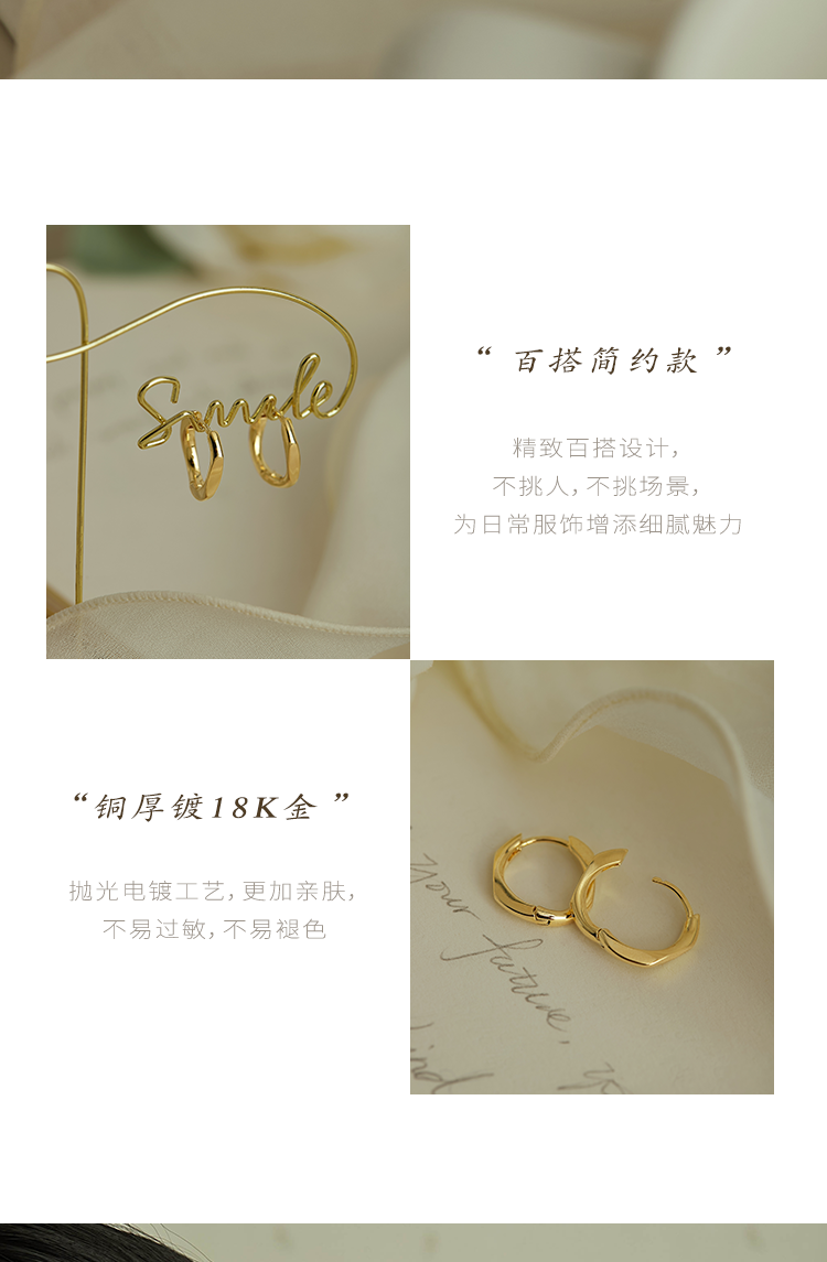 Oflye潮流饰品 金色个性耳环女复古港式耳圈时尚耳扣耳钉饰品