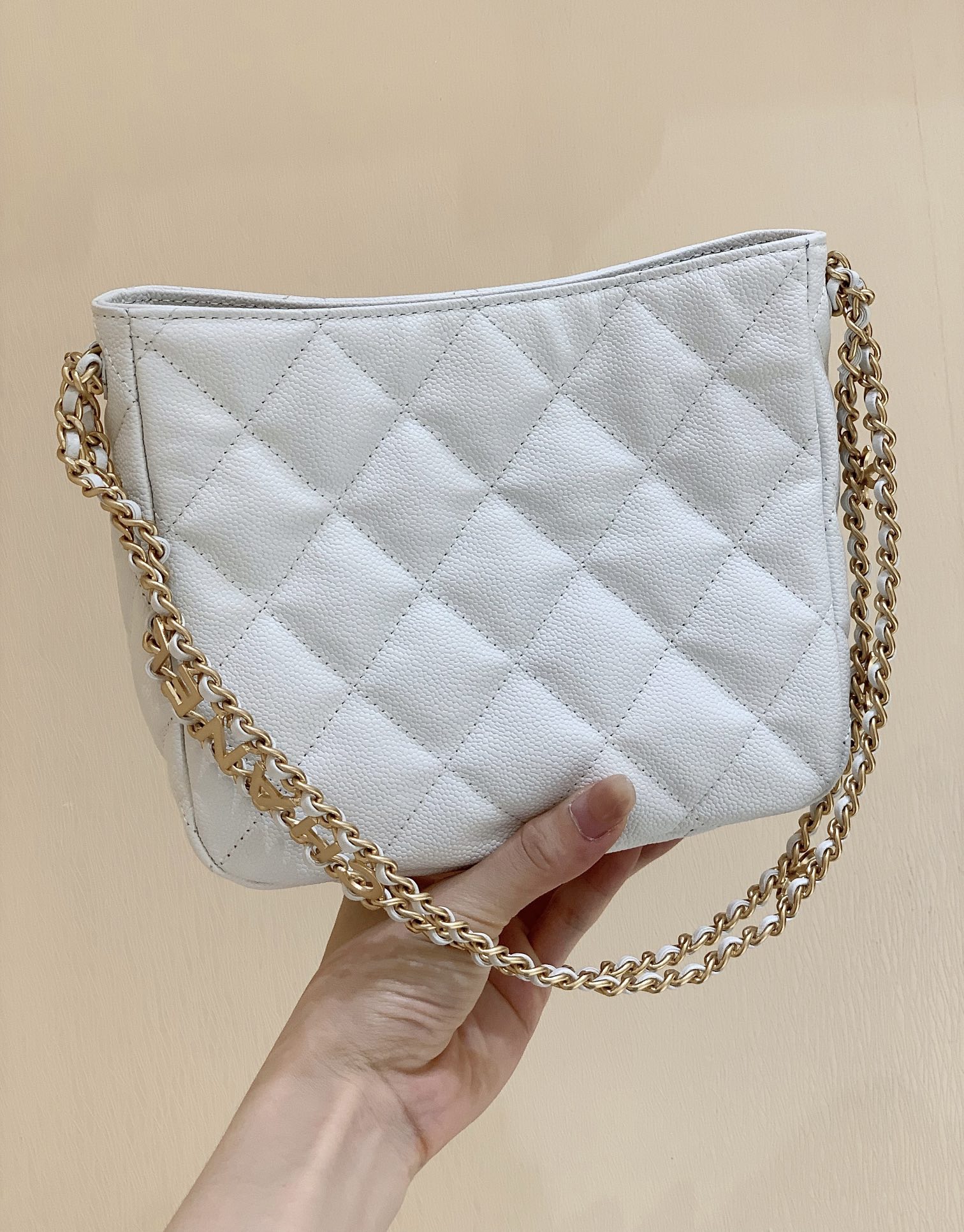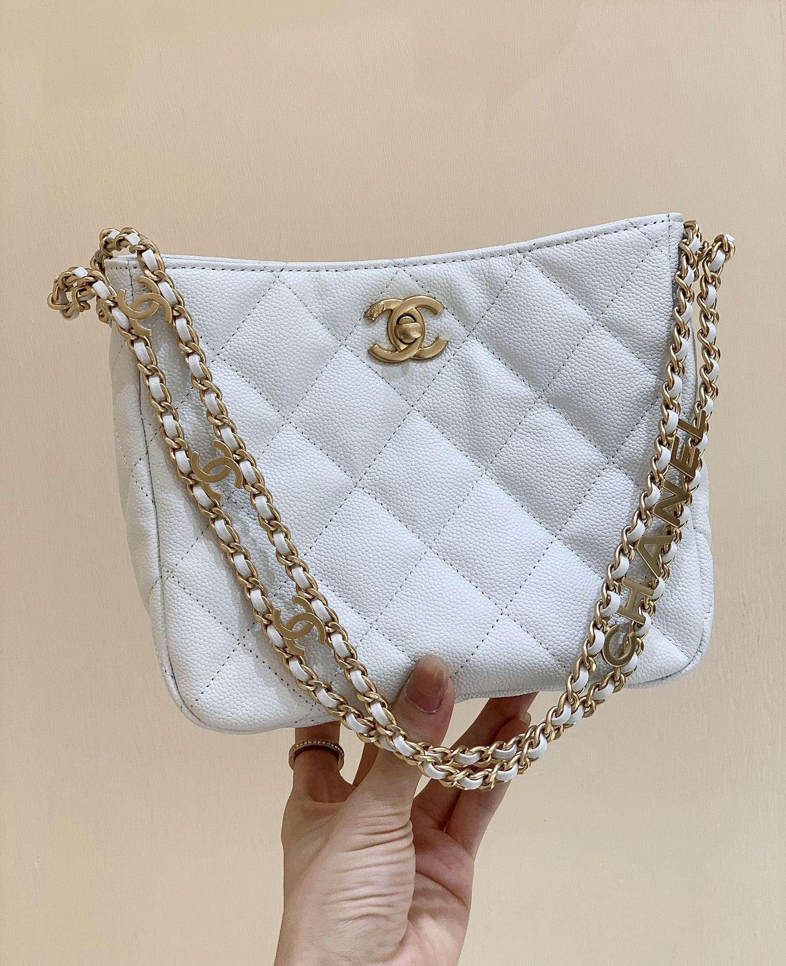 2022cc 春夏系列[愉快]hobo腋下包 正品 31700元购入[微笑][愉快] hobo包这几年都是比较火的袋形,归根也是比较实用和方便!这只又是嬉皮包袋形设计,无疑增加了它的亮点[强][愉快]实物无敌美,又是荔枝皮设计,买就对了[色][色] 编号AS3223, 尺寸19x16x8cm
