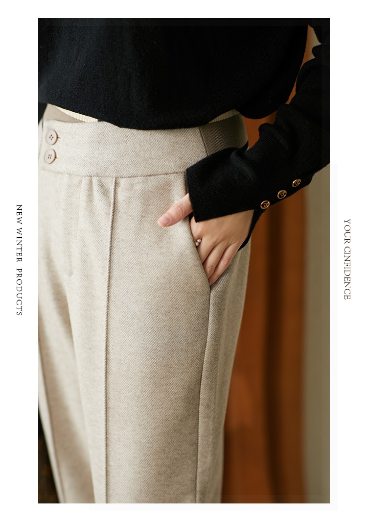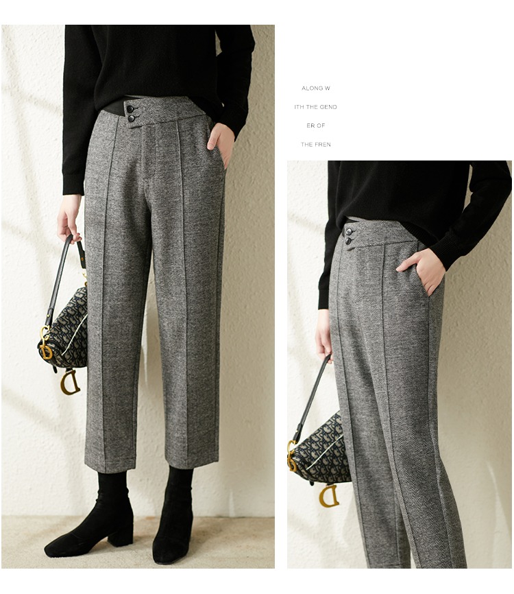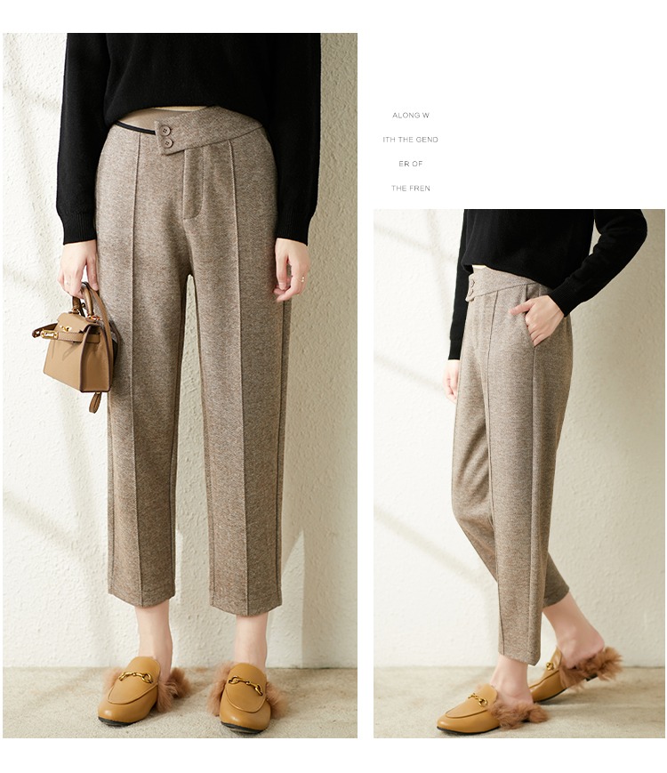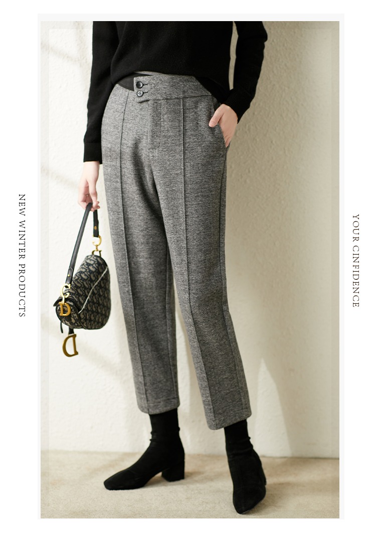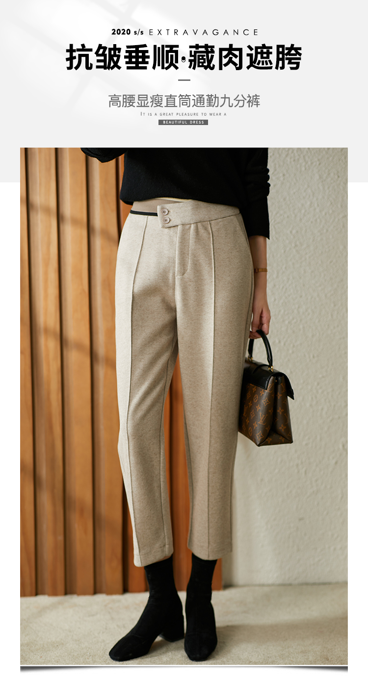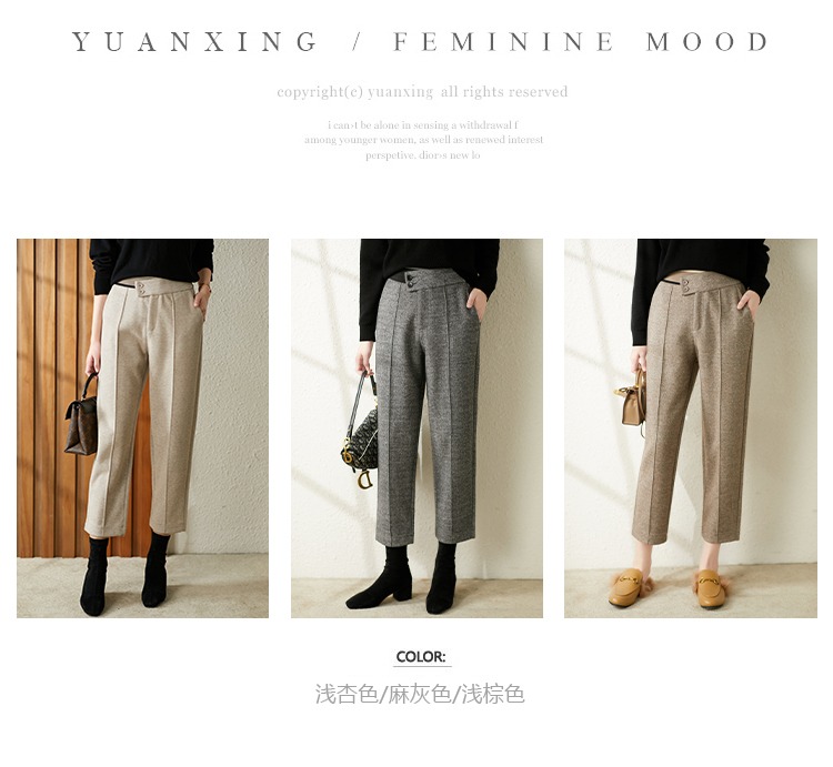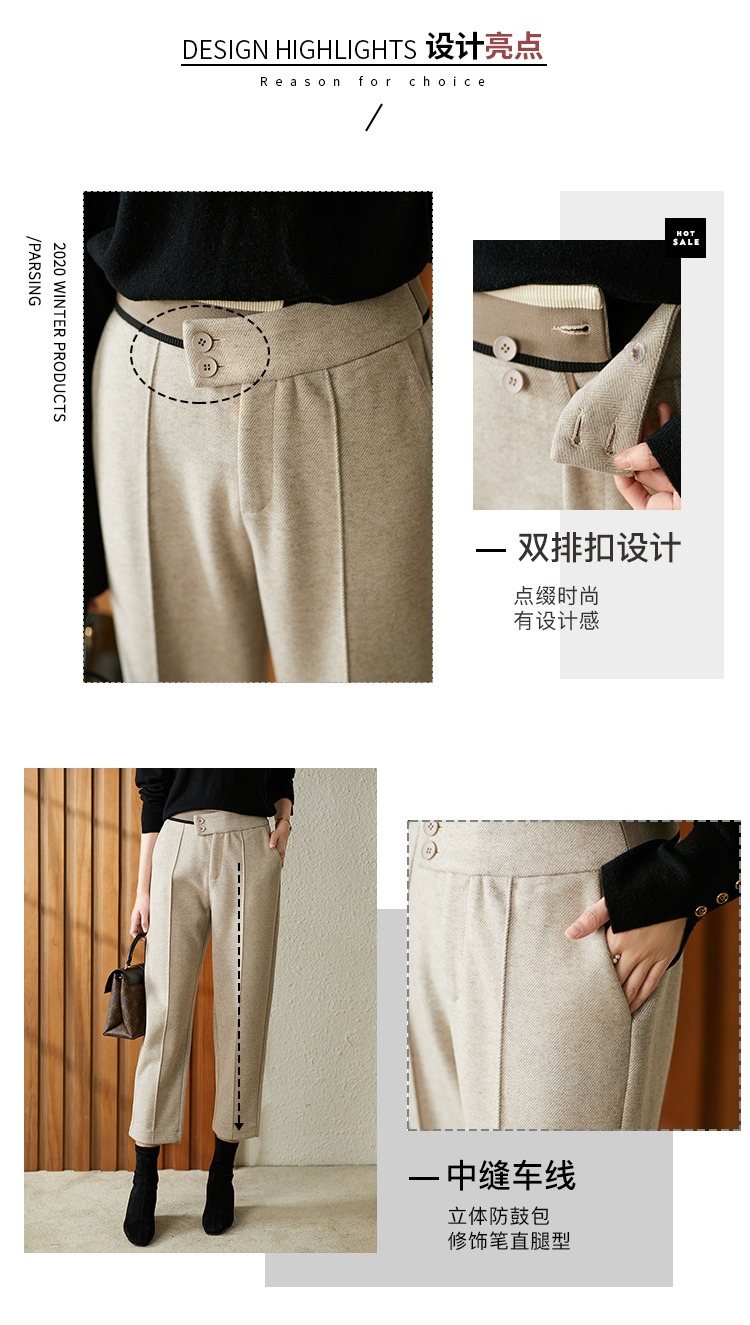 【现货7天】羊毛休闲裤哈伦裤女2023秋季新款韩版宽松显瘦九分裤直筒裤子