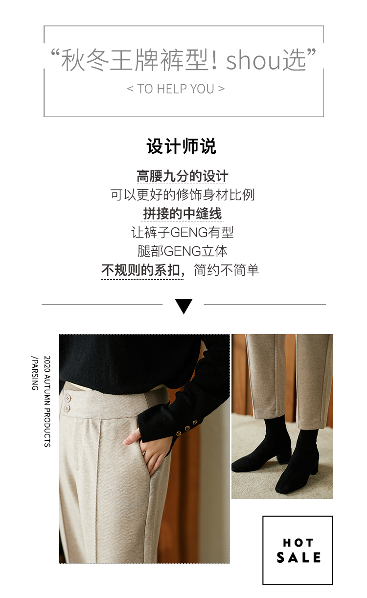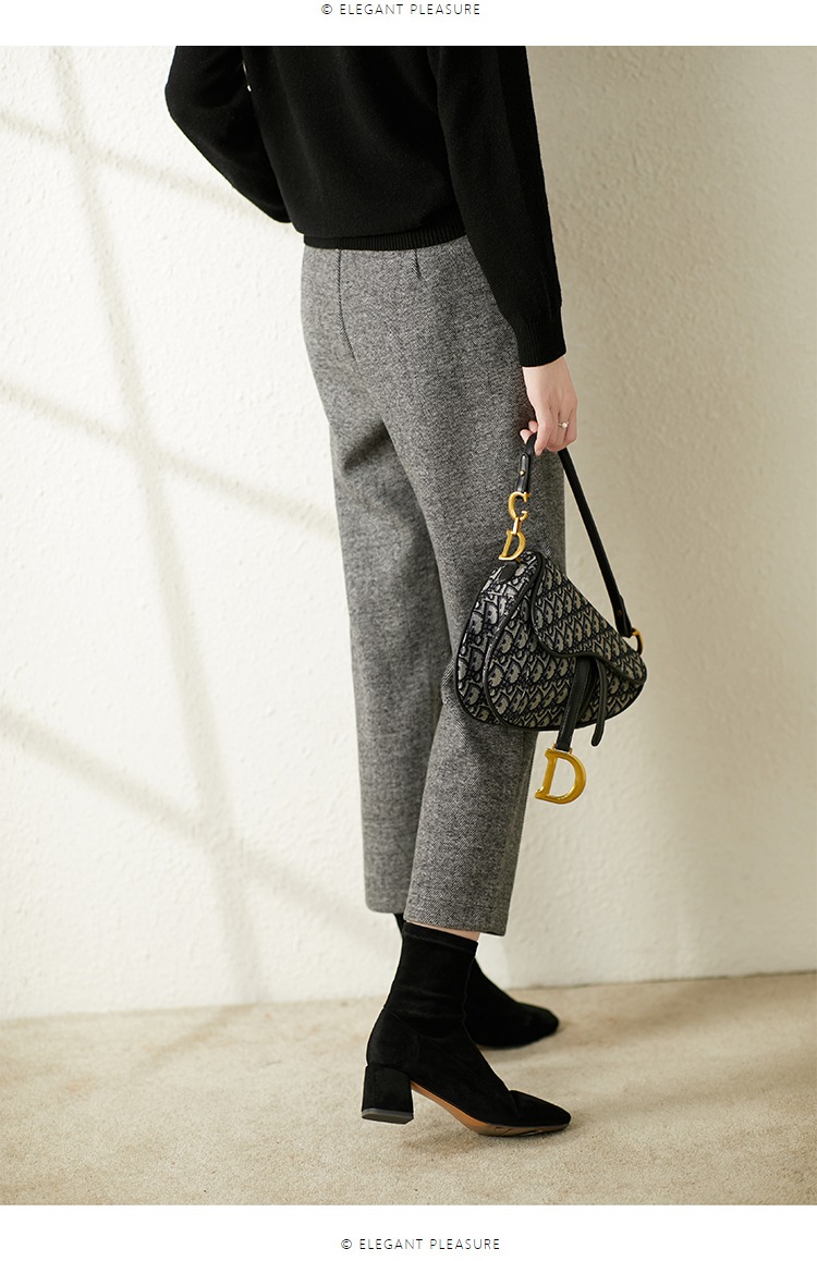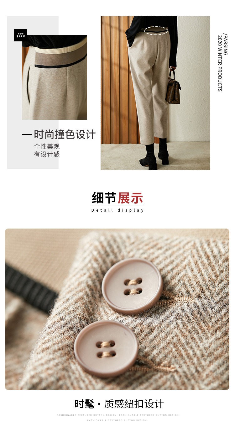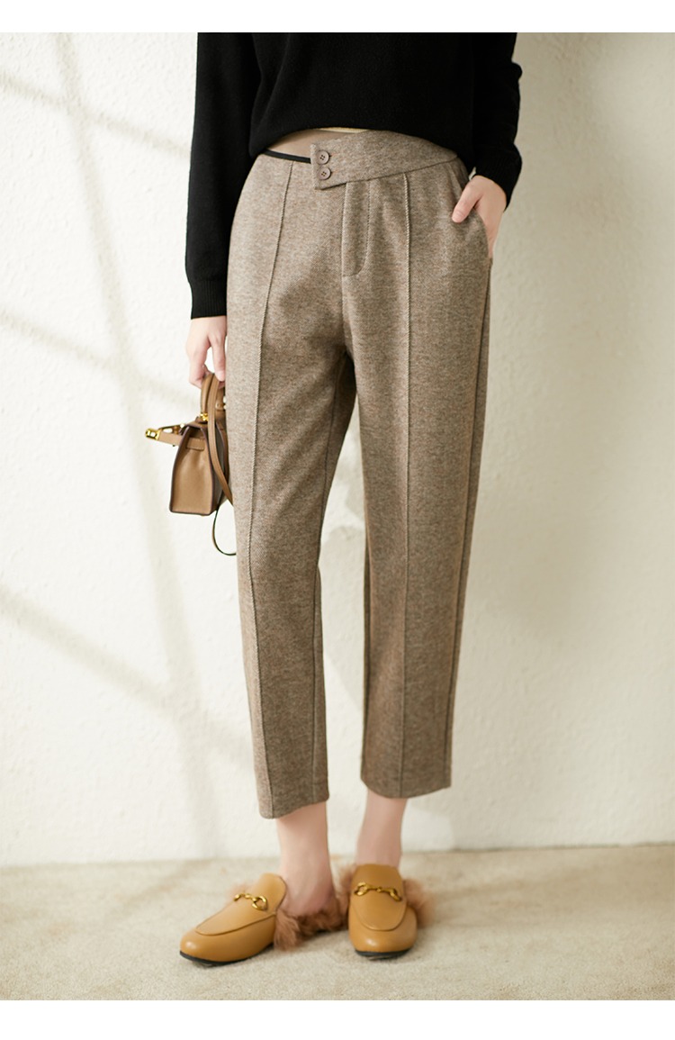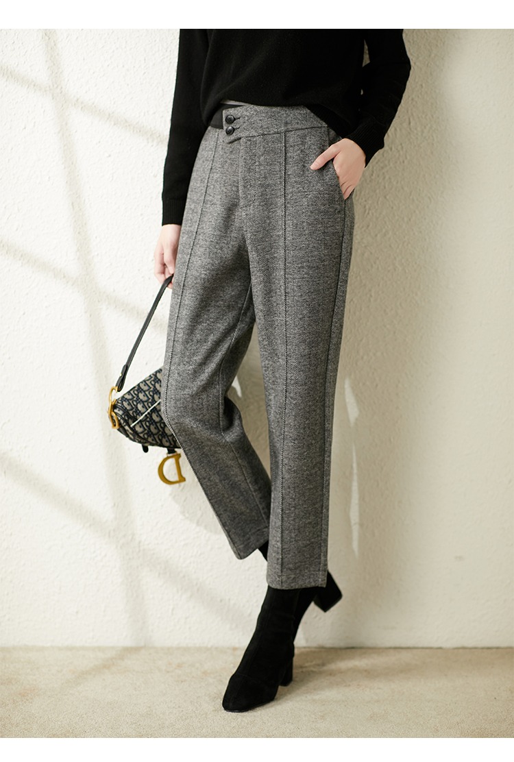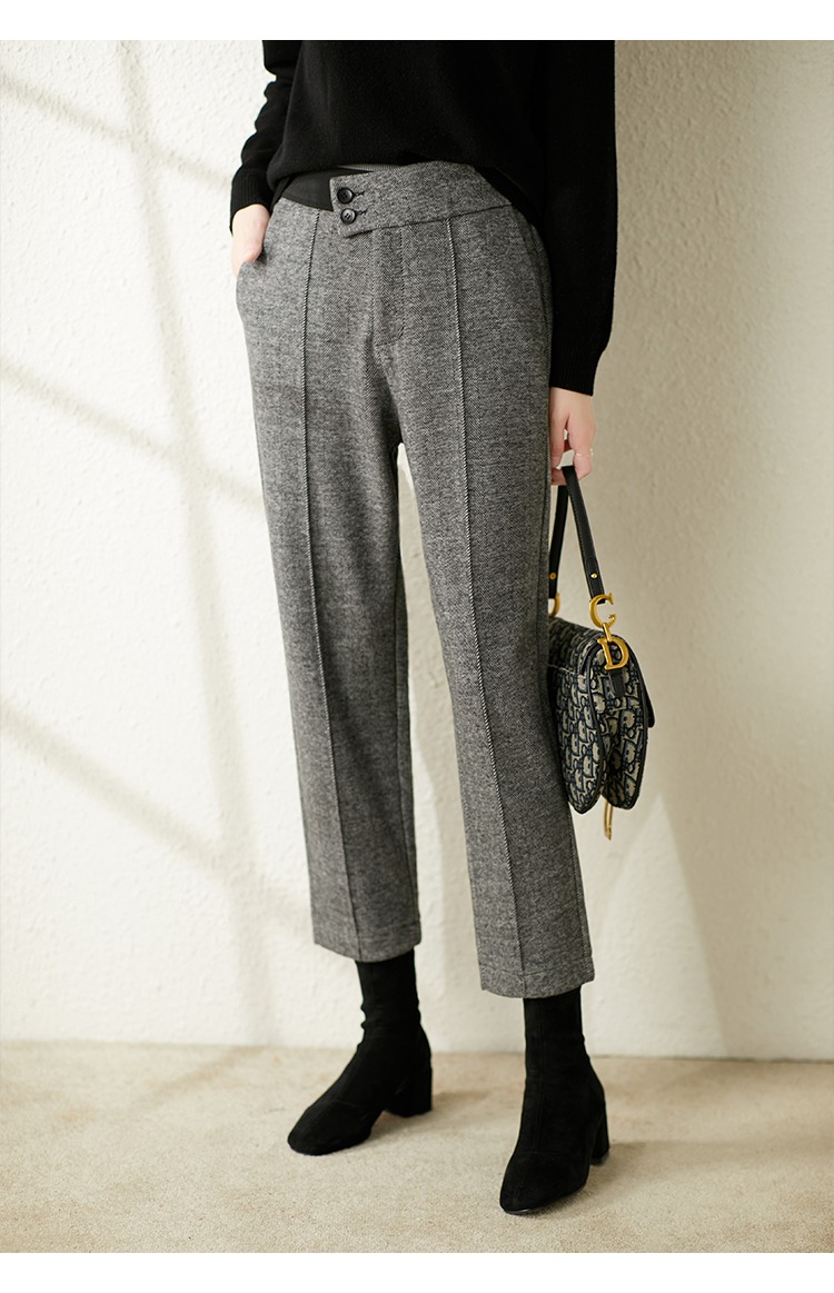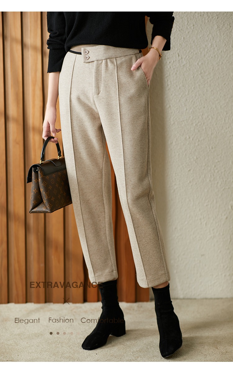 【现货7天】羊毛休闲裤哈伦裤女2023秋季新款韩版宽松显瘦九分裤直筒裤子