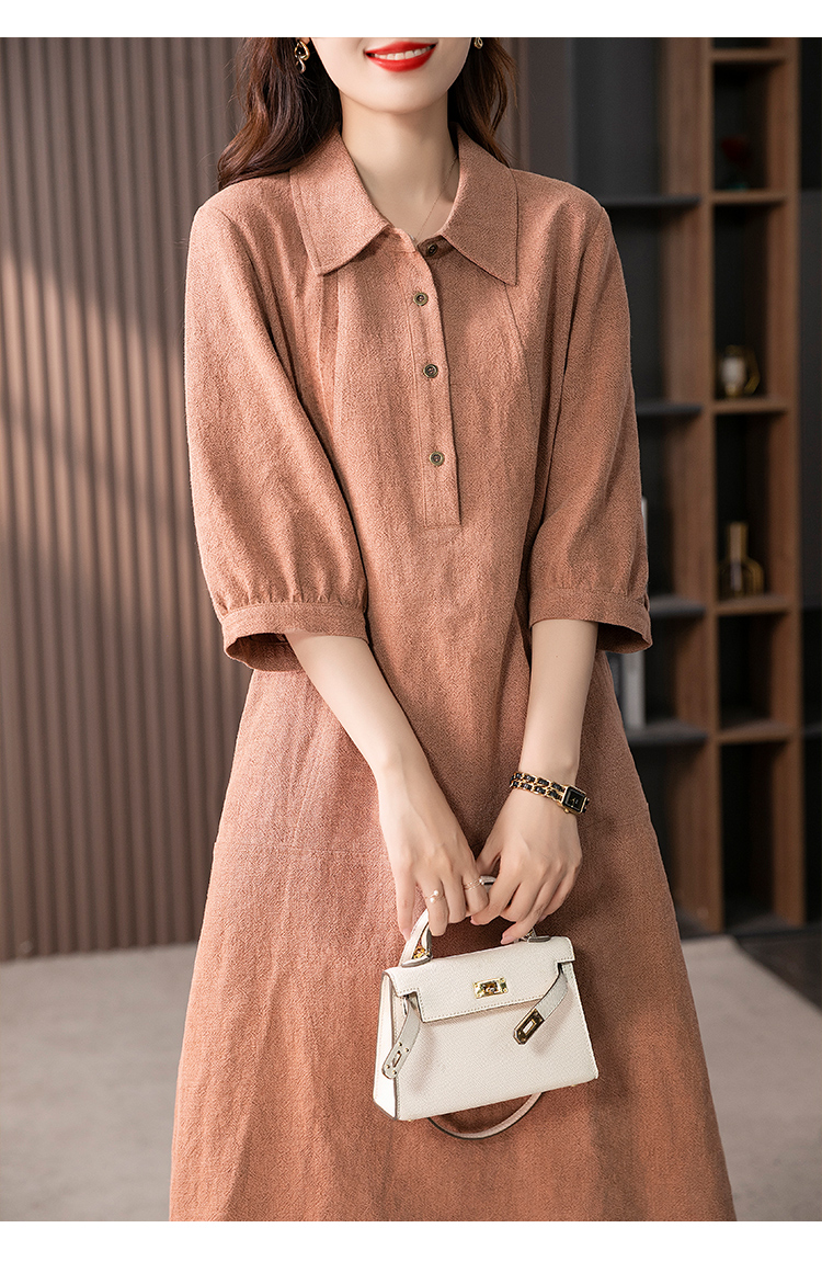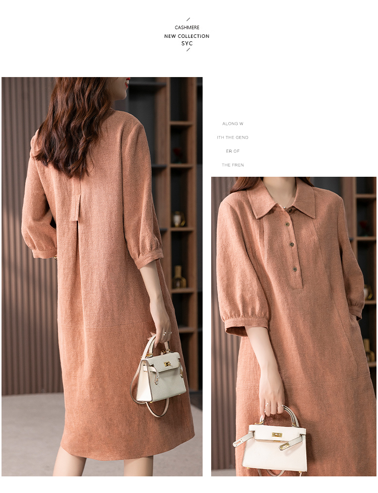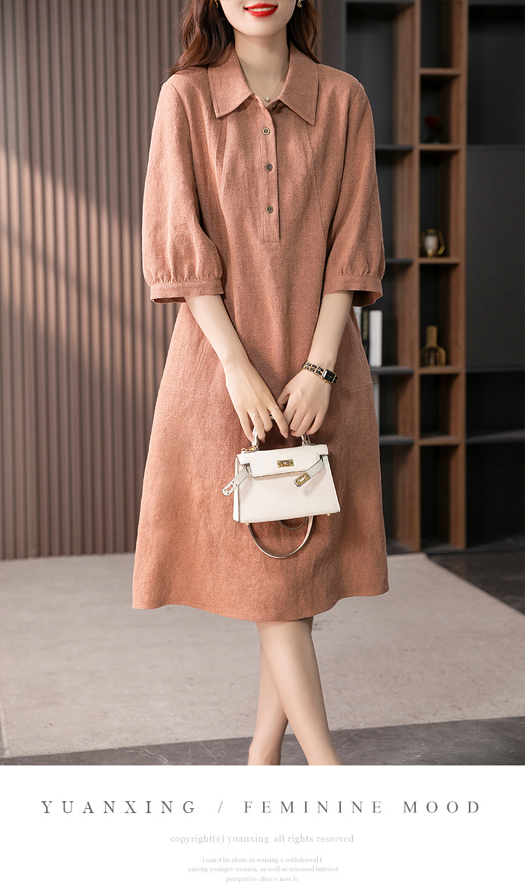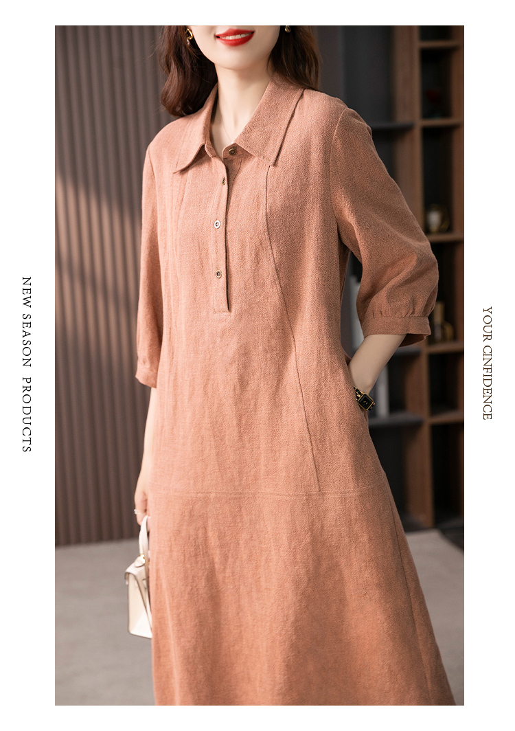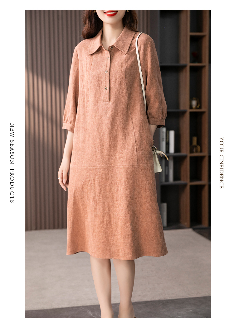 89250原形中长款衬衫连衣裙女2024春夏季新款气质减龄灯笼袖宽松长裙子