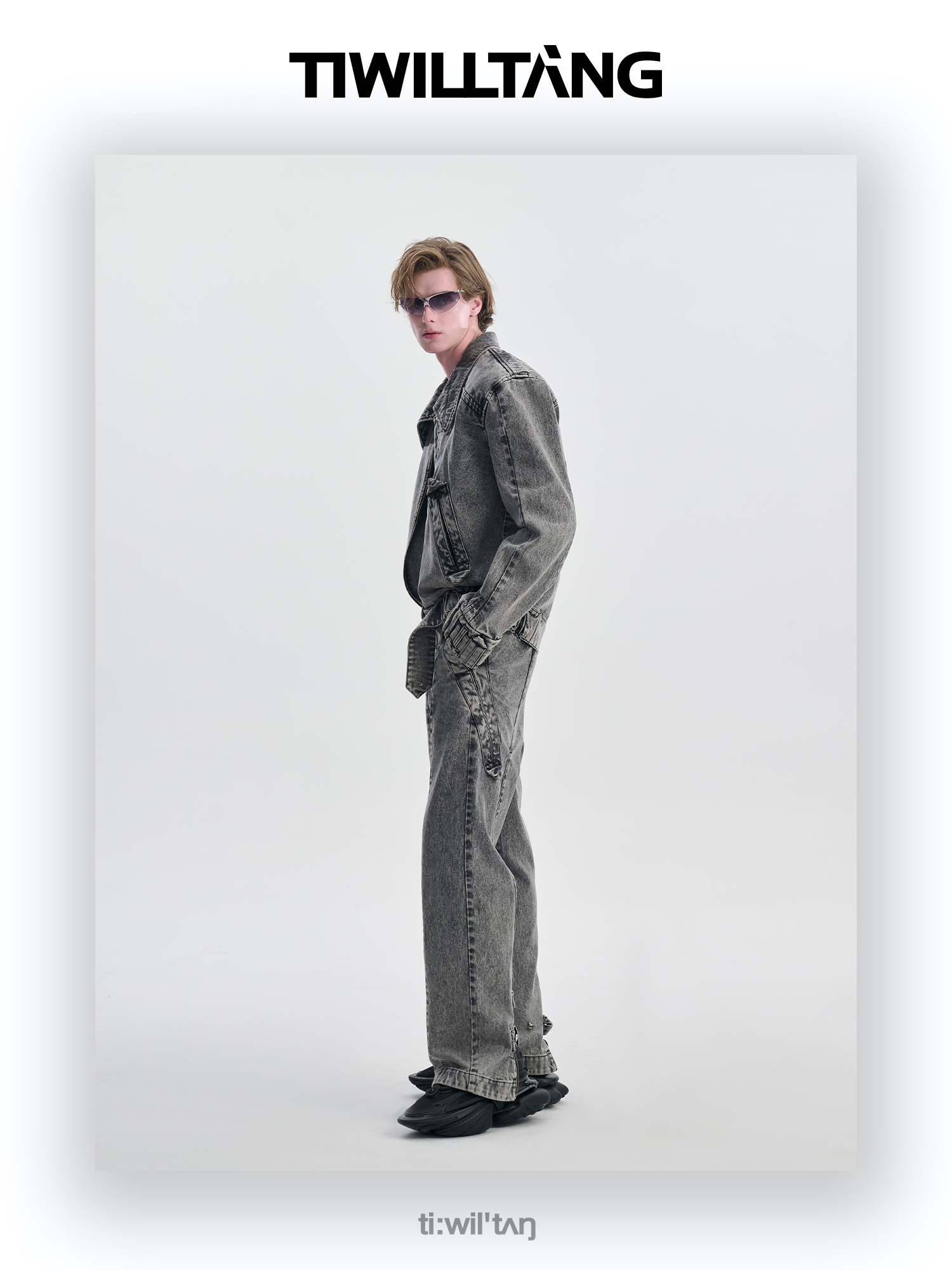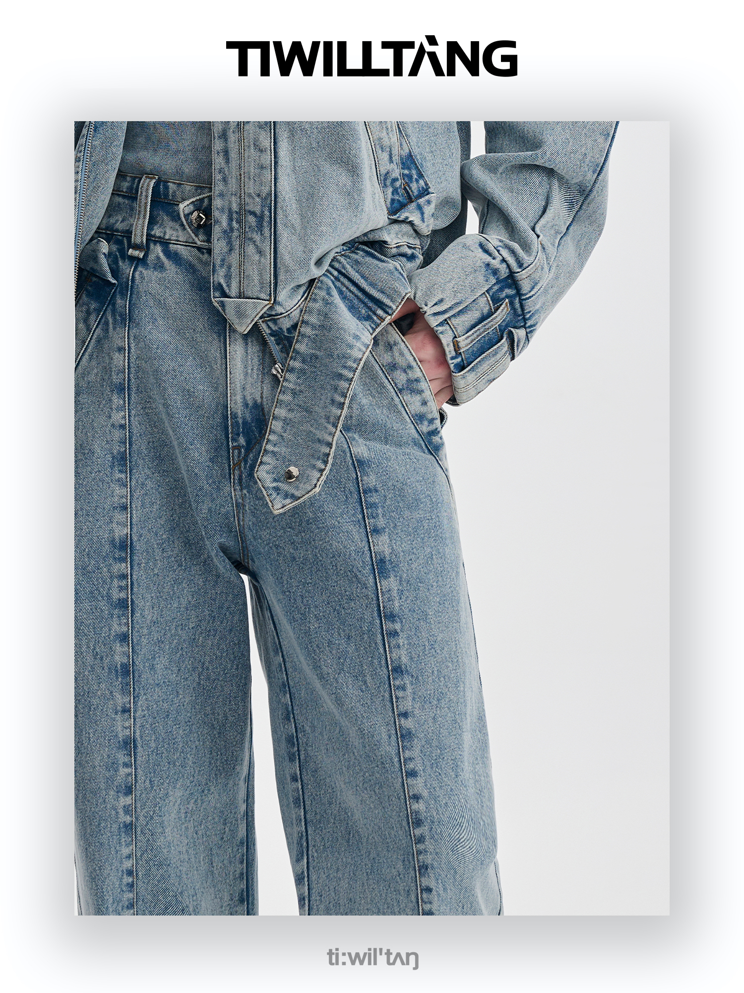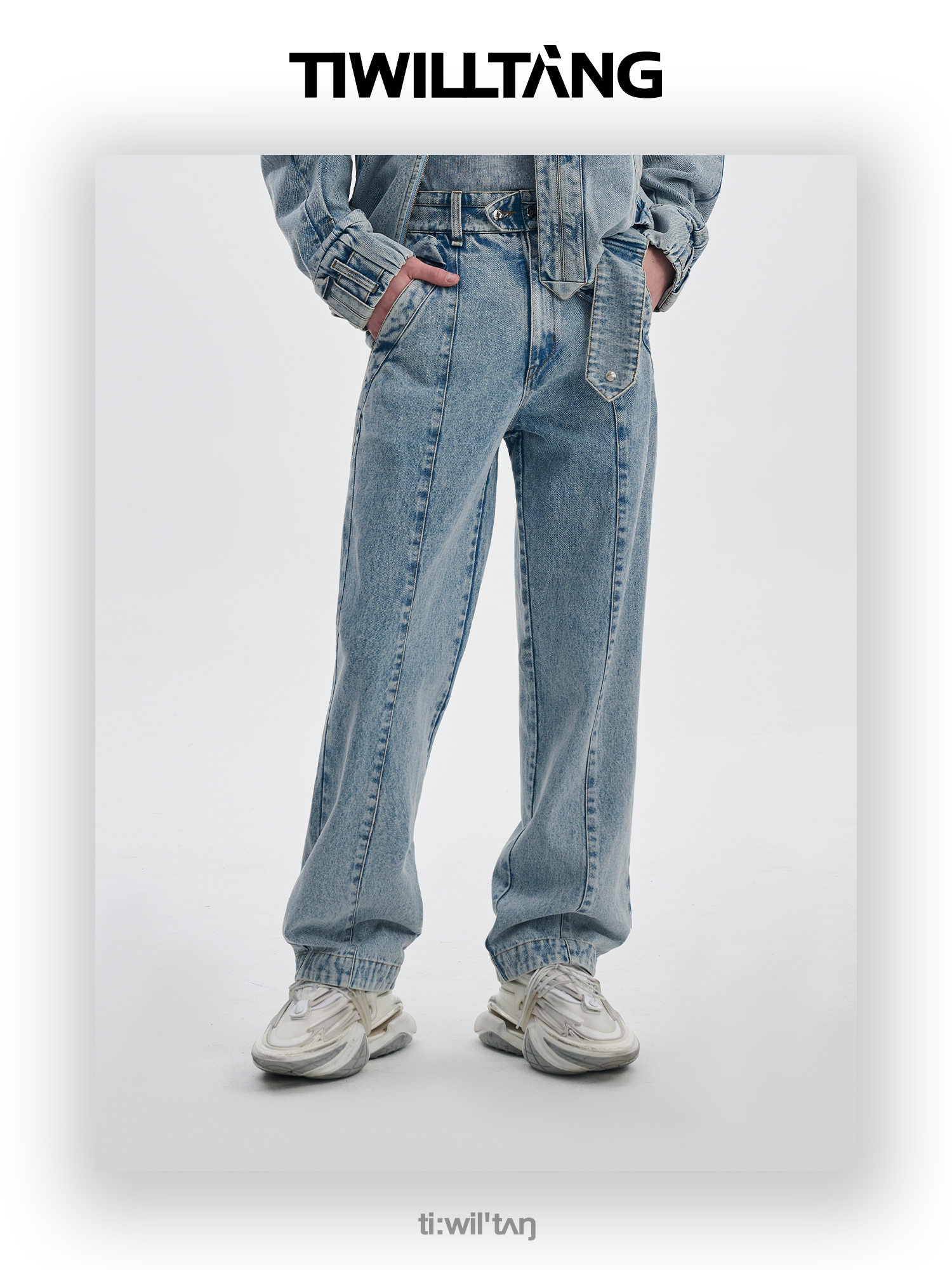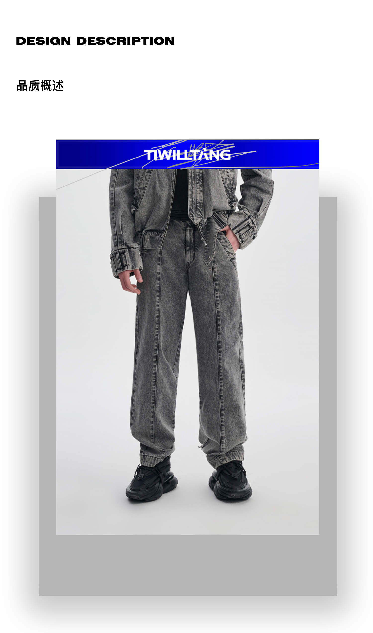 TIWILLTANG启世录“钦衹域裥”折边牛仔长裤