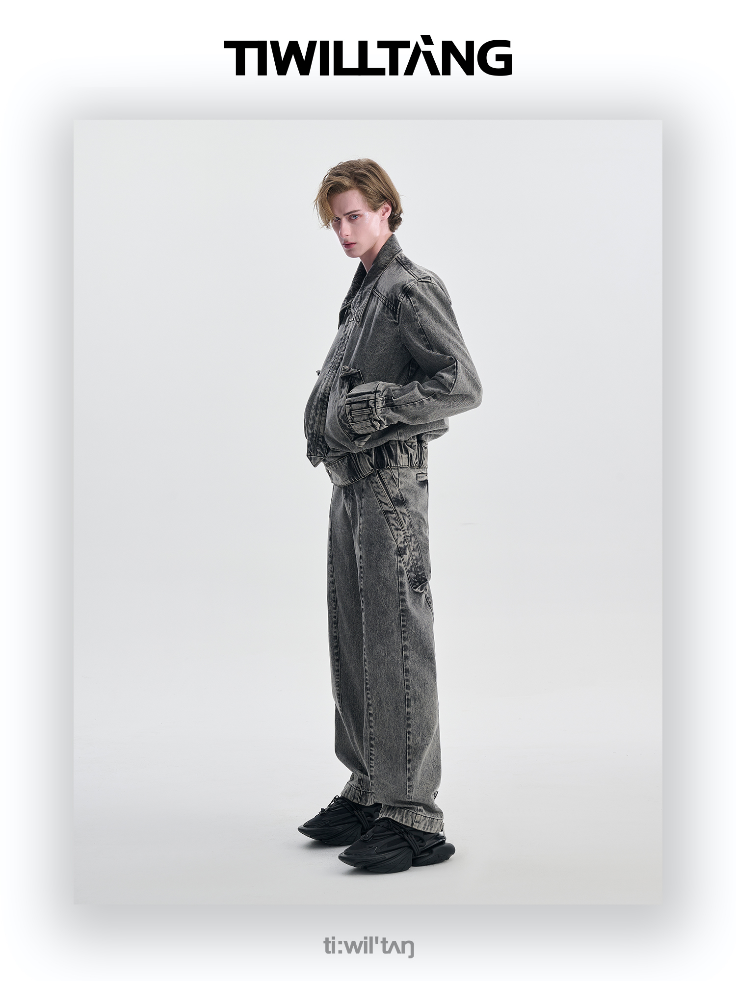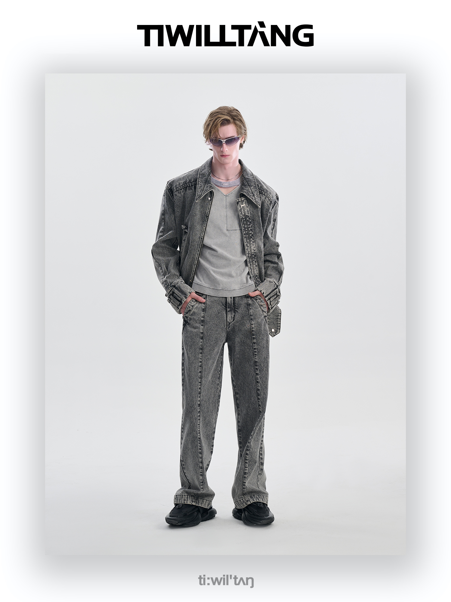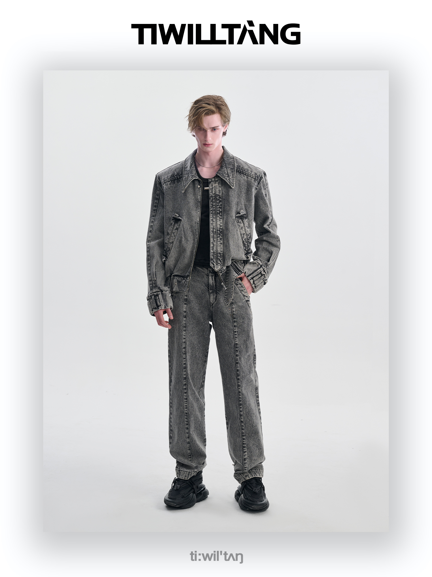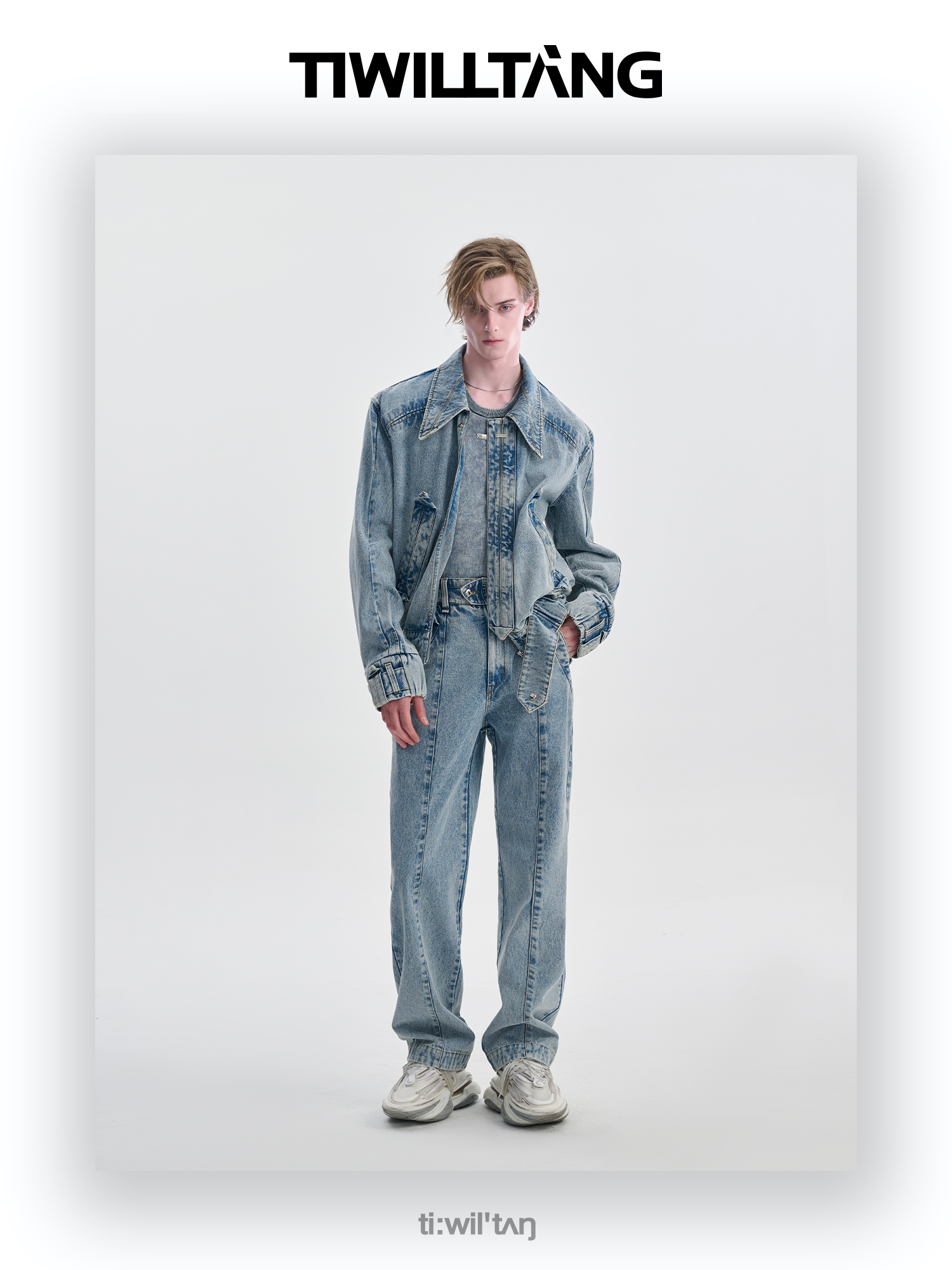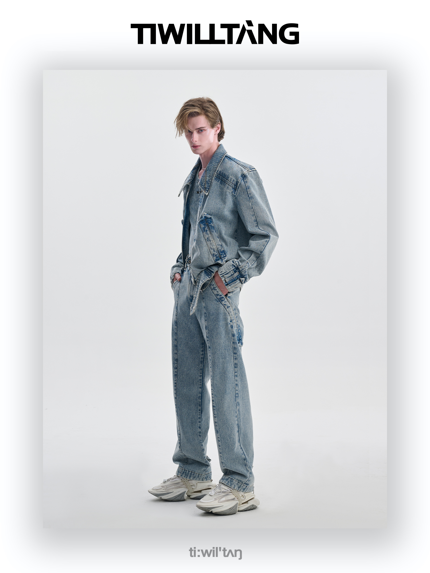 TIWILLTANG启世录“钦衹域裥”折边牛仔长裤