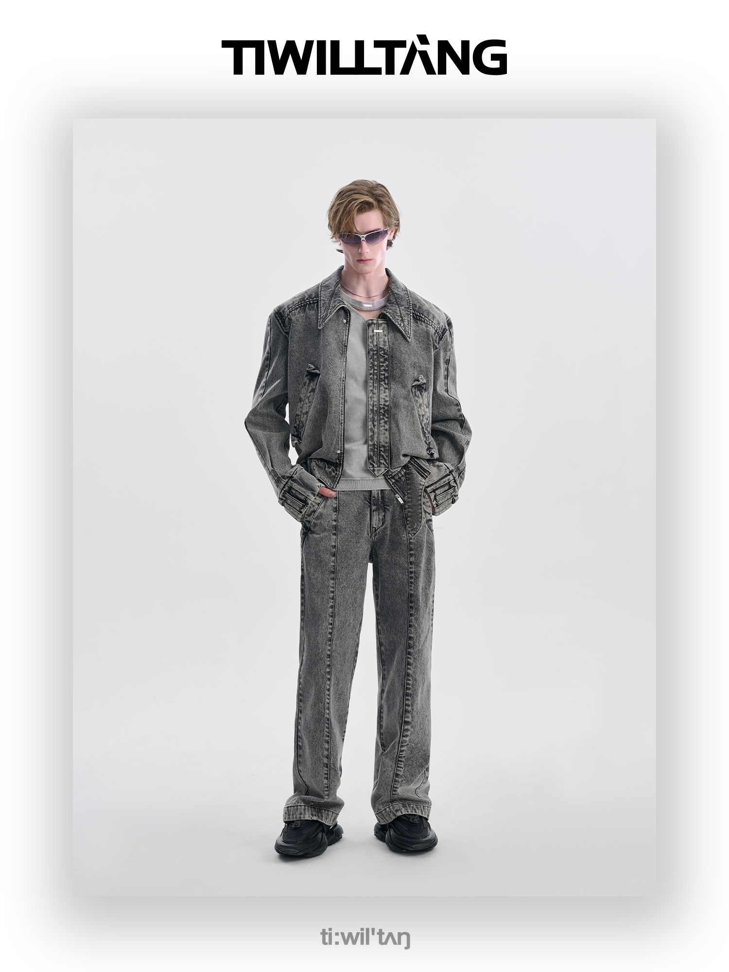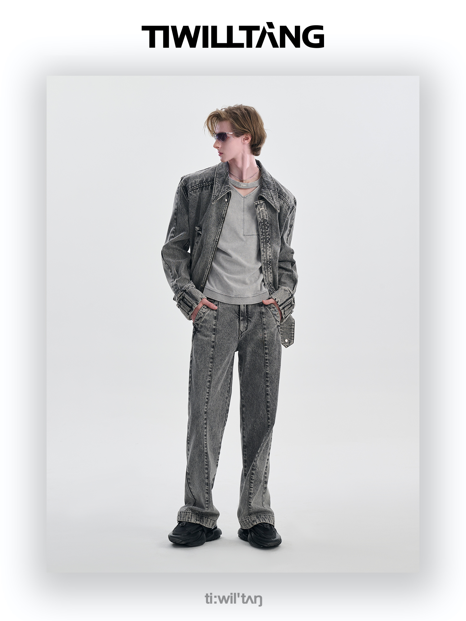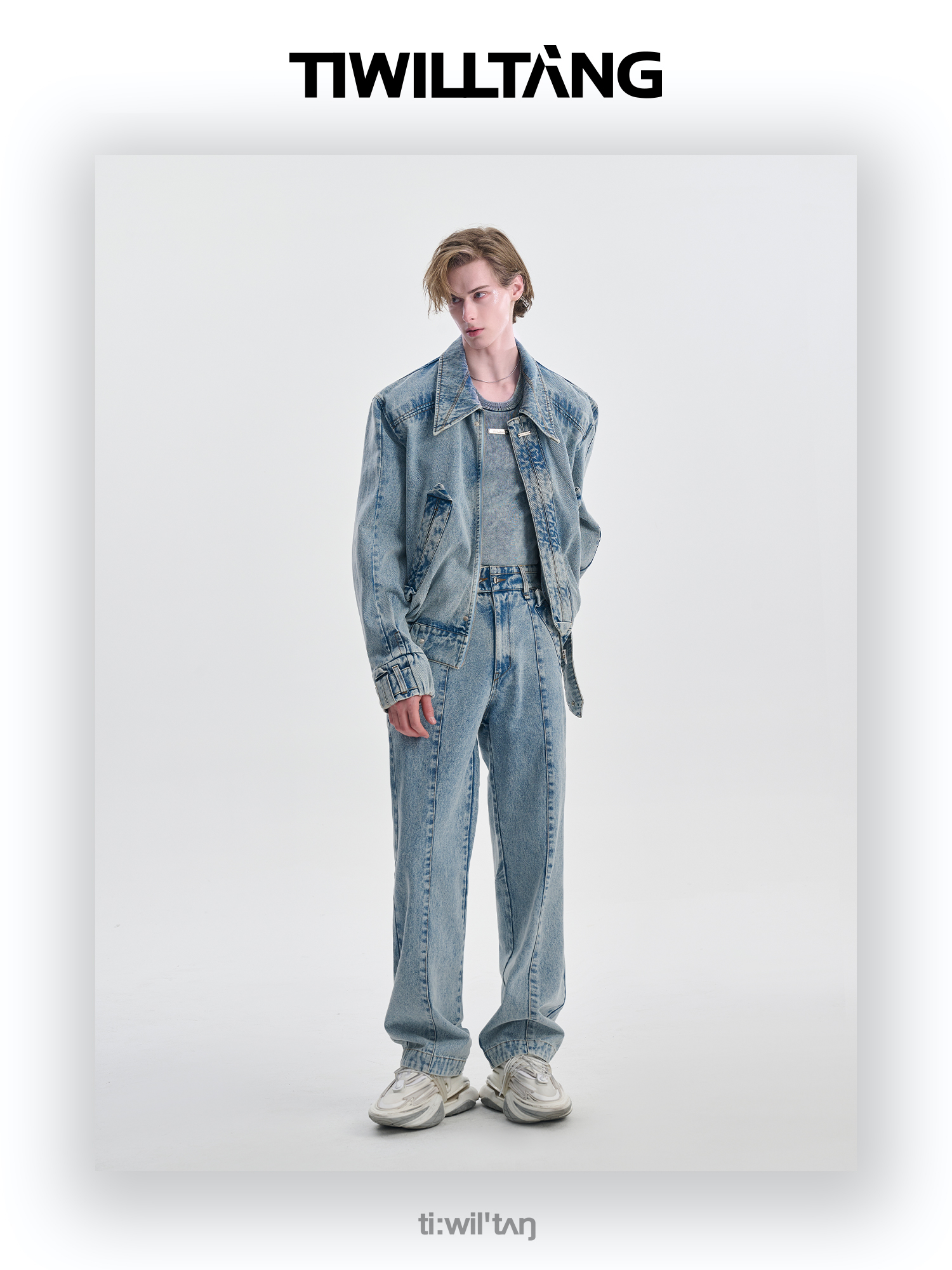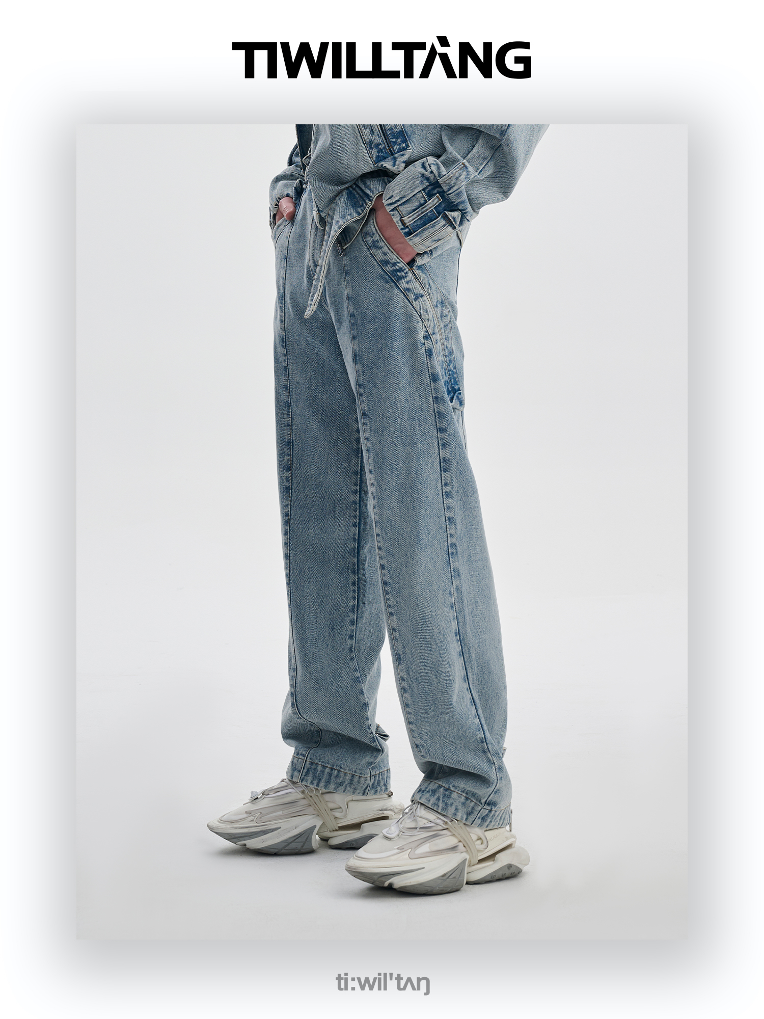 TIWILLTANG启世录“钦衹域裥”折边牛仔长裤