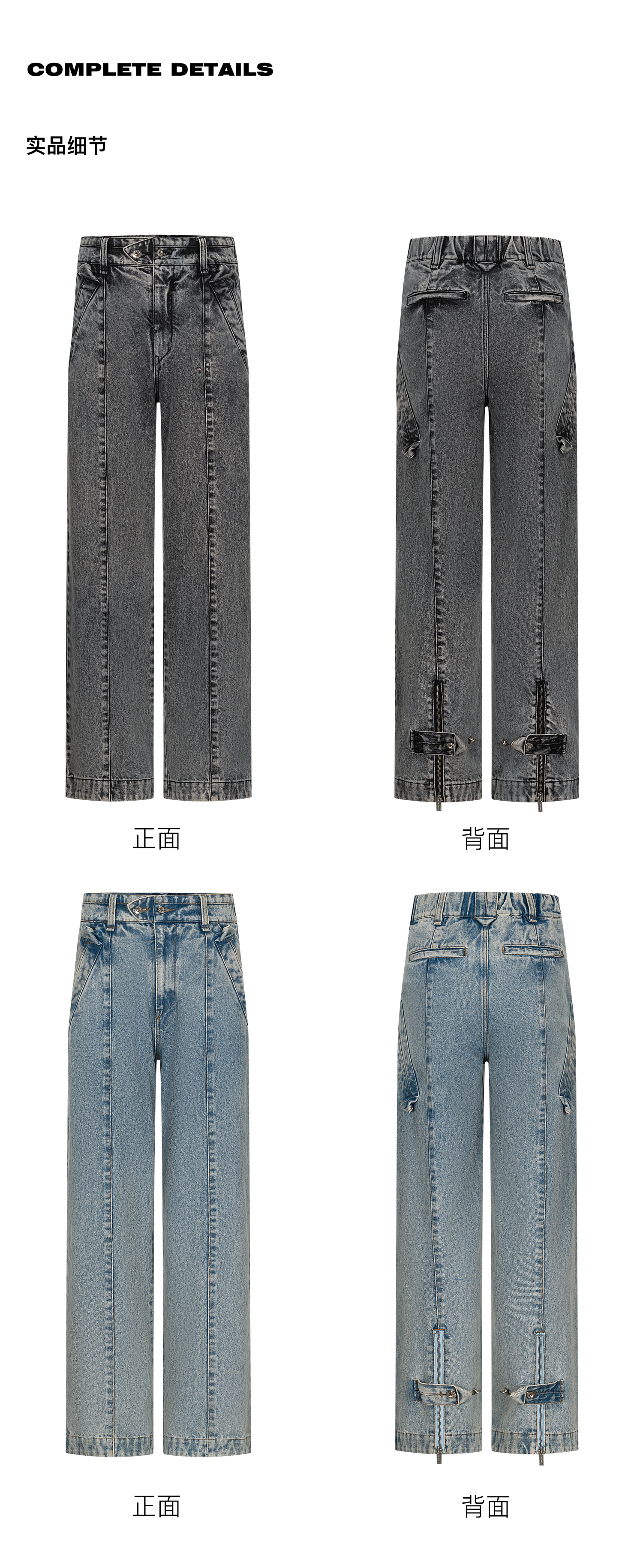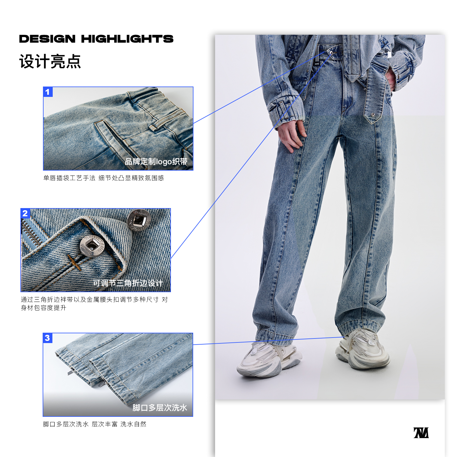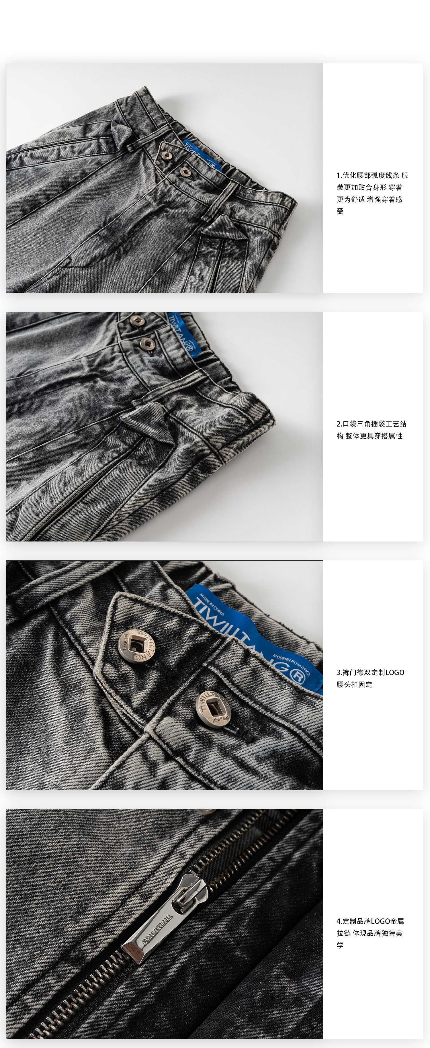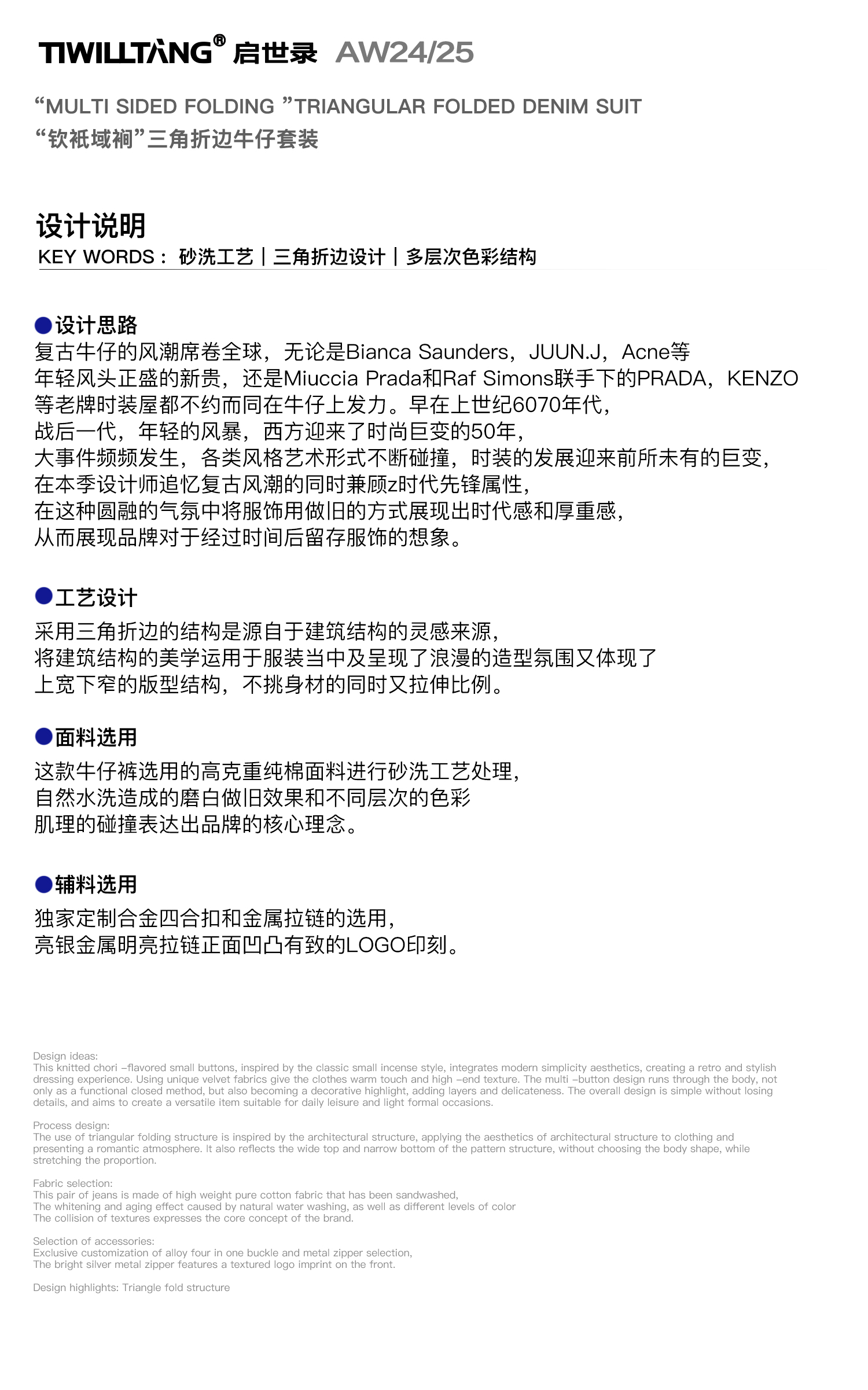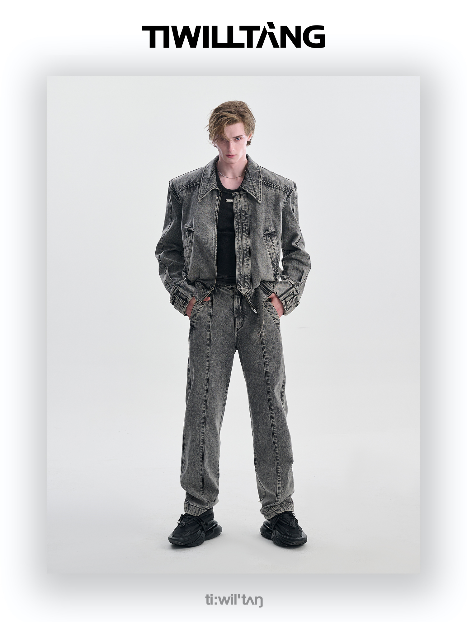 TIWILLTANG启世录“钦衹域裥”折边牛仔长裤
