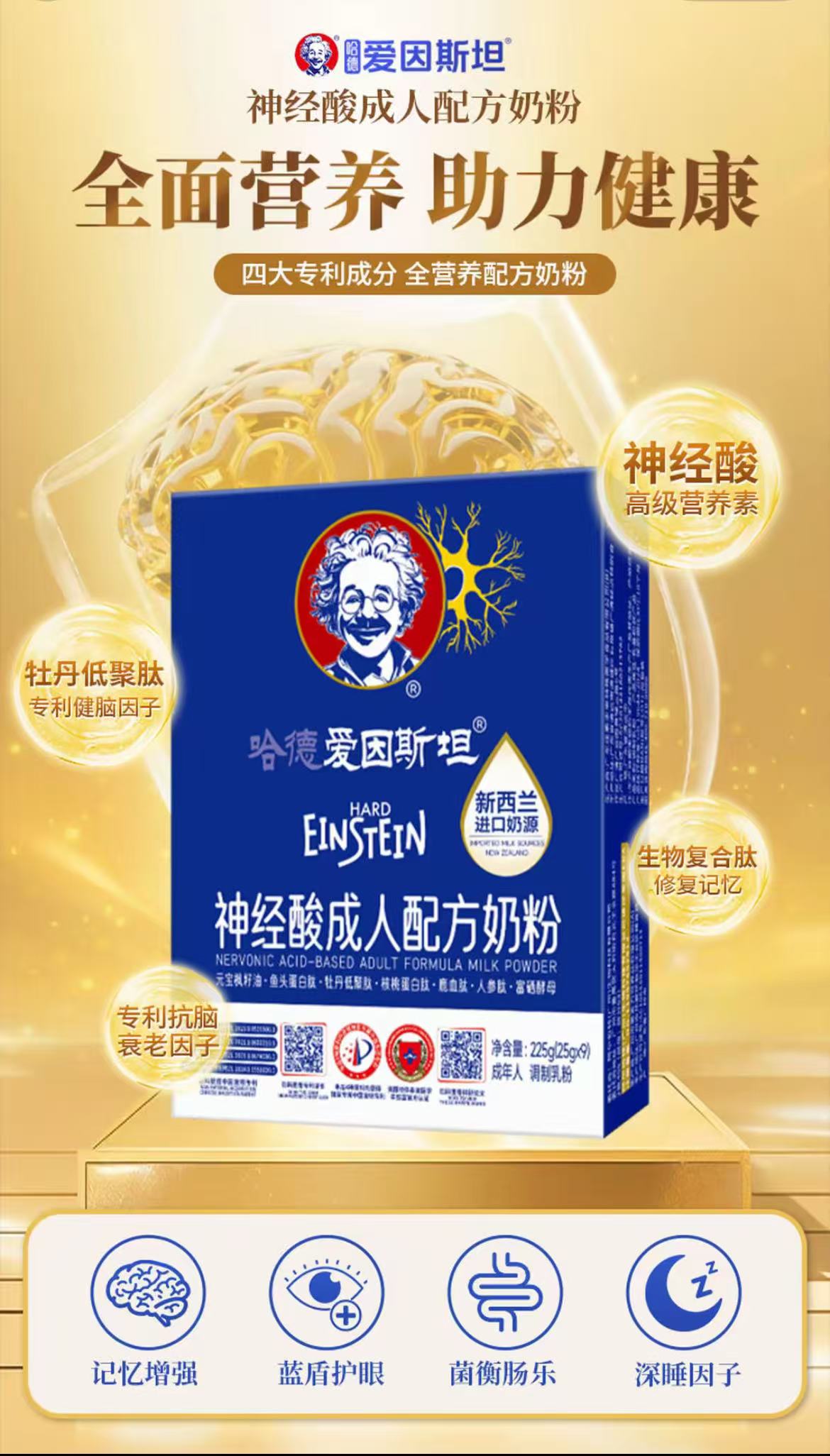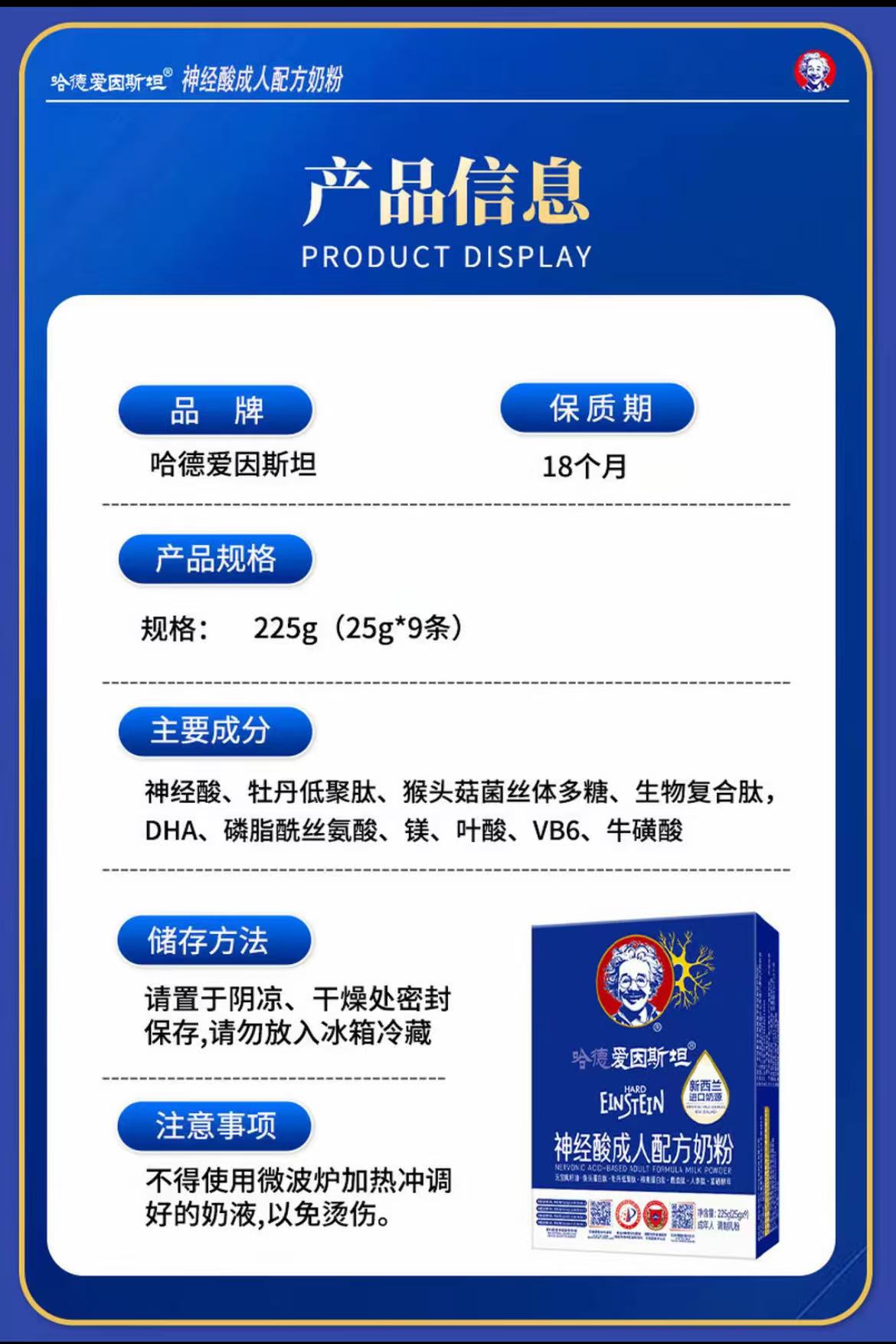 【哈德·爱因斯坦】神经酸高钙中老年人正品营养奶粉 1罐225g(25g*9条)
