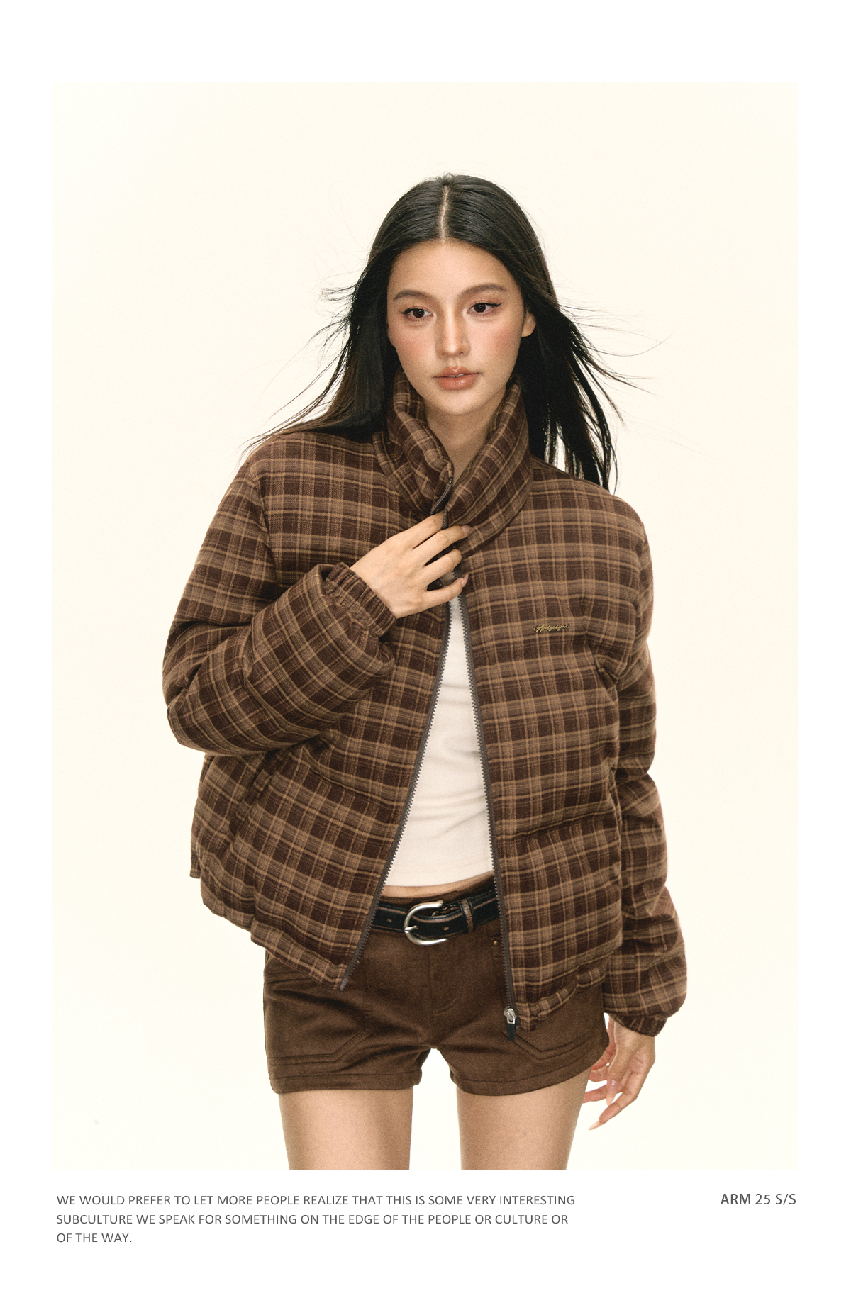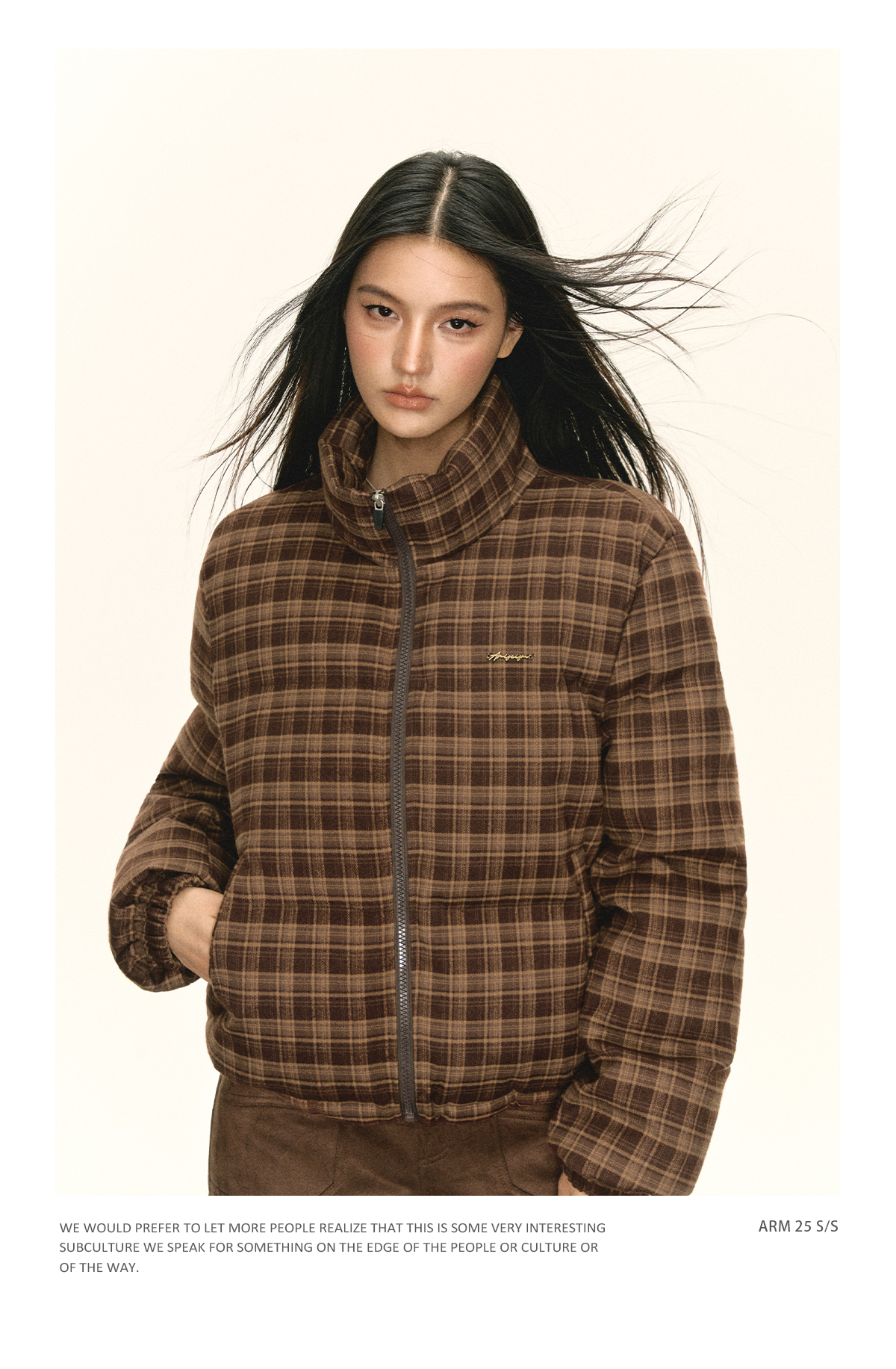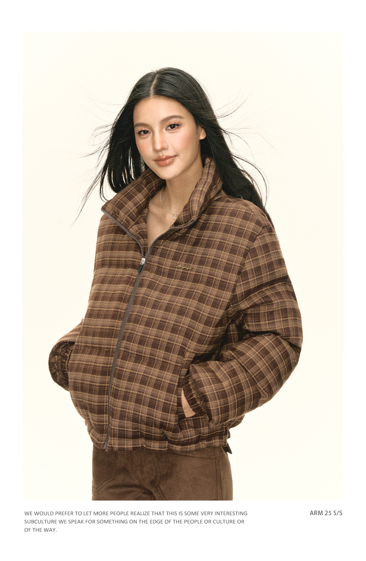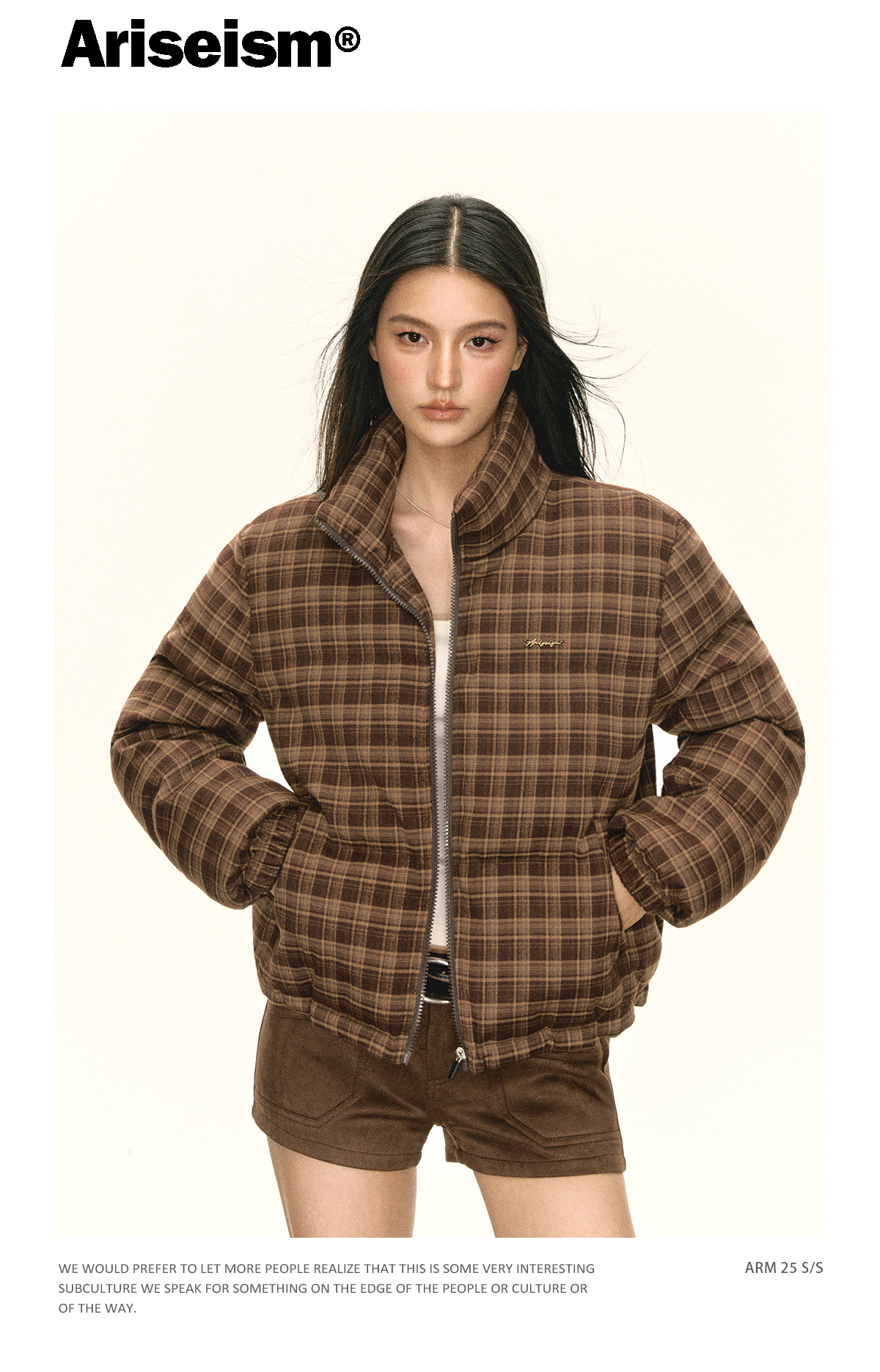 Ariseism 美式复古设计感格子棉服外套女秋冬新款上衣面包服