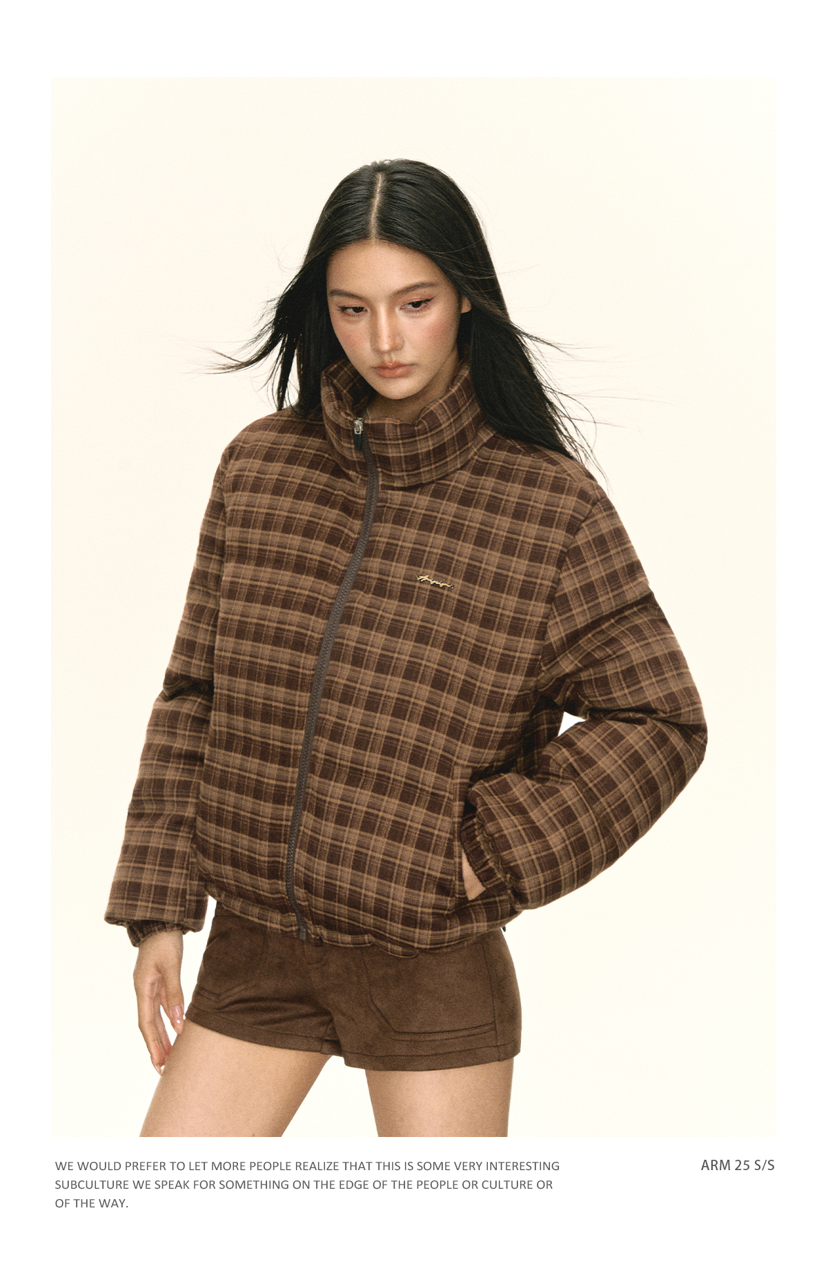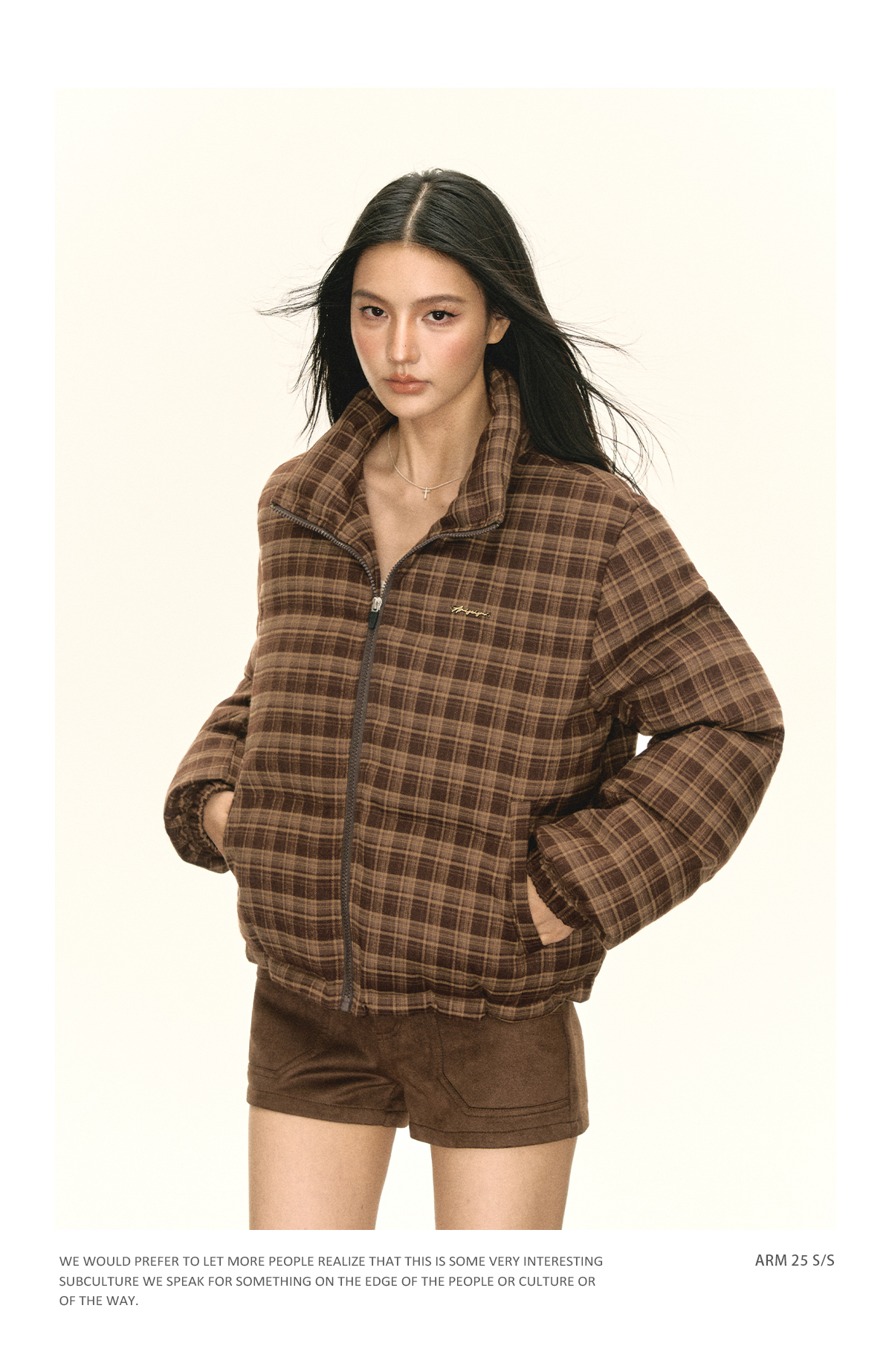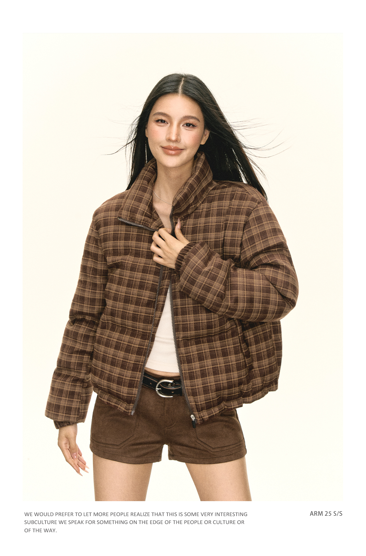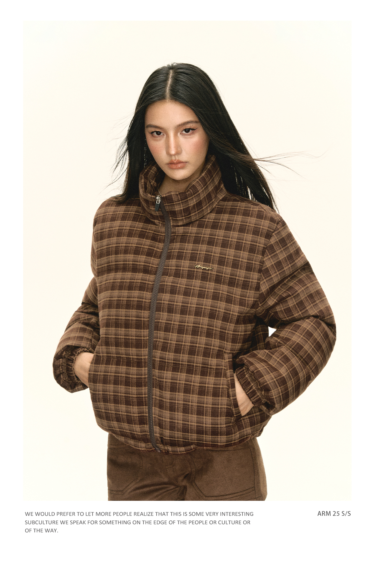 Ariseism 美式复古设计感格子棉服外套女秋冬新款上衣面包服