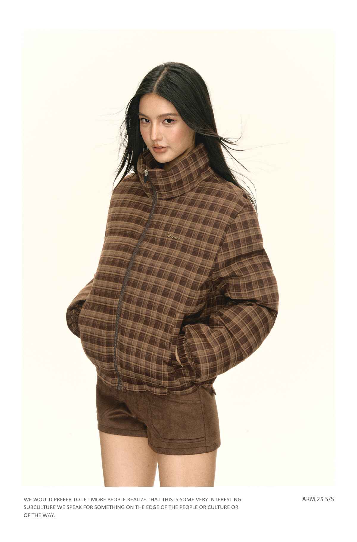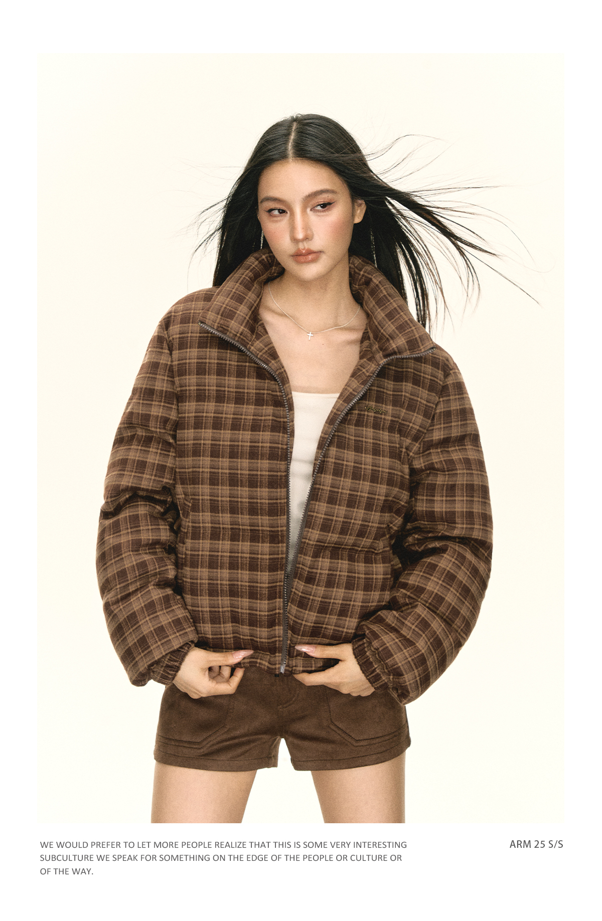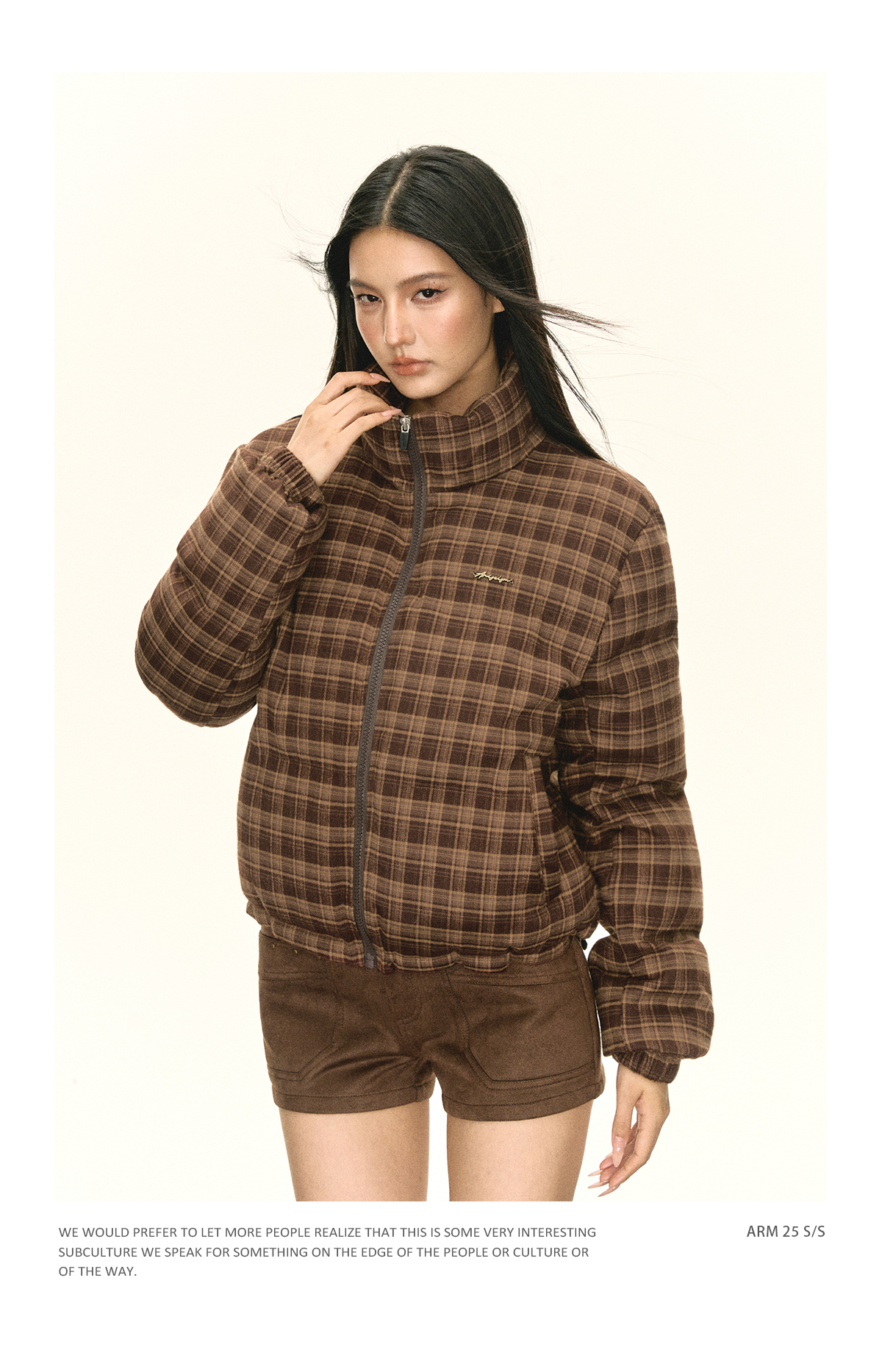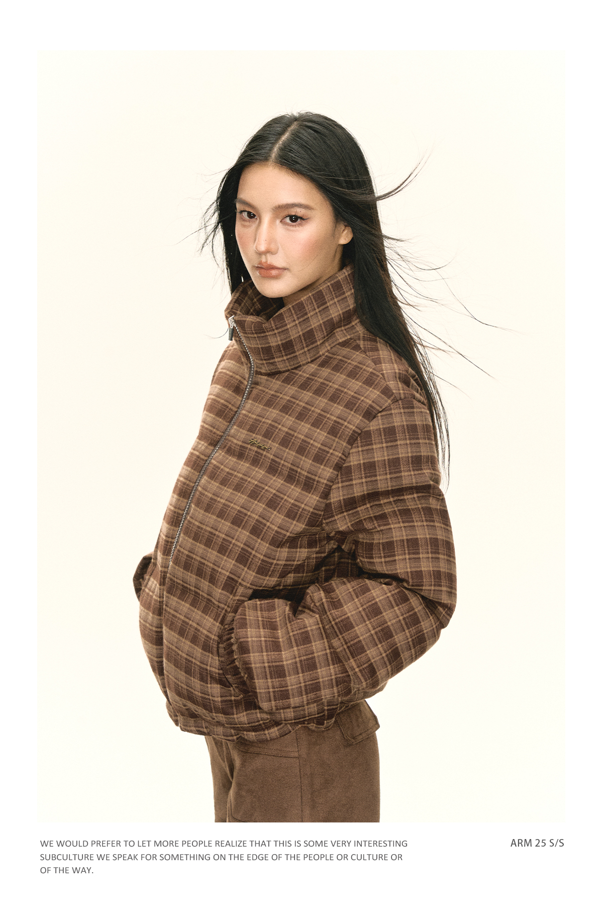 Ariseism 美式复古设计感格子棉服外套女秋冬新款上衣面包服