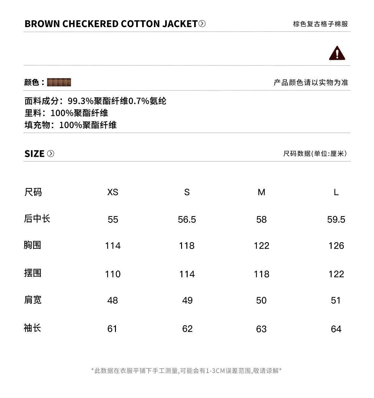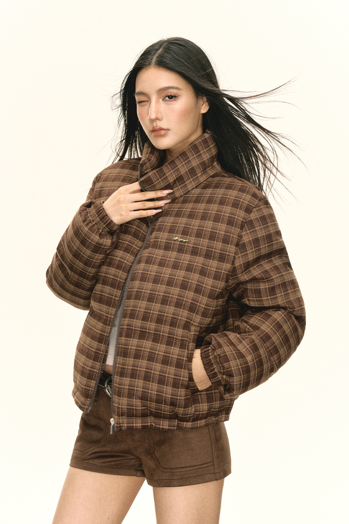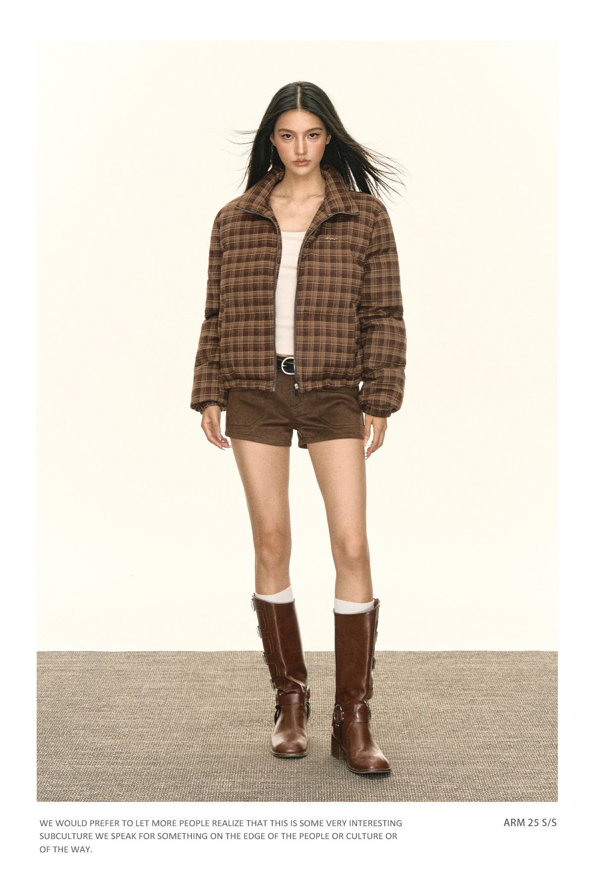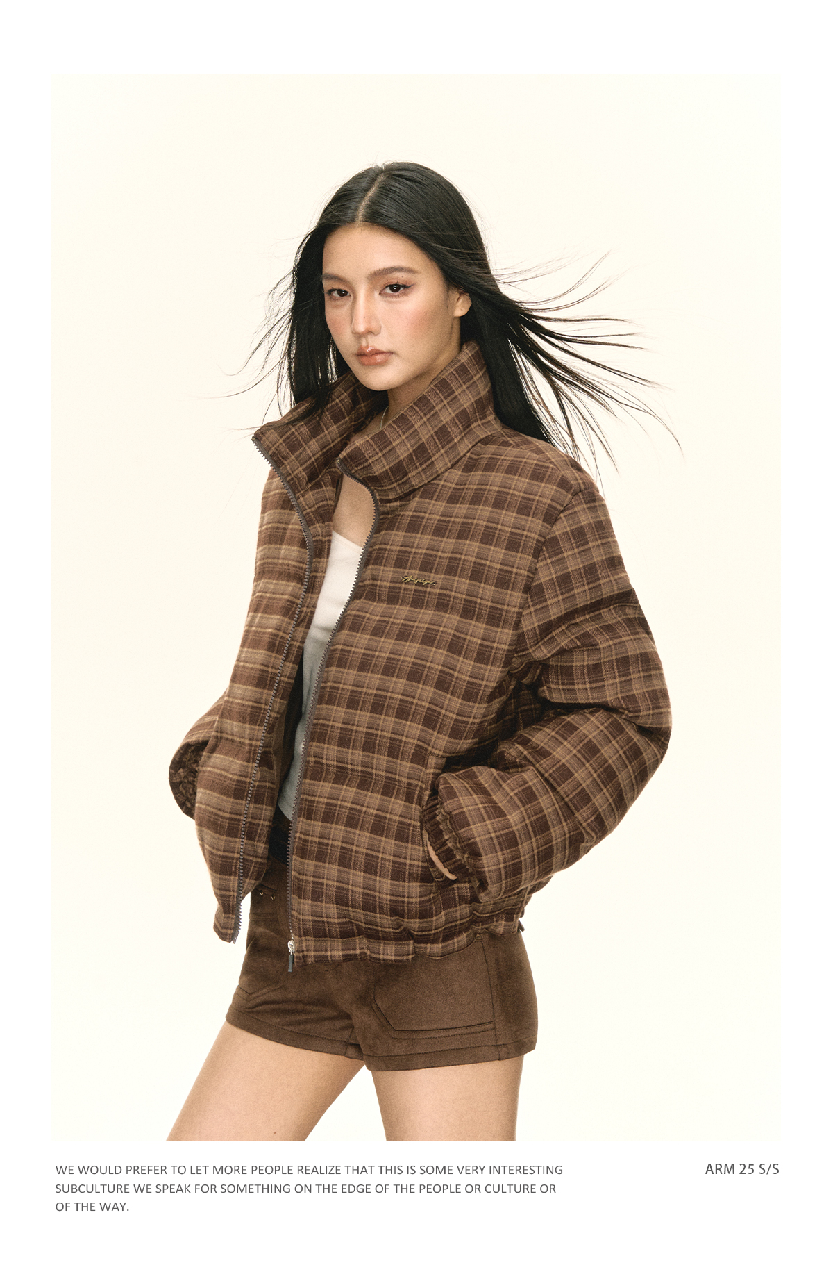 Ariseism 美式复古设计感格子棉服外套女秋冬新款上衣面包服