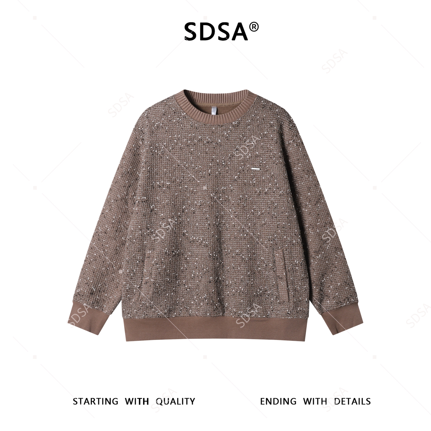 9555SDSA男士秋冬新款痞帅男装时尚复古拼接格子圆领卫衣百搭宽松上衣
