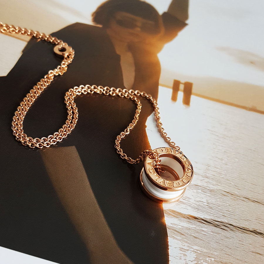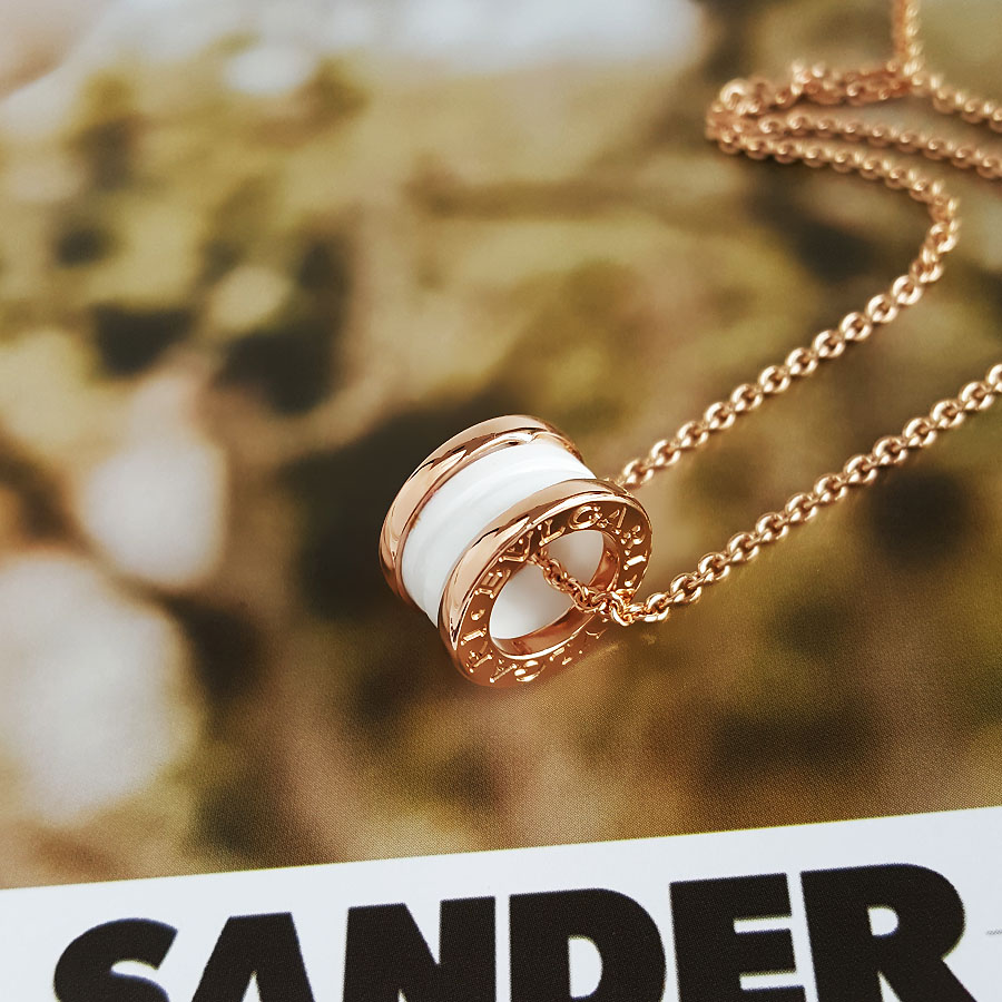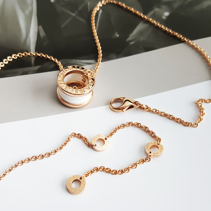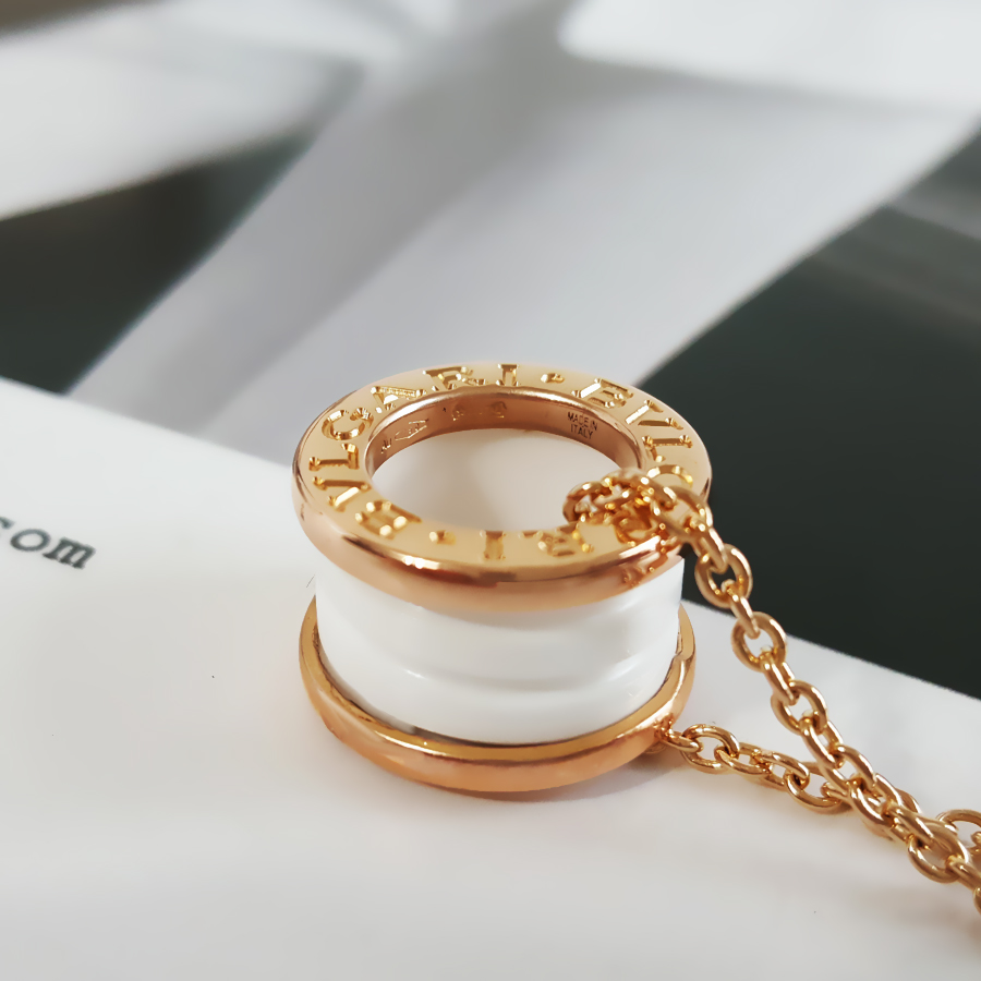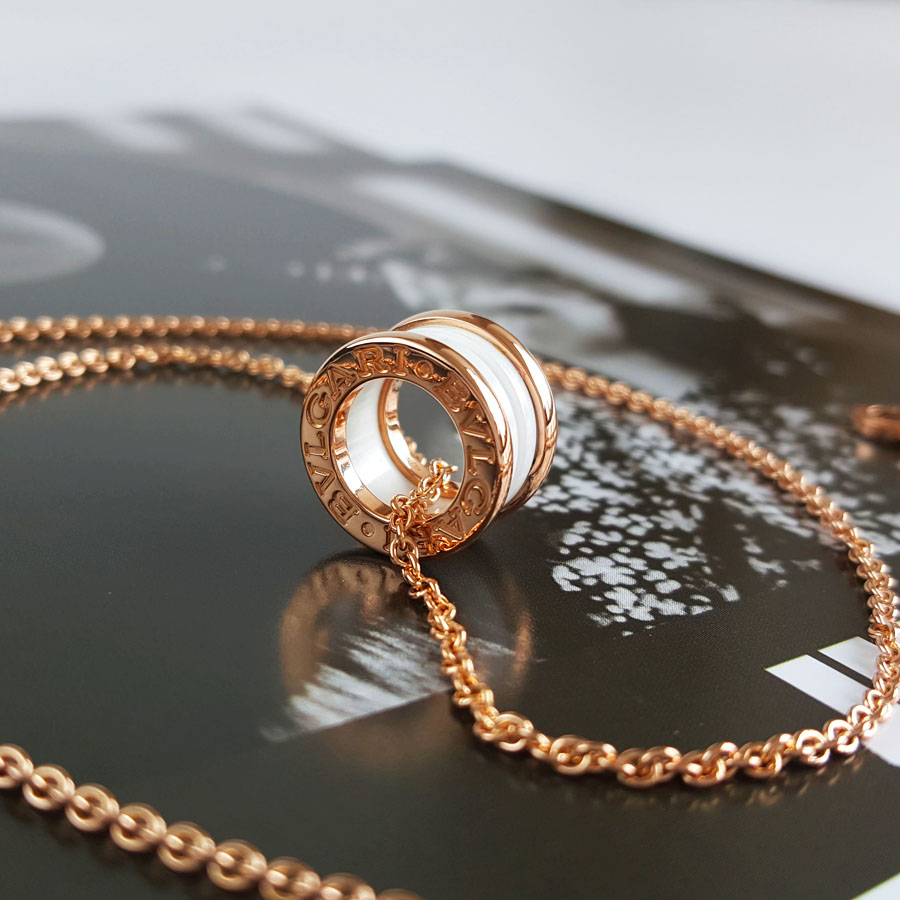 【95新】BVLGARI宝格丽B.zero1系列346082玫瑰金白陶瓷弹簧项链 链长约49cm女士300326NJS29