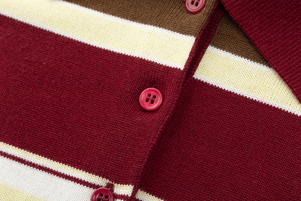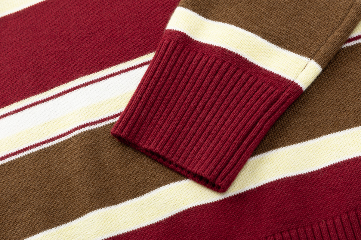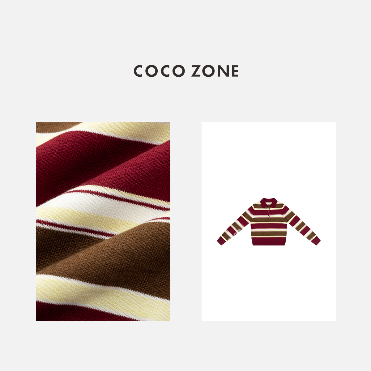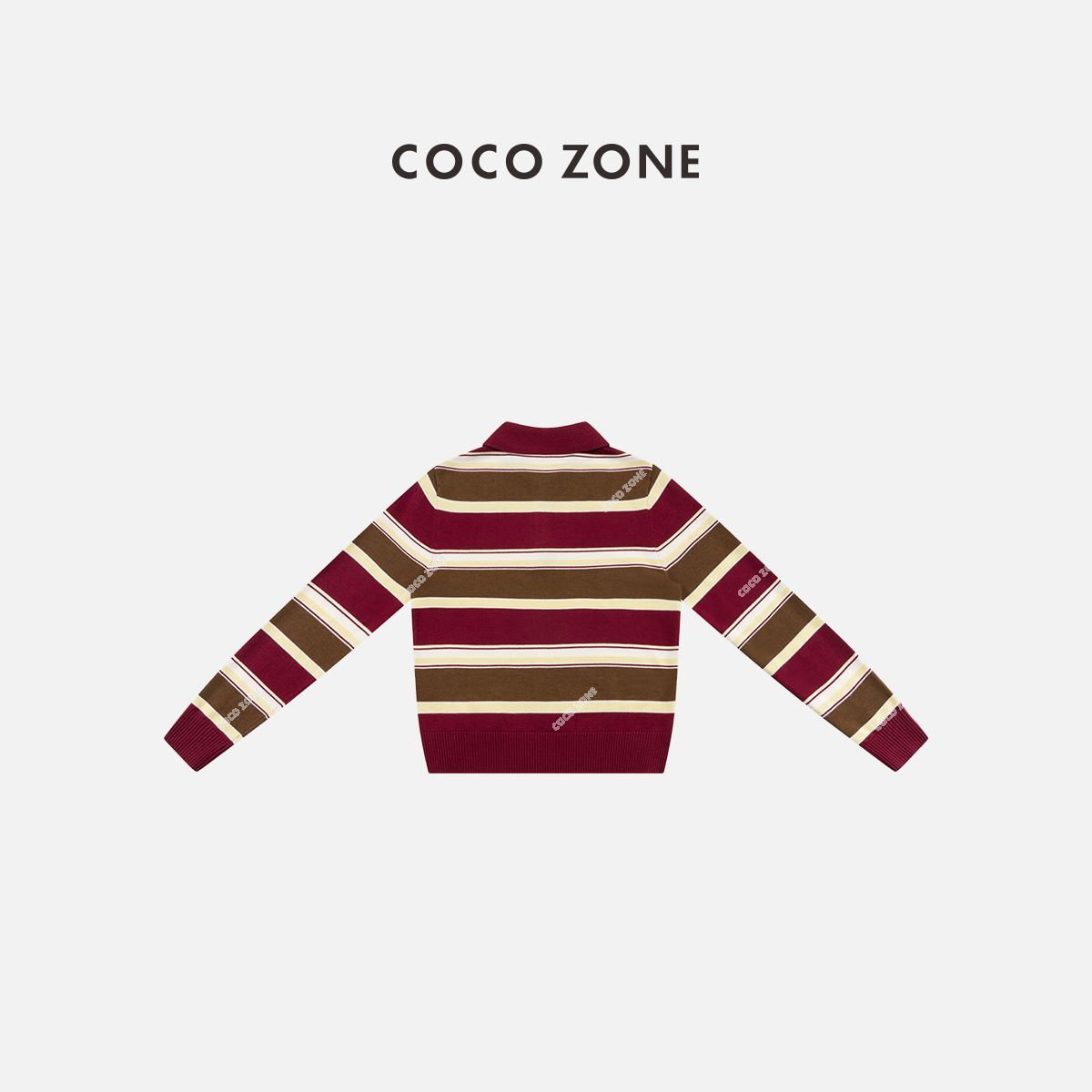 COCO ZONE 时尚条纹polo领针织衫撞色套头上衣CC1D2455