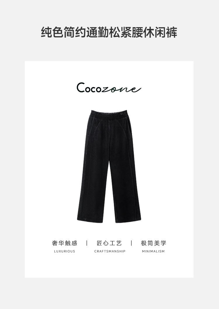 COCO ZONE 刘一一 纯色简约通勤松紧腰休闲裤 CD2A2236