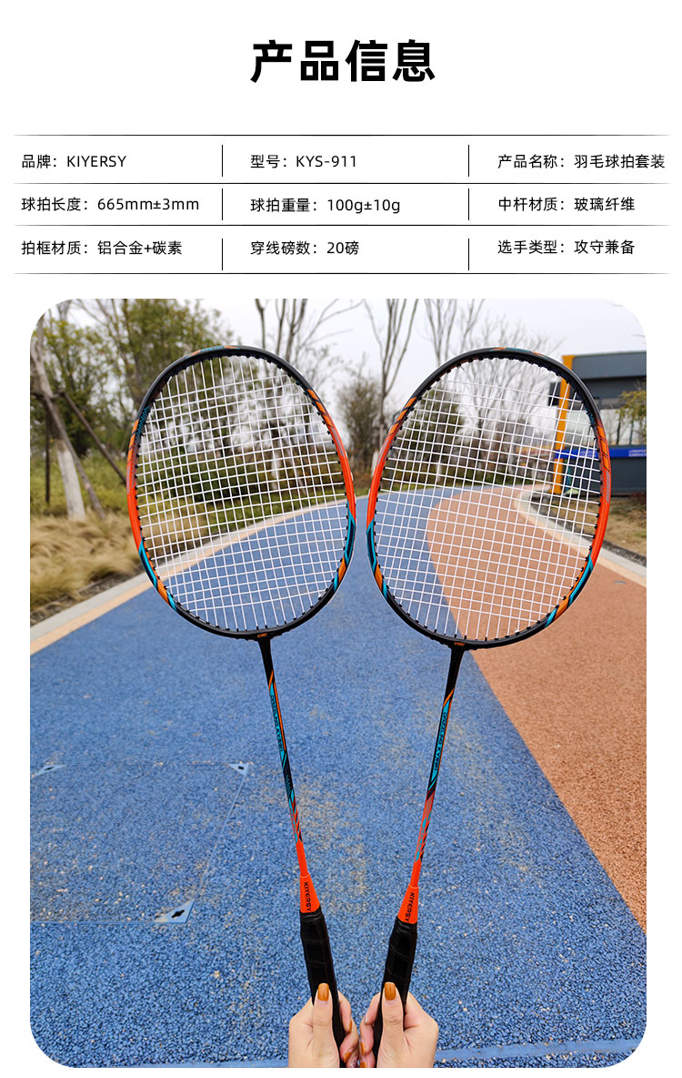 凯亚仕轻量铝碳一体球拍两支装KYS-911