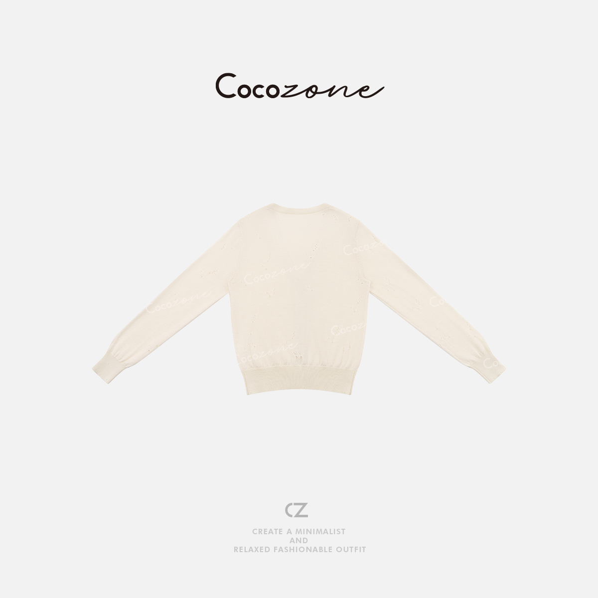 COCO ZONE 刘一一"米洛针织"100绵羊毛镂空毛织上衣 CD1A1052