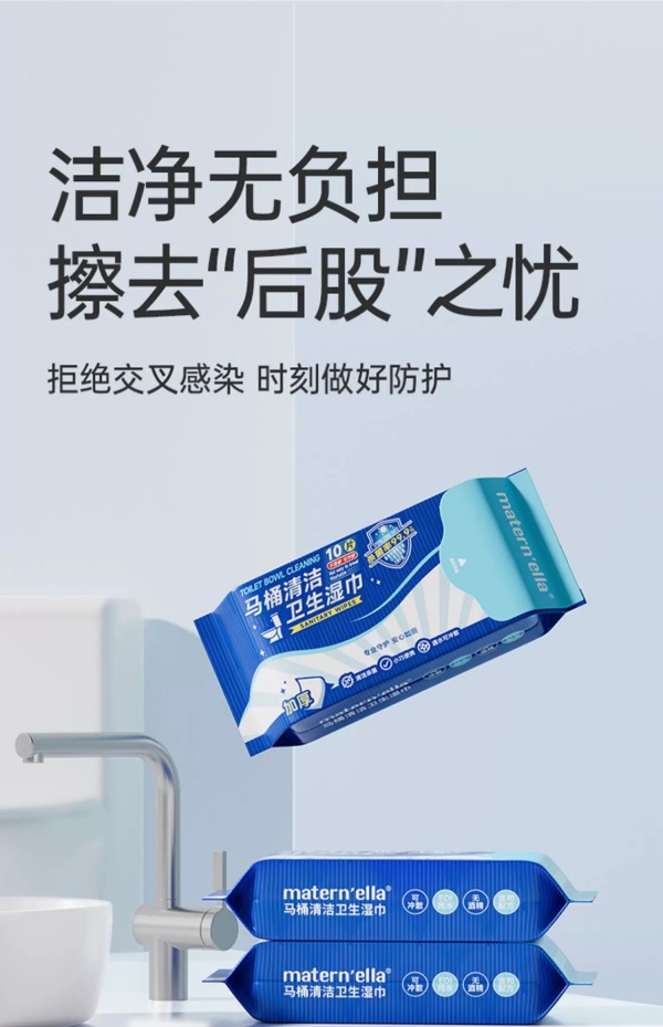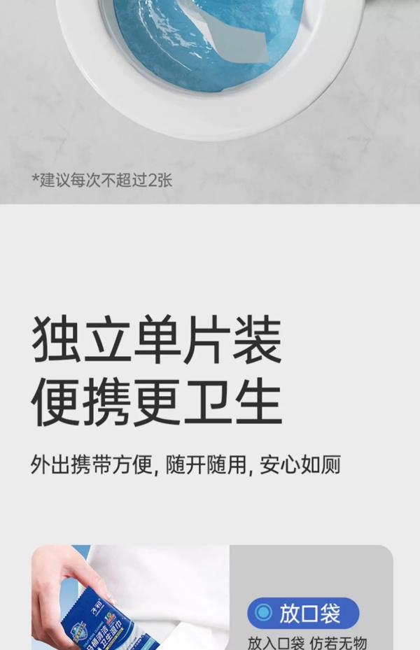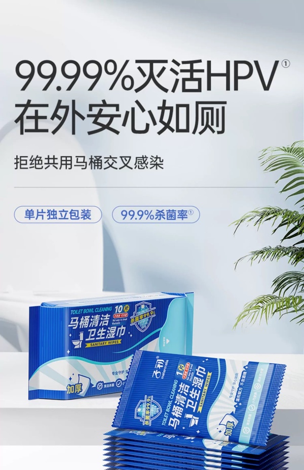 【有赞困妈有好货-】子初牌马桶清洁卫生湿巾 200*150mm 单片×10片/包*8包 杀灭HPV病毒99.9%