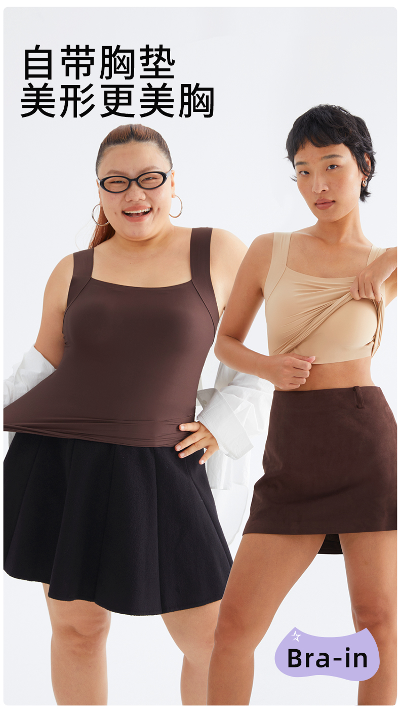 半醒Ms背心08 新款带胸垫免穿文胸一体式吊带背心【IG0026】