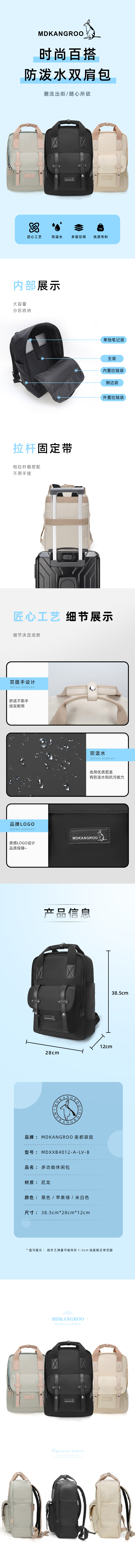 美都袋鼠/MDKANGROO 多功能休闲时尚妈咪包双肩包MDXXB4012-A(黑)