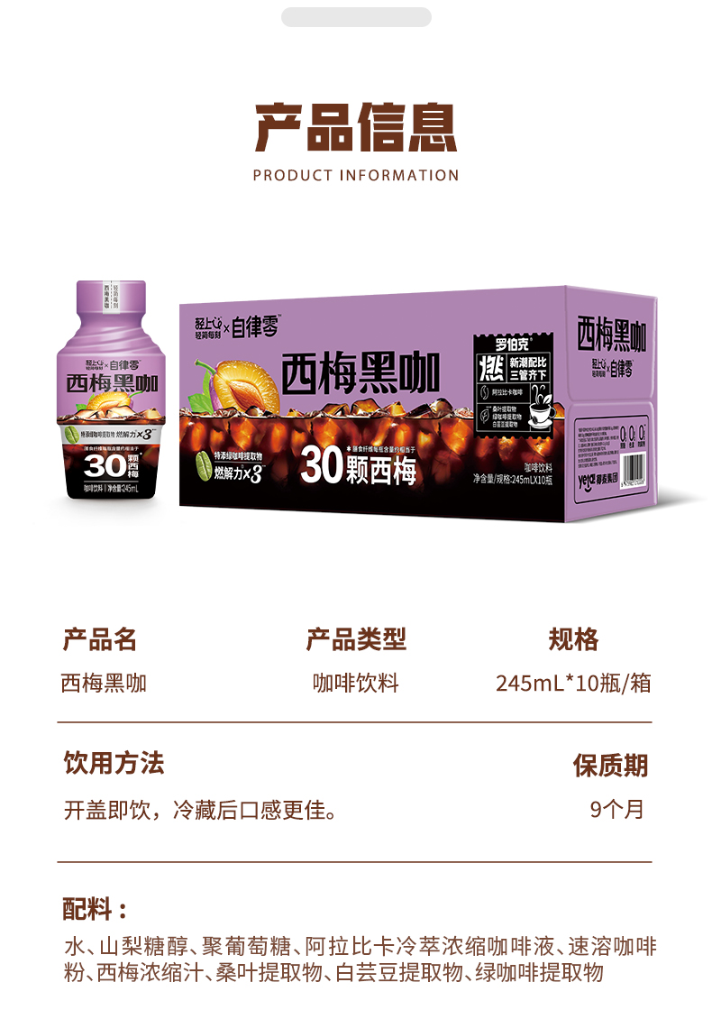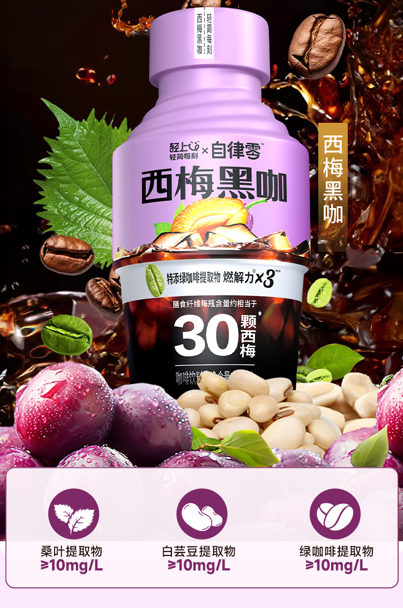 轻上西梅黑咖啡2.0即饮咖啡饮料健身0脂肪咖啡饮品