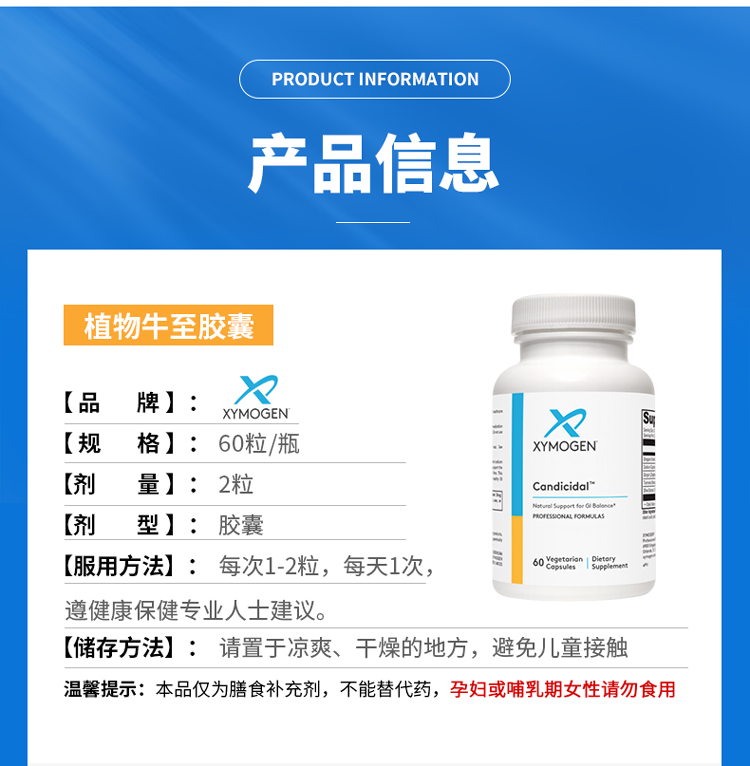 【效期至27年3月】植物牛至胶囊 XYMOGEN Candicidal 60 C 60粒/瓶