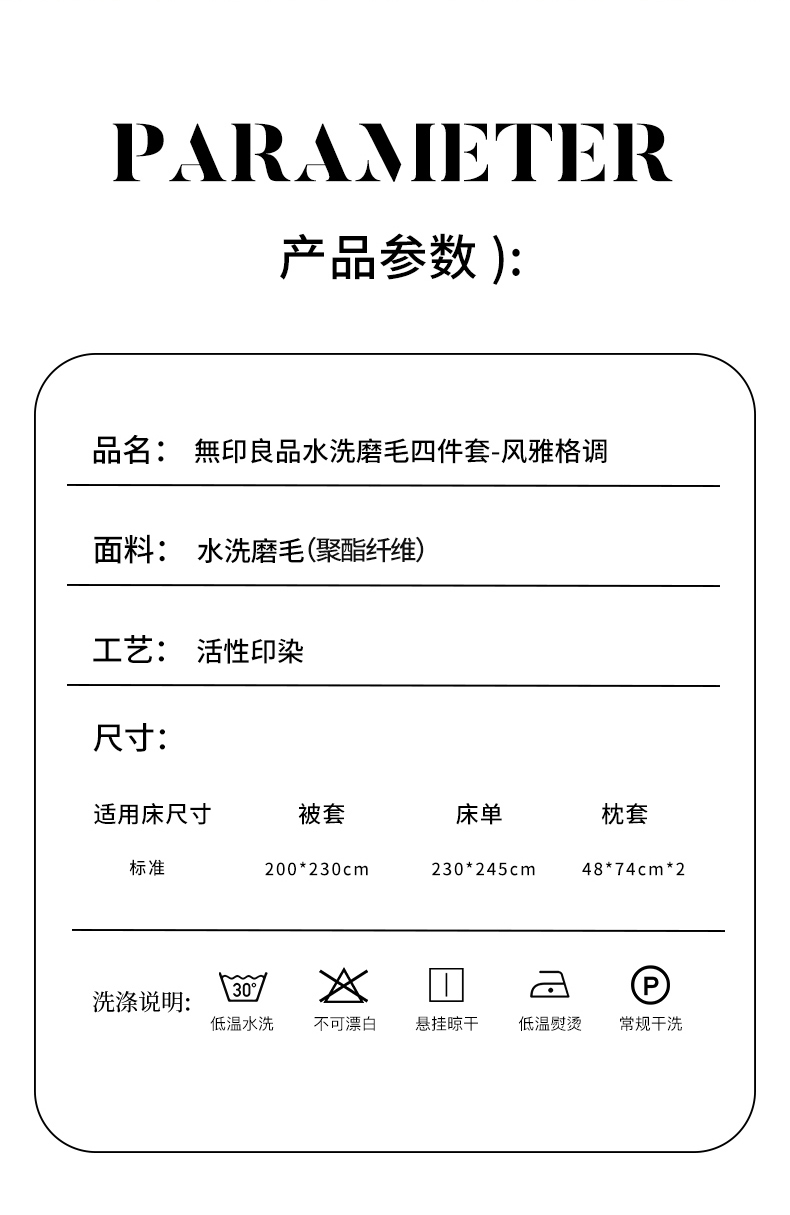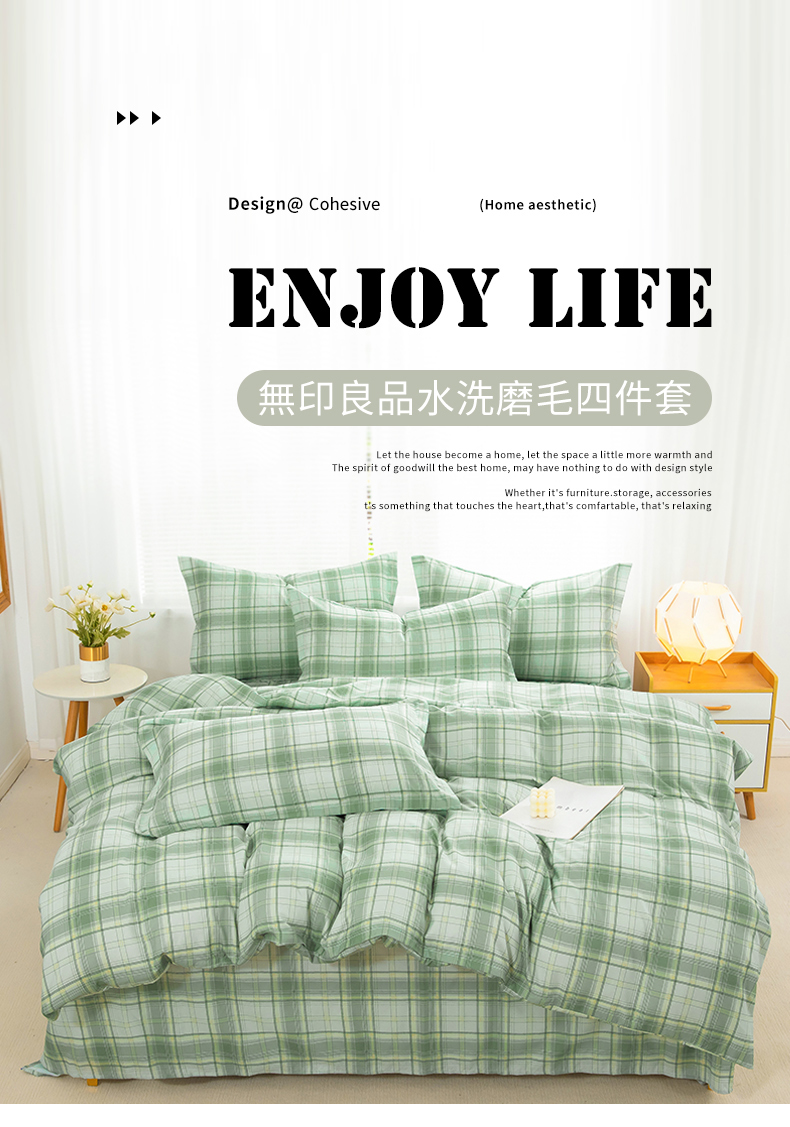 無印良品水洗磨毛四件套-风雅格调 200*230cm