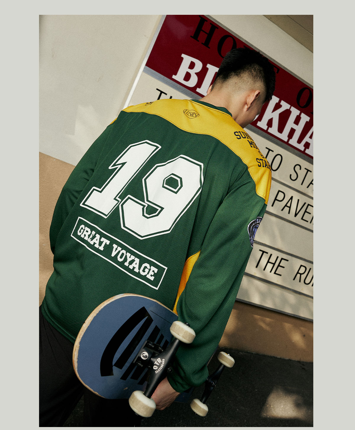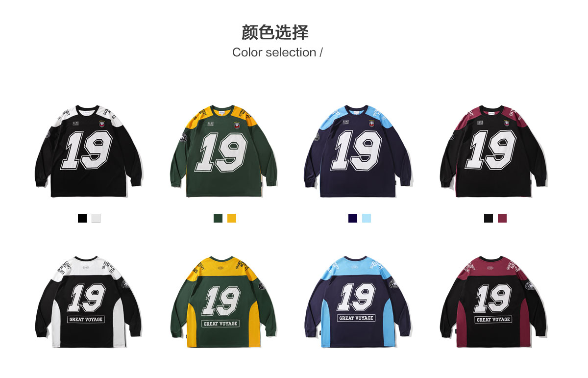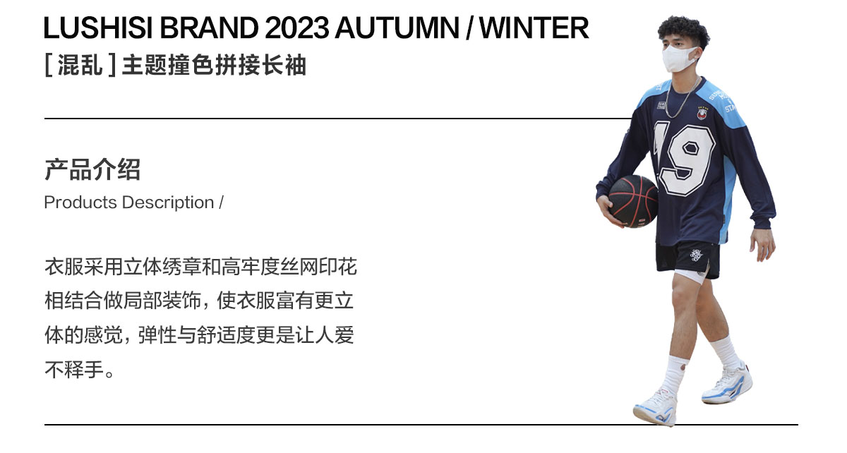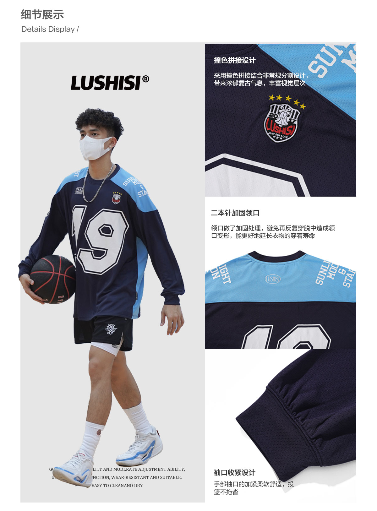 LUSHISI美式街头落肩袖章印花[混乱]撞色机车运动速干投篮服长袖