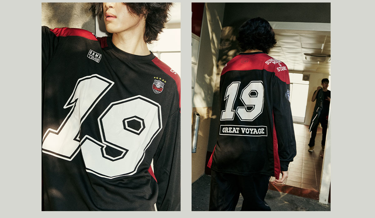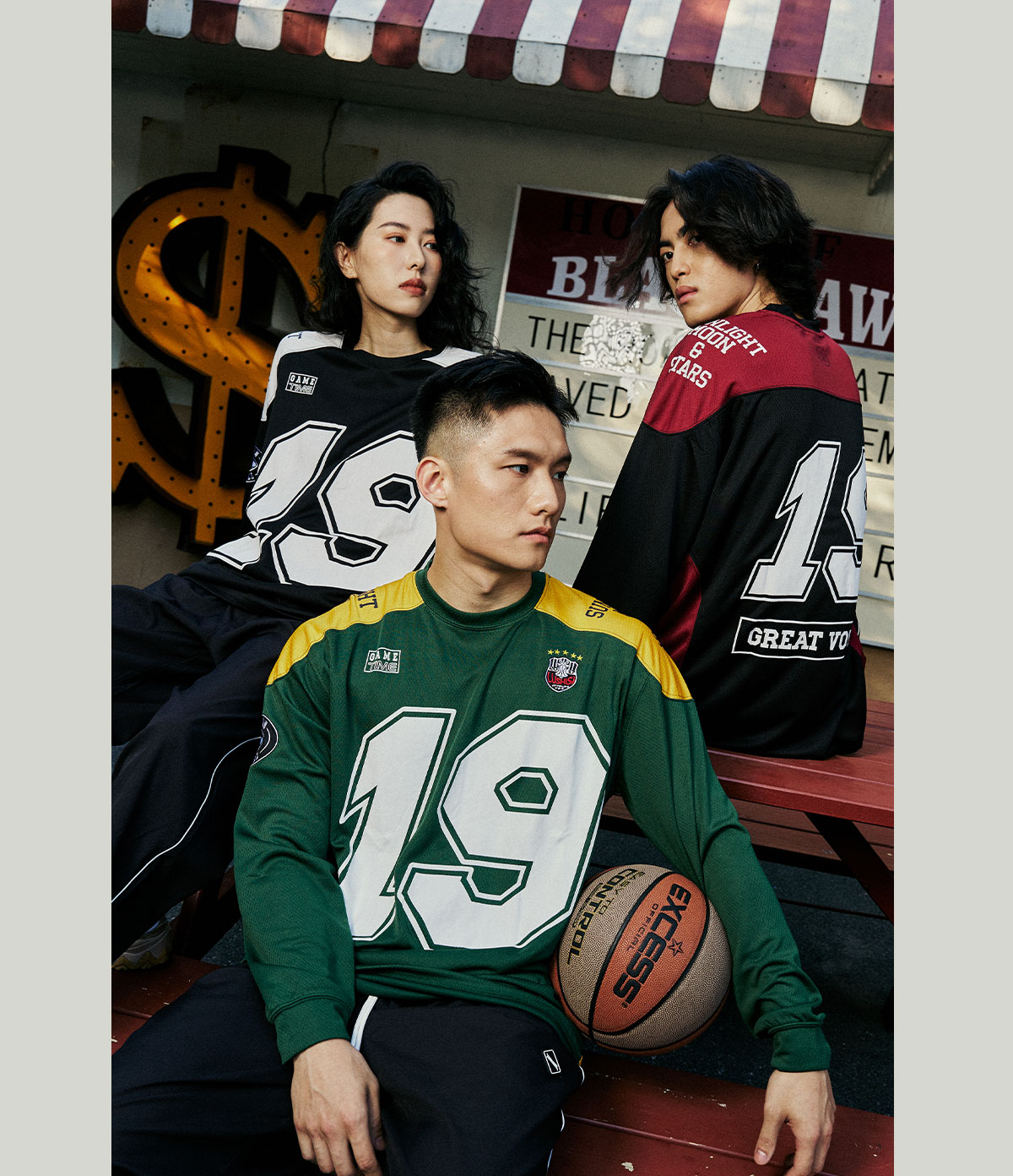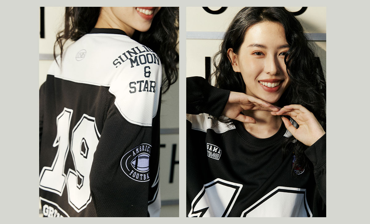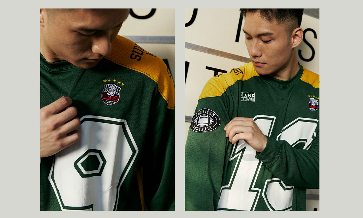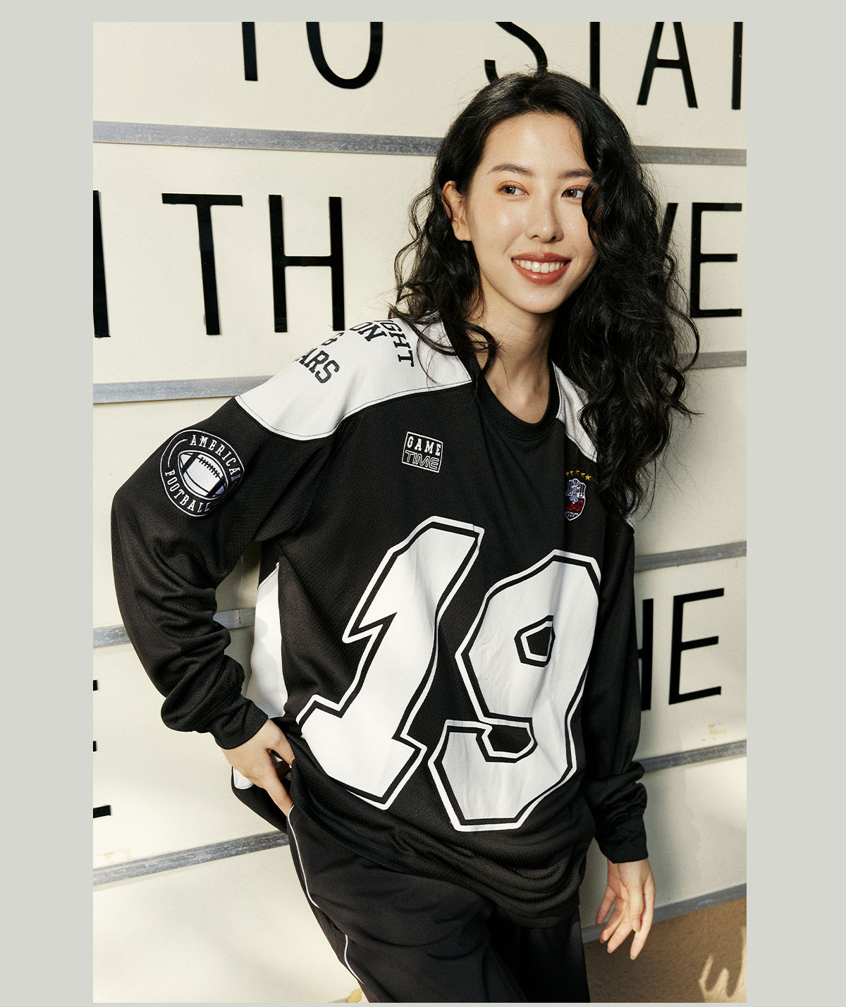 LUSHISI美式街头落肩袖章印花[混乱]撞色机车运动速干投篮服长袖