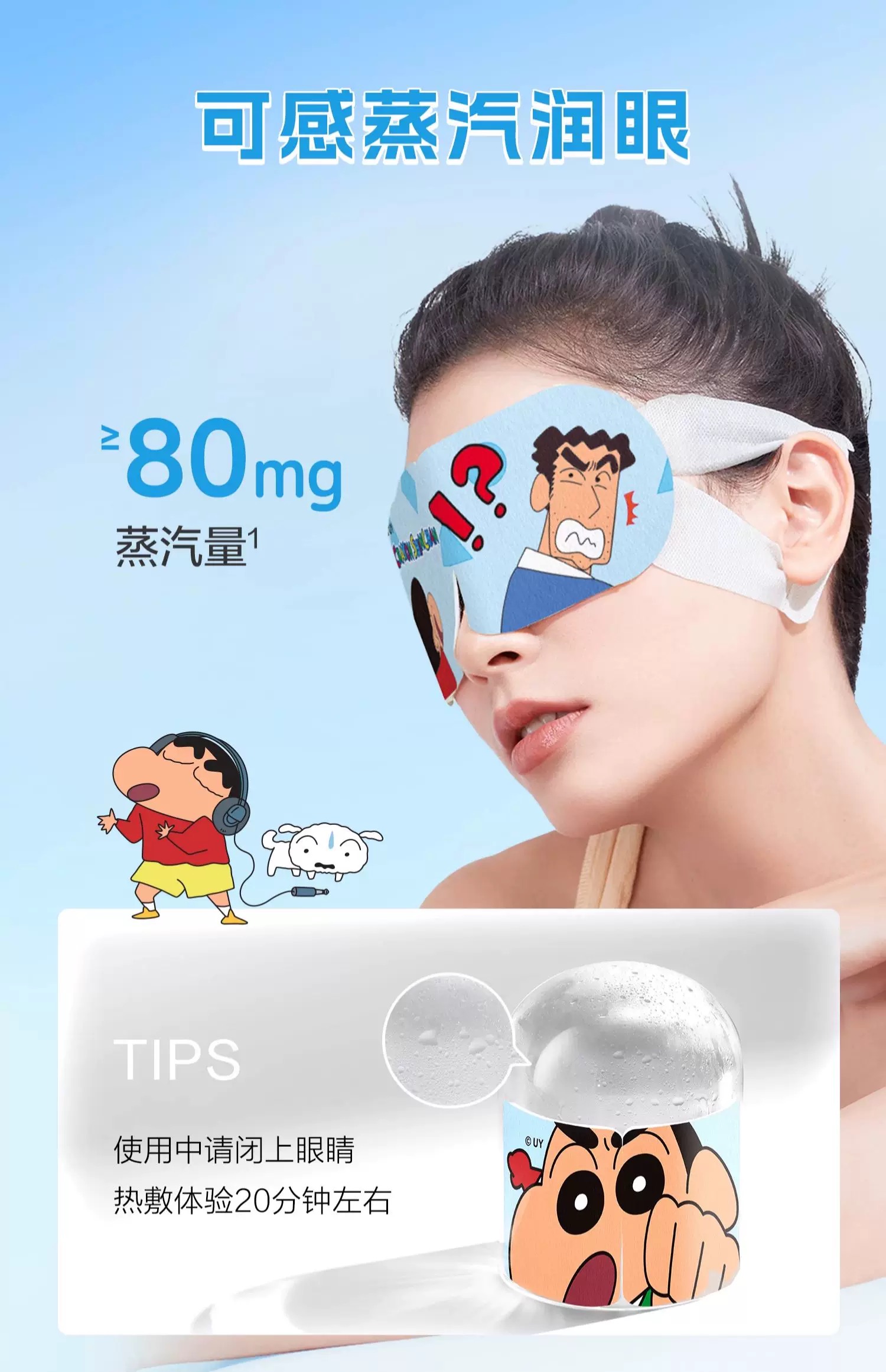 【精选】珍视明蒸汽眼罩 蜡笔小新联名  热敷发热舒缓眼疲劳 (2盒共10片装) 商品图0