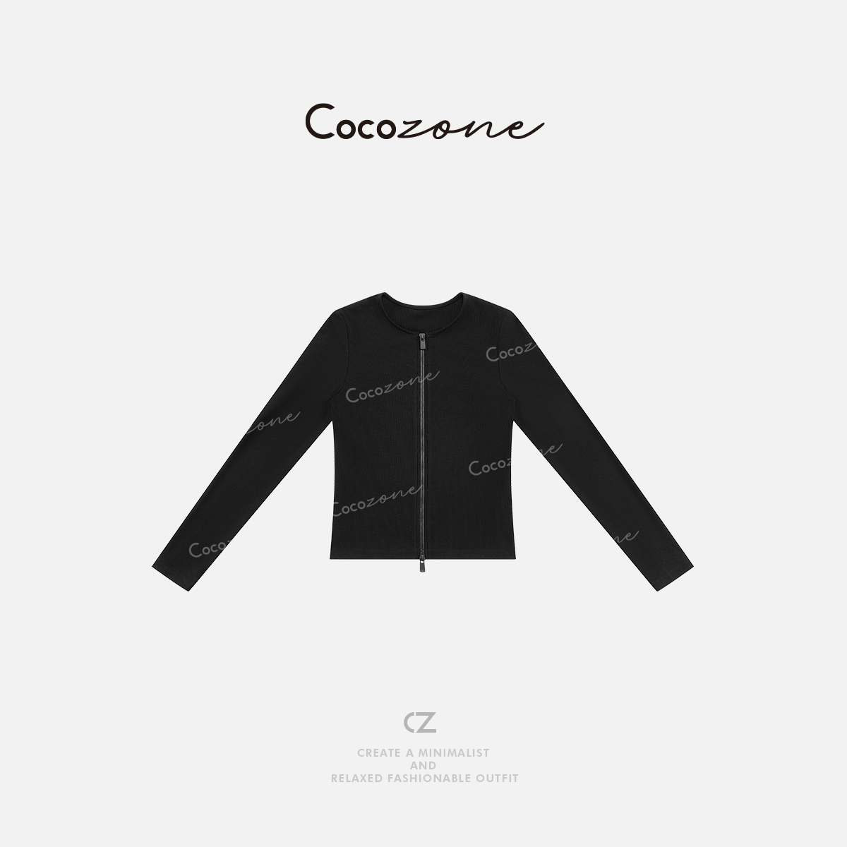 COCO ZONE 刘一一 复古纯色拉链修身圆领女式休闲打底CD1A0166