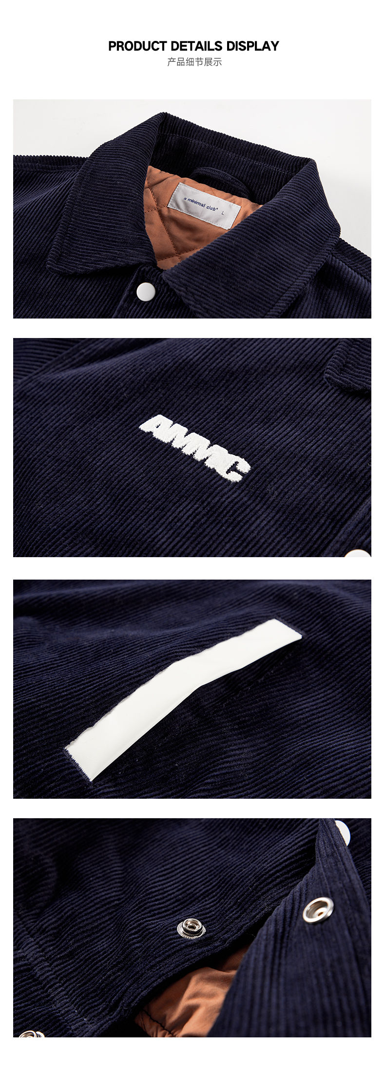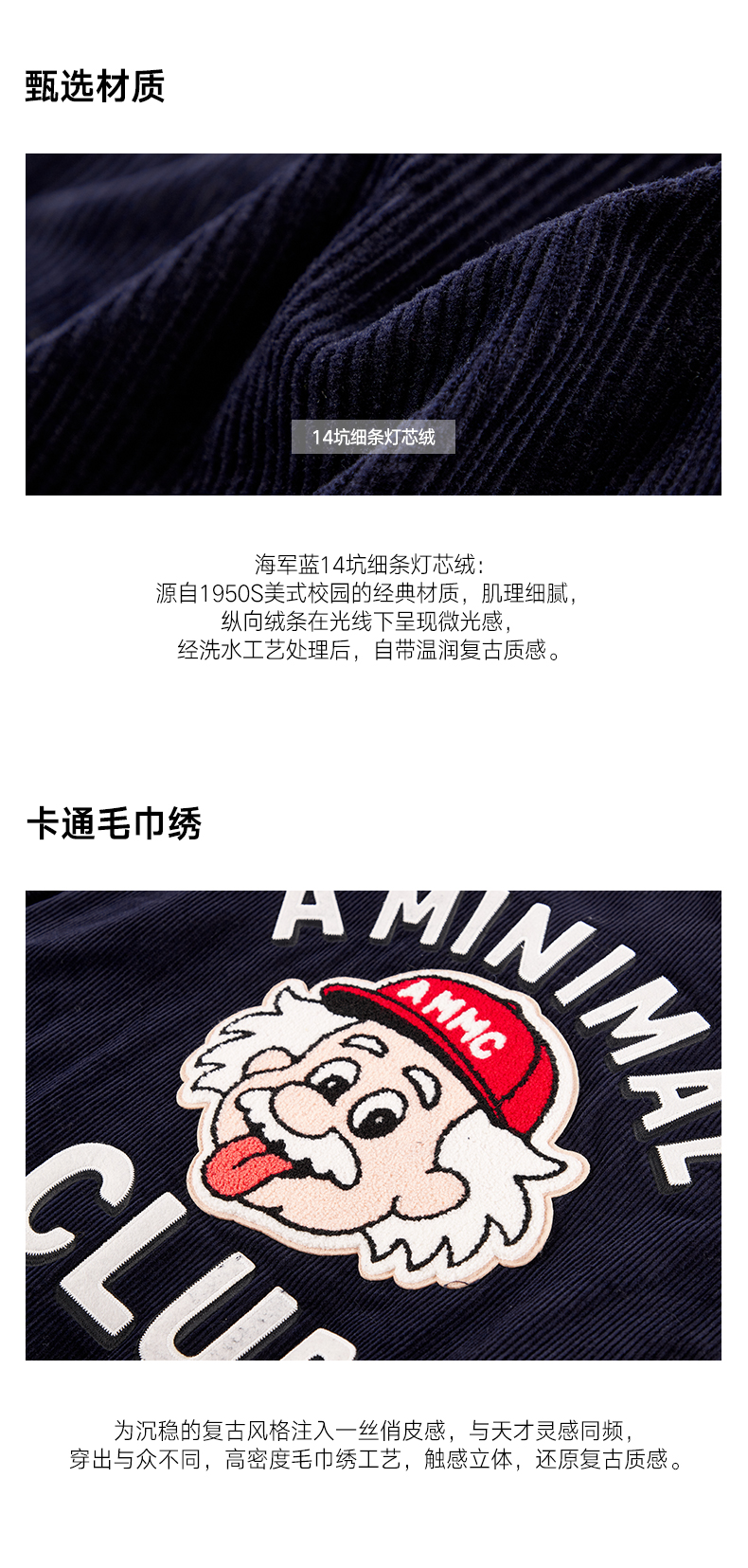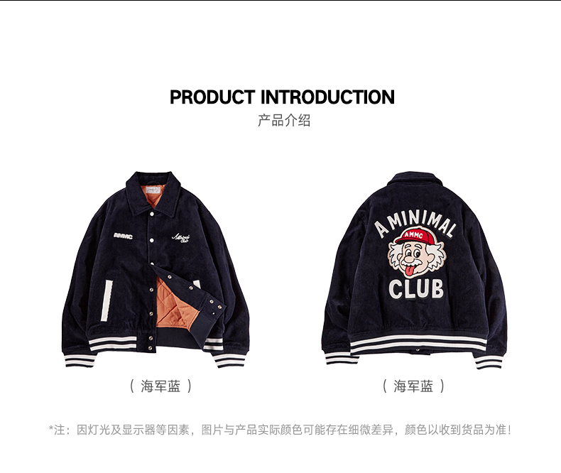 a minimal club美式复古趣味灯芯绒棒球服棉服廓形高街AM5APJ08