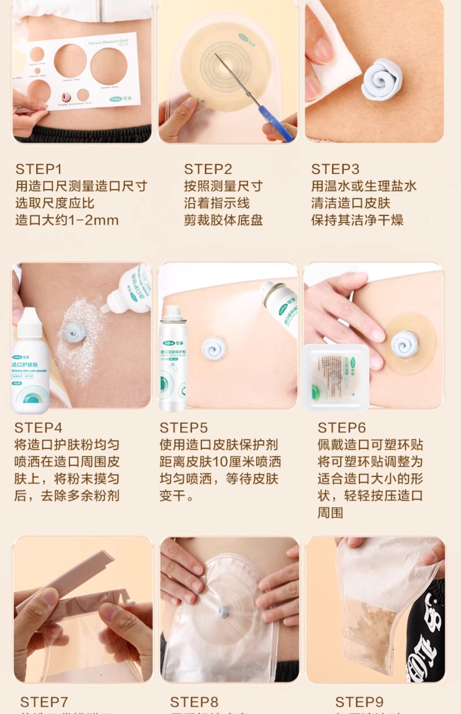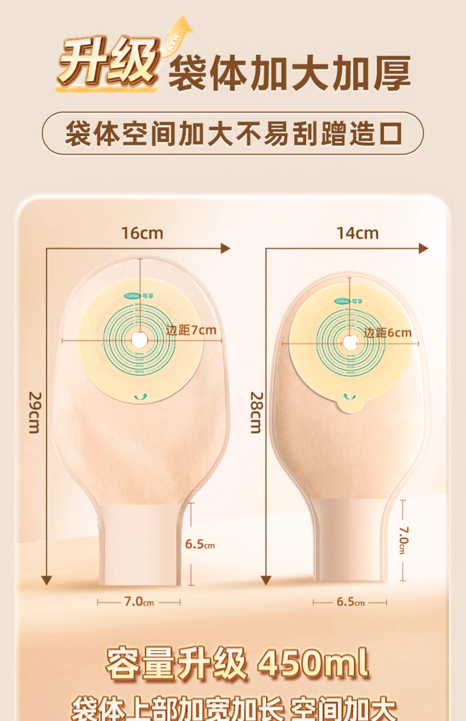 【新款魔术贴】可孚一件式造口袋4009C 凸面底盘凹陷造瘘袋防漏