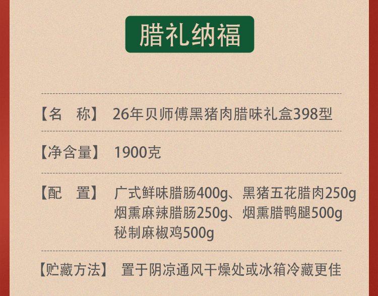 26年贝师傅黑猪肉腊味礼盒398型-腊礼纳福