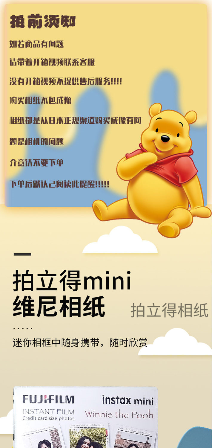 mini维尼3寸相纸1盒10张,多盒便宜,日期新鲜,现货速发,富士所有mini系列相机通用