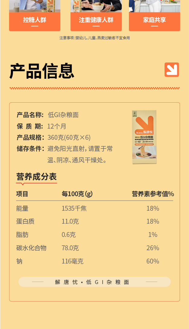 解唐忧 低GI杂粮面60g*6袋 共360g