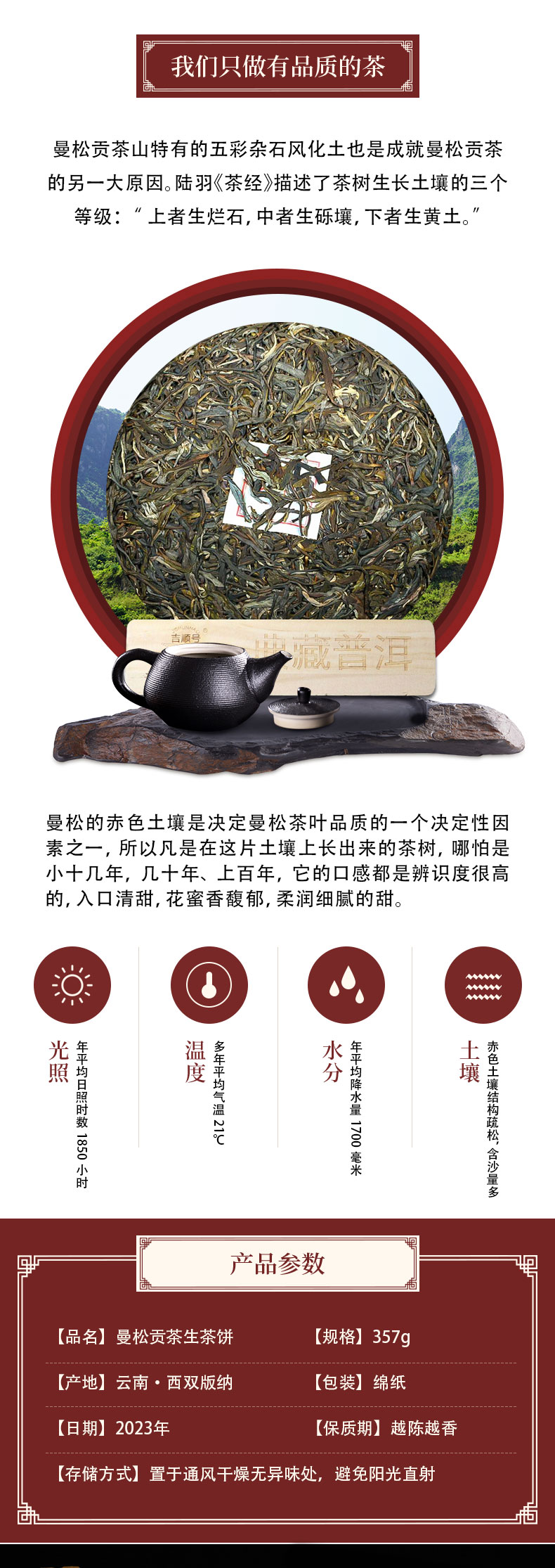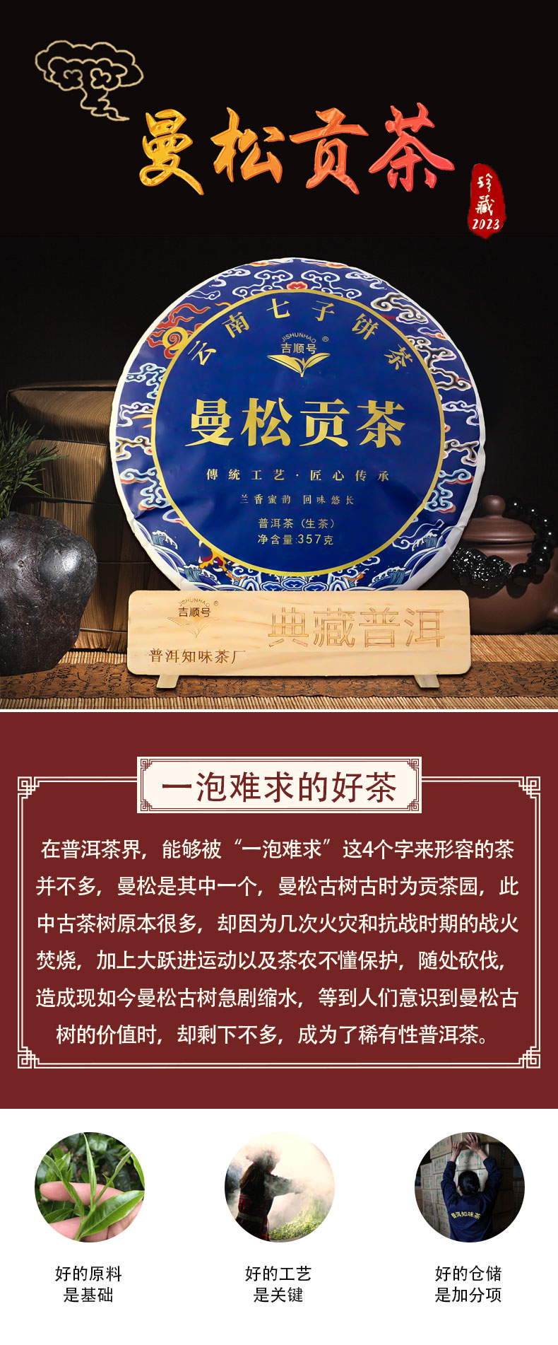 吉顺号普洱茶 2023年《曼松贡茶》生茶饼357克