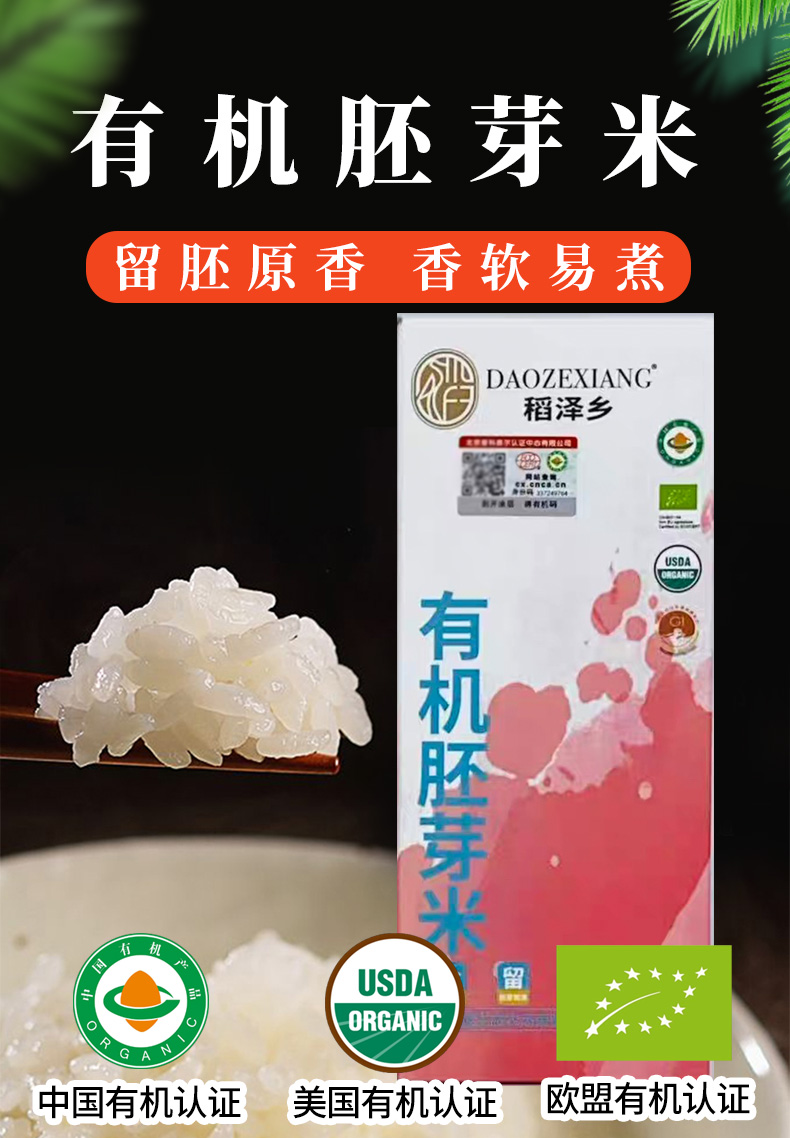 有机胚芽米500g宝宝营养米糊煮粥米欧盟美国中国三重有机认证真空装五谷杂粮