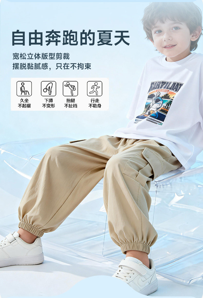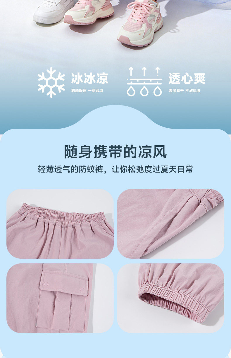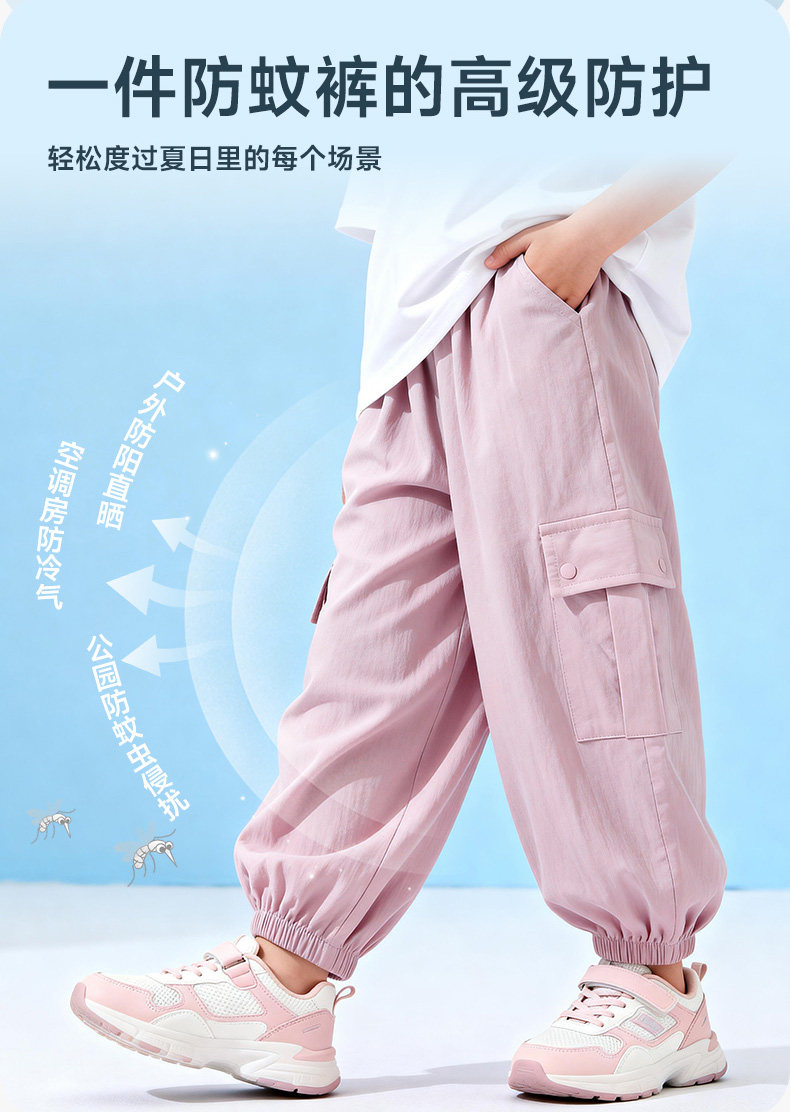 贝贝怡童装儿童防蚊裤2026夏季新款男女童休闲工装裤洋气束脚长裤ZB2FK011