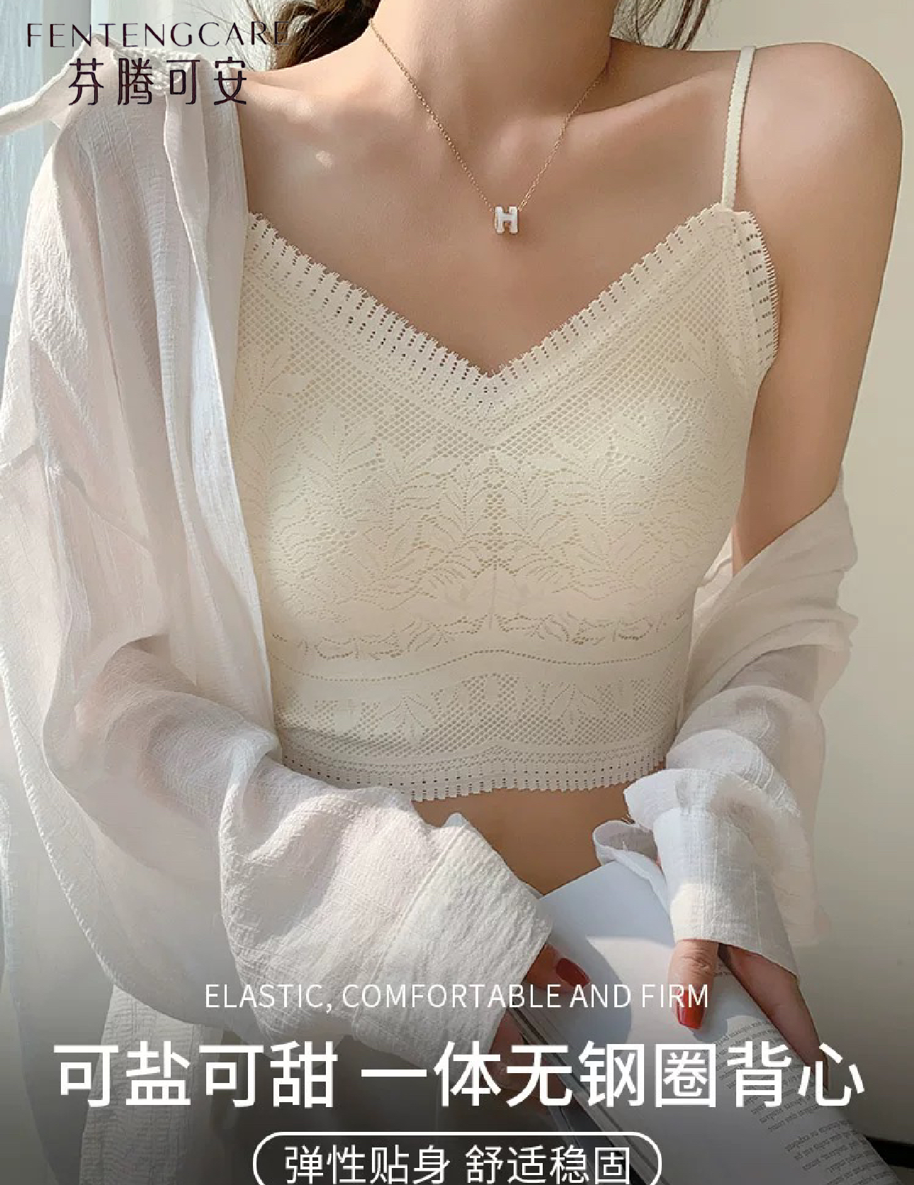 【FENTENG芬腾可安正品浪漫花卉蕾丝美背吊带内衣】会呼吸的蕾丝吊带内衣~凉肌美背,精致的蕾丝花艺刺绣,自带仙气感