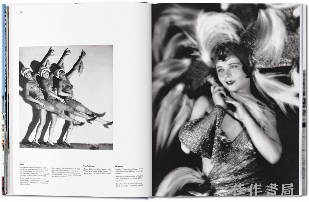 约560页的内容汇集了航空视图、街景、肖像等,追溯了柏林从作为普鲁士首都的帝国时代,到喧嚣的二十年代,再到毁灭性的战争景象,以及战后城市重建的暖心照片——从废墟中的国会大厦,到后来被克里斯托和让娜-克洛德包裹的样子。这些照片中,有亨利·卡蒂埃-布列松、赫尔穆特·牛顿、勒内·布里、罗伯特·卡帕、托马斯·斯特鲁斯和沃尔夫冈·提尔曼斯的作品,还有弗里德里希·塞登施蒂克、埃里希·所罗门、威利·罗默、海因里希·齐勒等著名柏林摄影编年史作者的作品(书中还附有摄影师传记索引)。