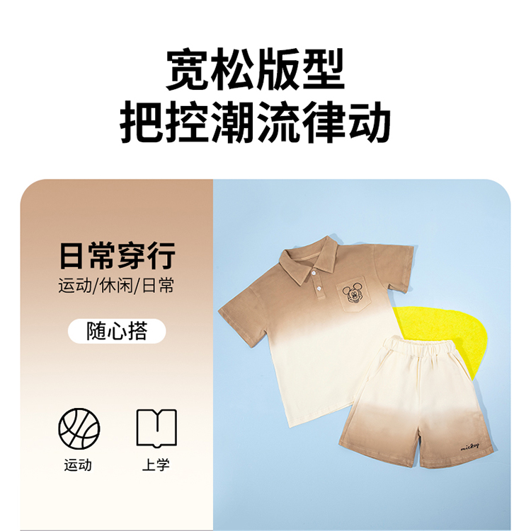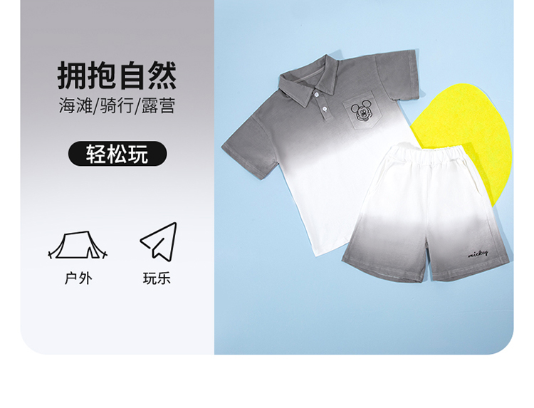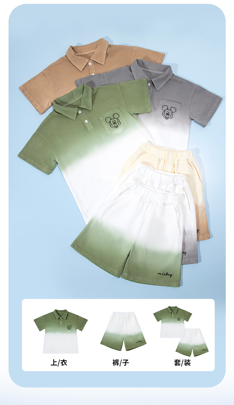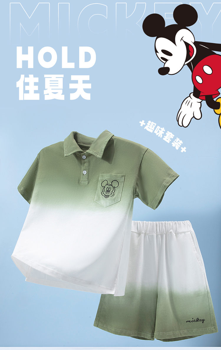 迪士尼经典米奇24夏季男女短袖套装凉感渐变色清爽出游休闲两件套ZD2DT028