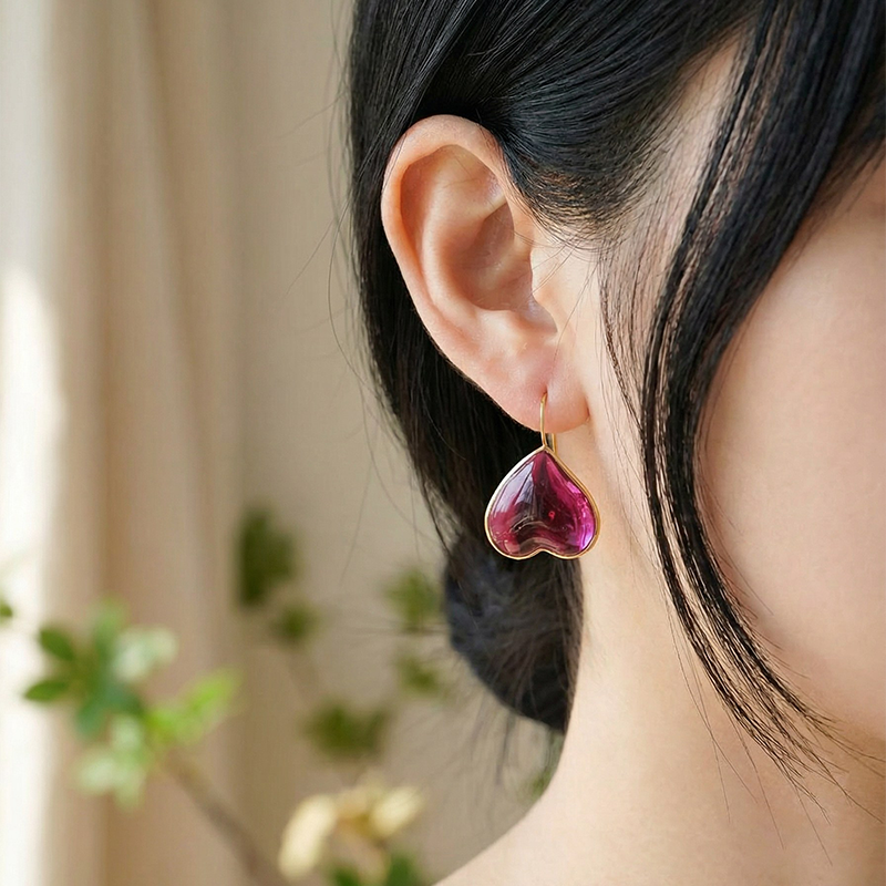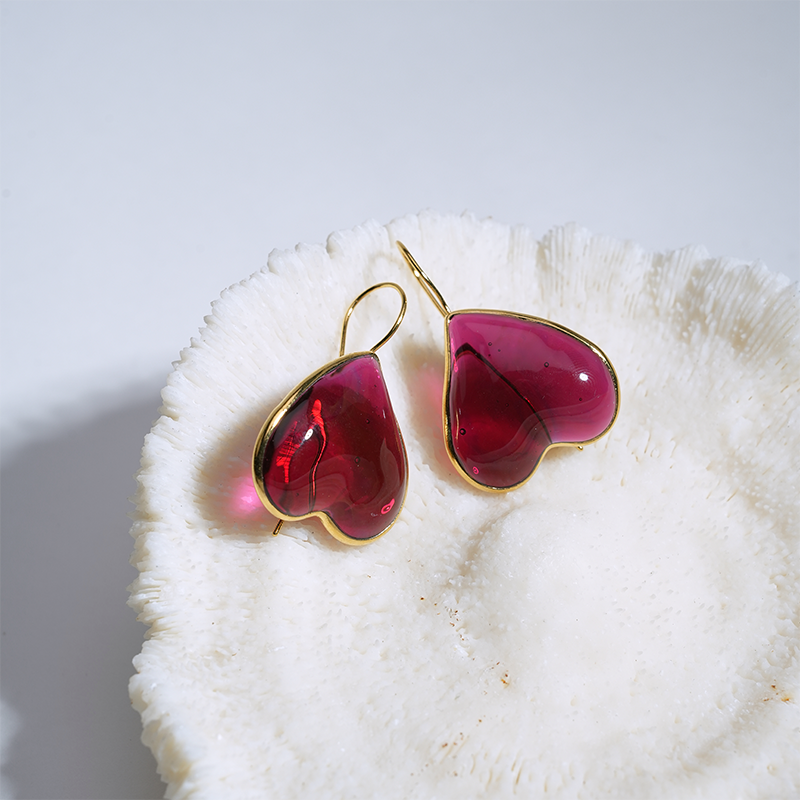 北京仓|Loulou de la Falaise-Clover-浓胭脂 爱心 耳环[法国设计师]