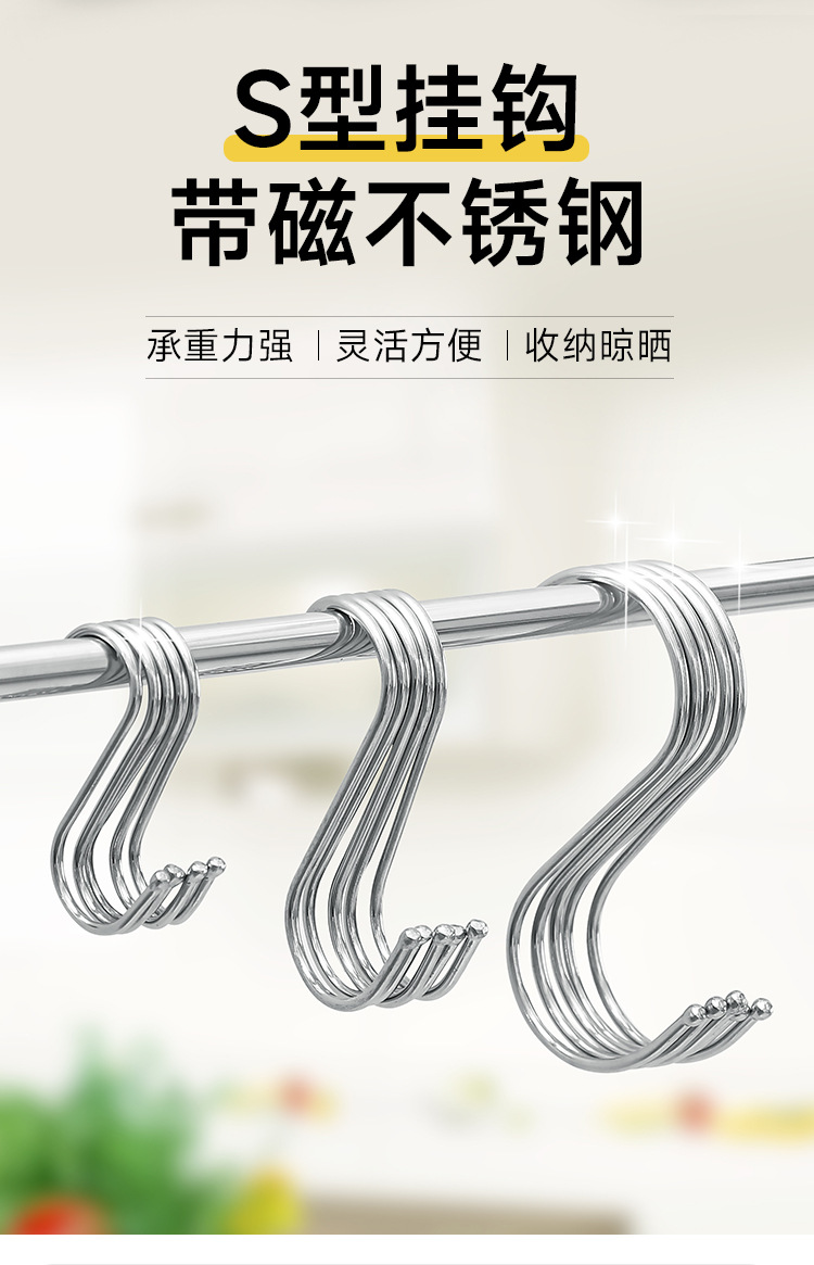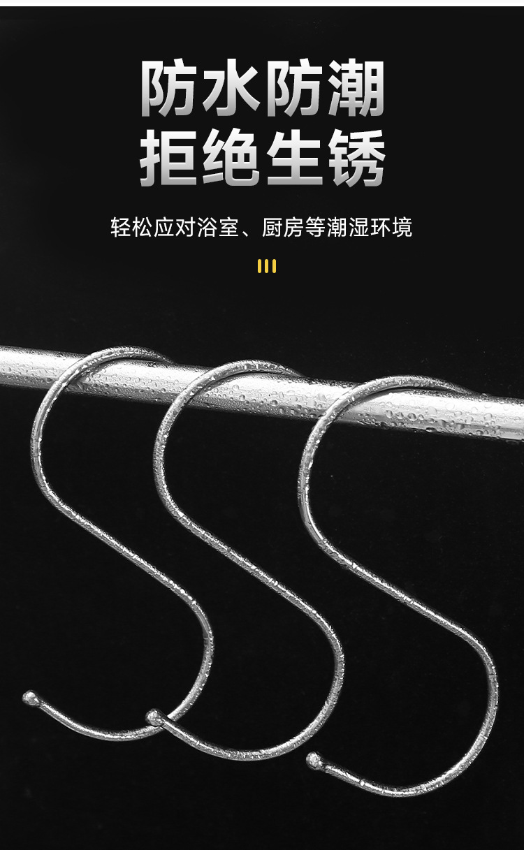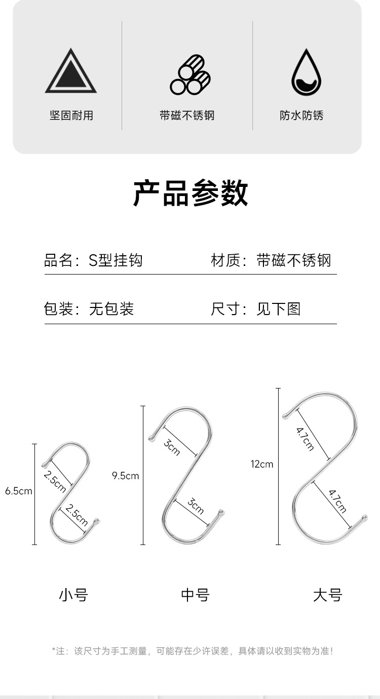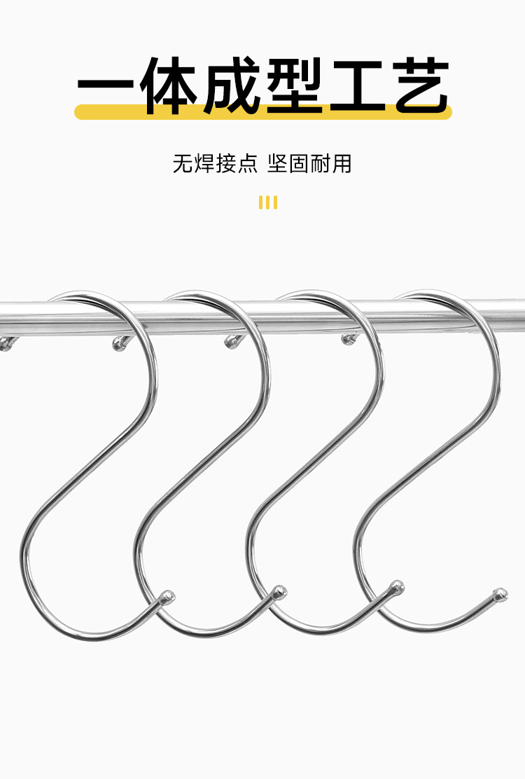 多用410不锈钢S型挂钩 壁挂浴室厨房S形挂钩柜门门后S钩s勾小钩子1个