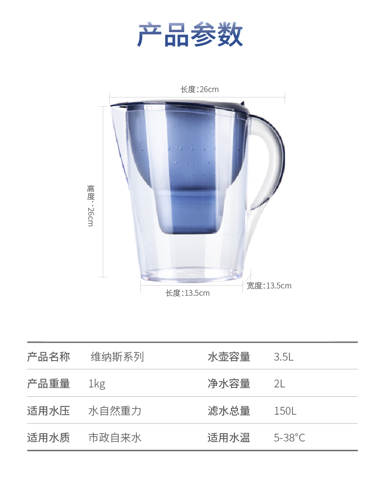 艾可丽 维纳斯滤水壶3.5L 净水壶家用净水器自来水过滤水壶滤芯