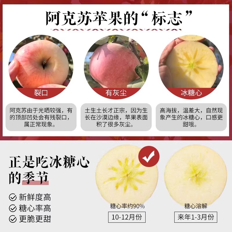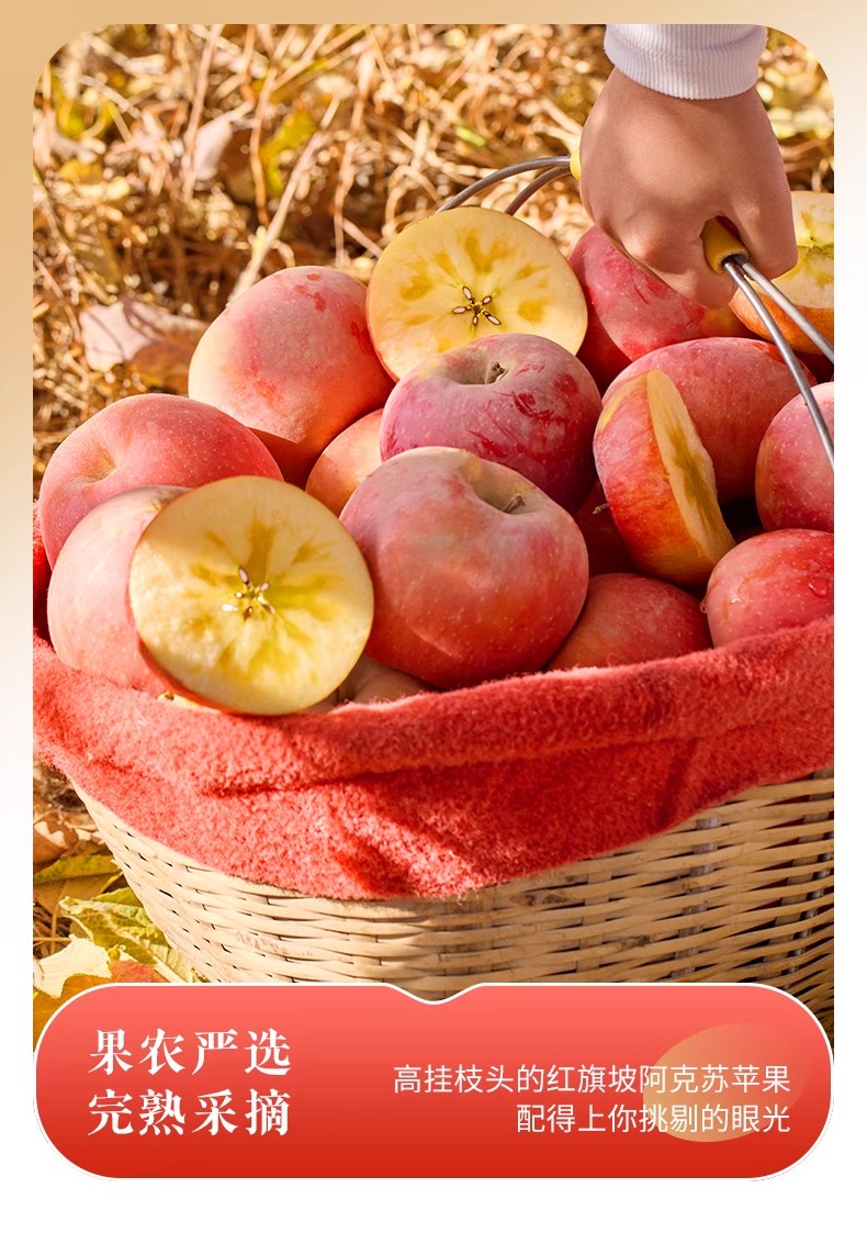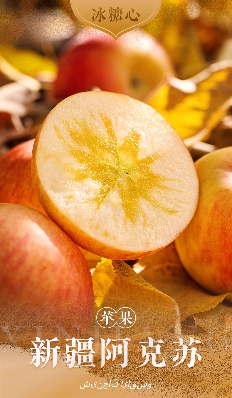 【精品彩箱】阿克苏18°冰糖心苹果2800小时日光凝聚 霜降3次自然蜜酿 85%高糖心率