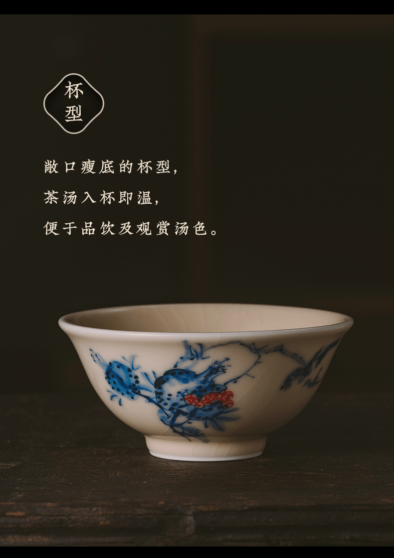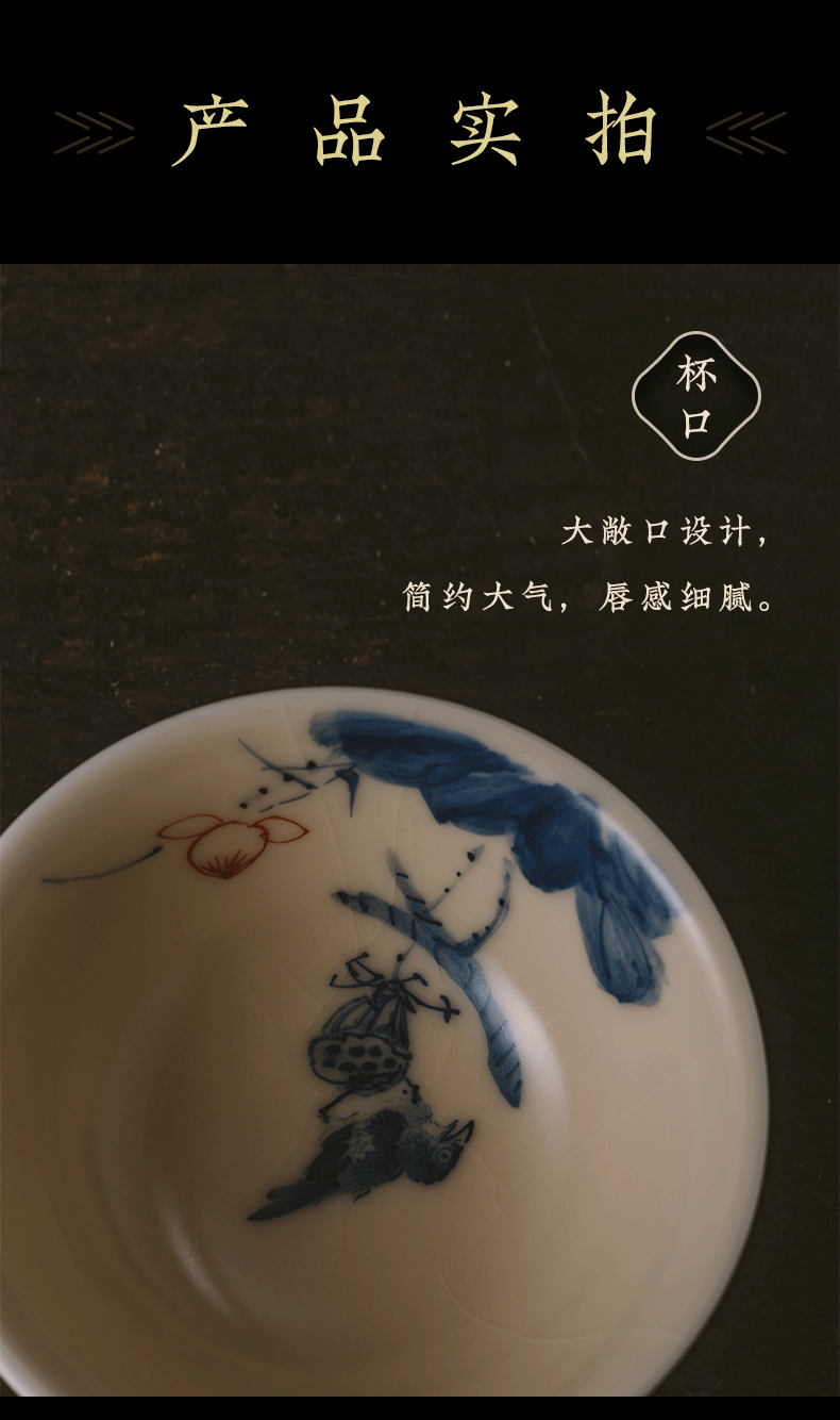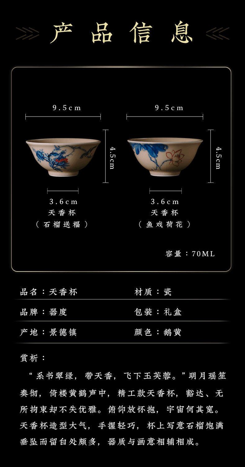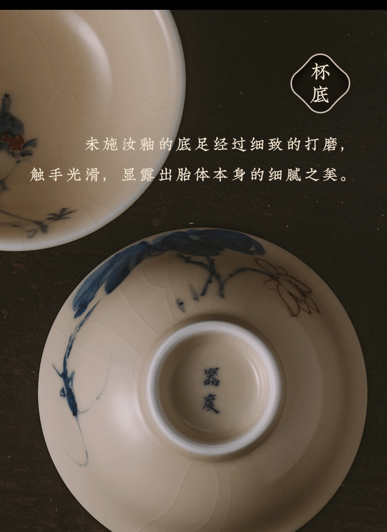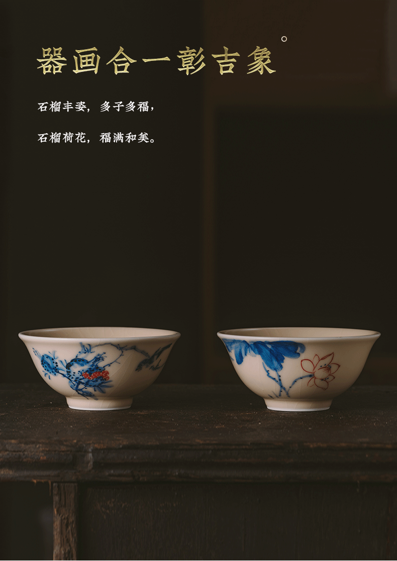 问鼎器度汝窑鹅黄青花天香杯(石榴鸟)(鱼戏荷花)(缺货)