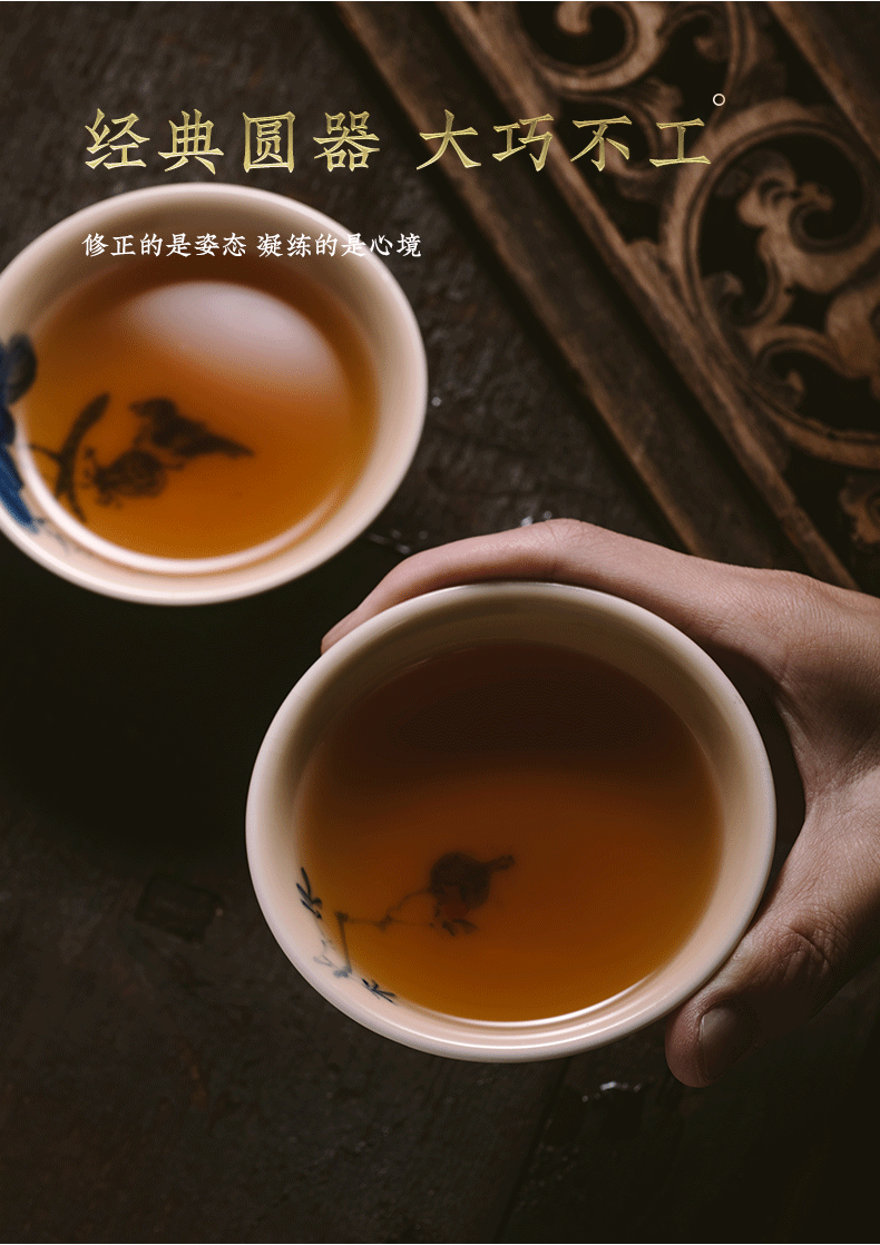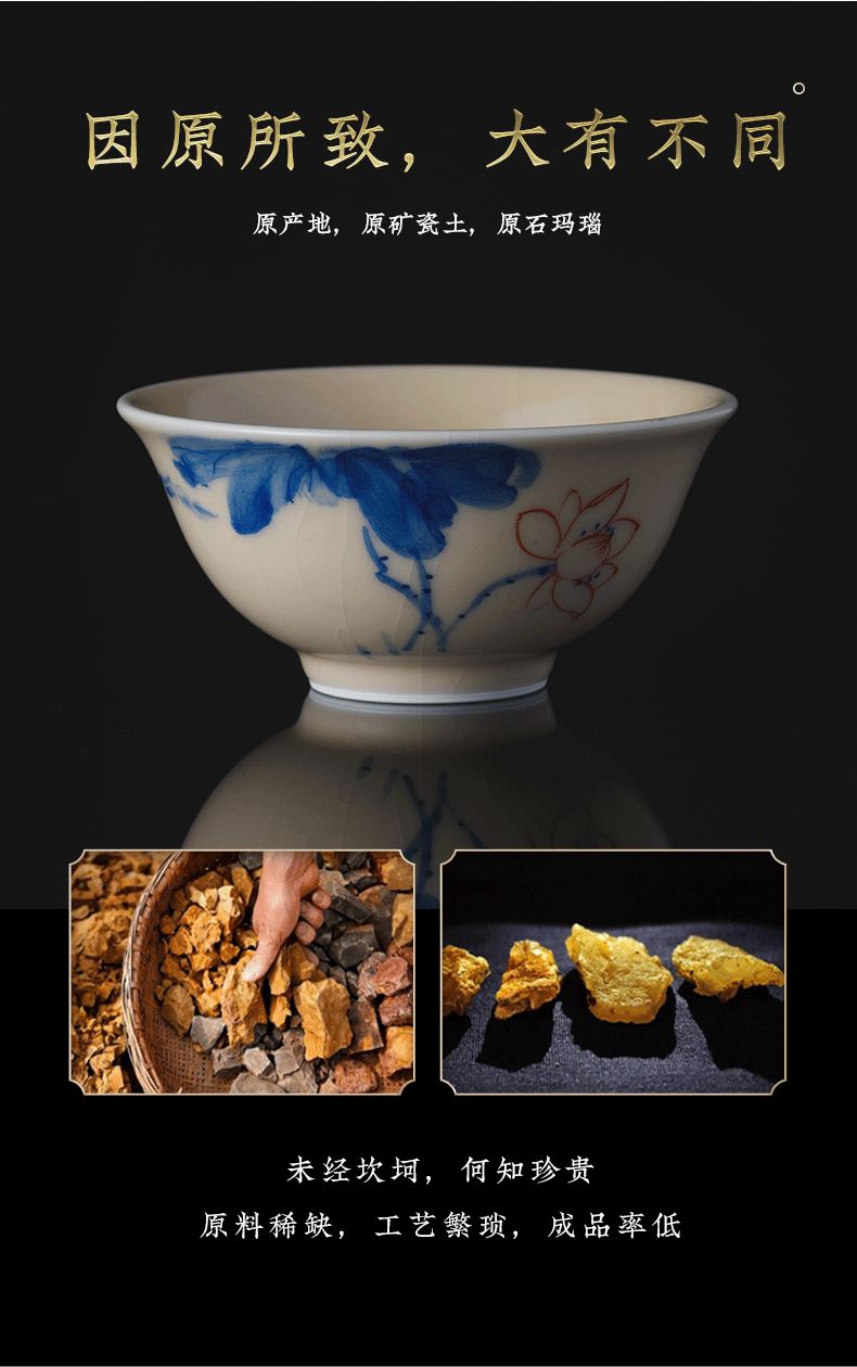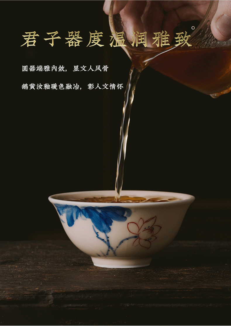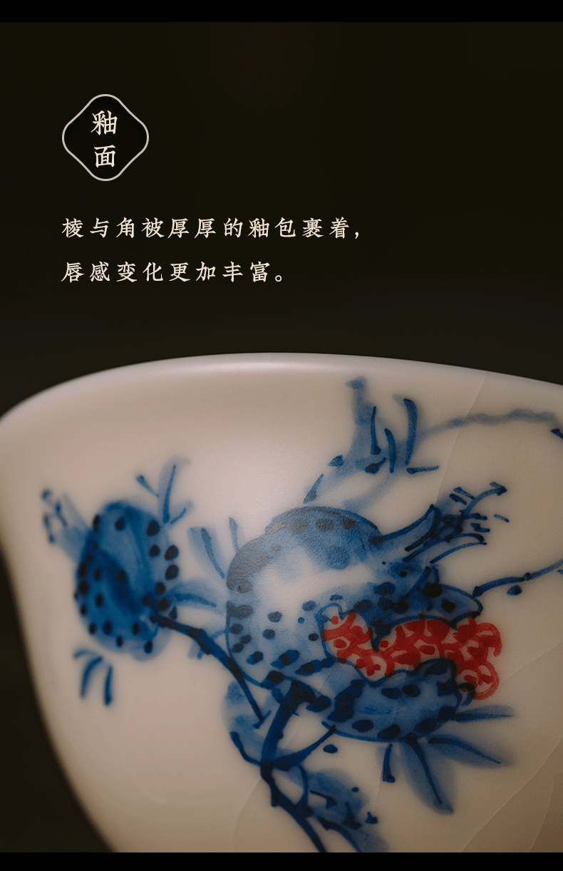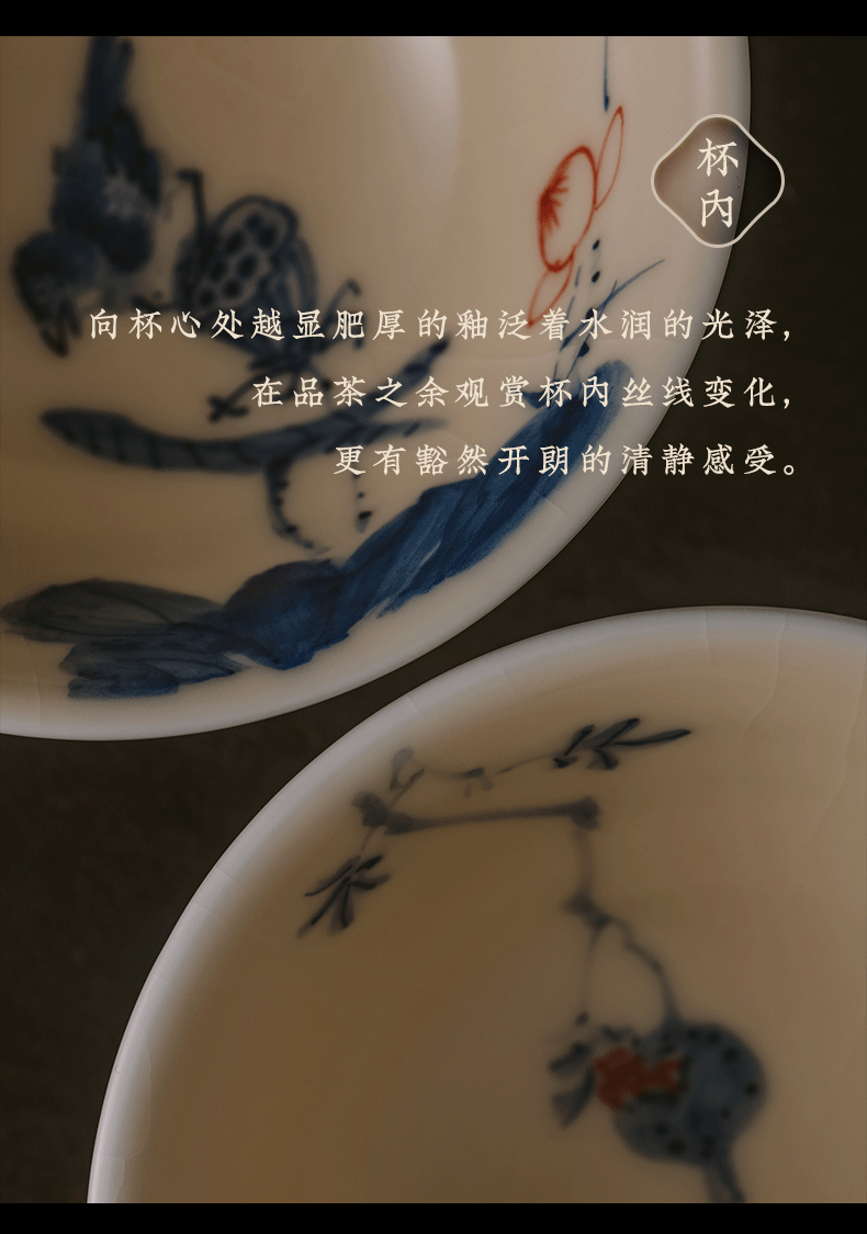 问鼎器度汝窑鹅黄青花天香杯(石榴鸟)(鱼戏荷花)(缺货)