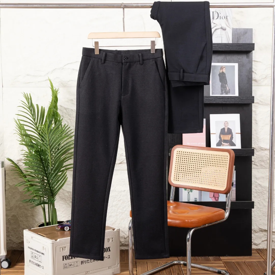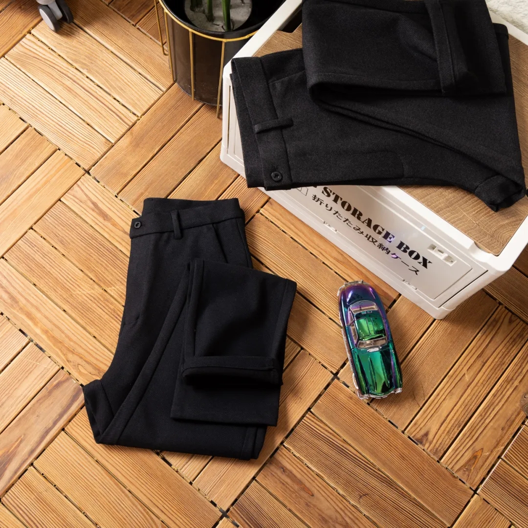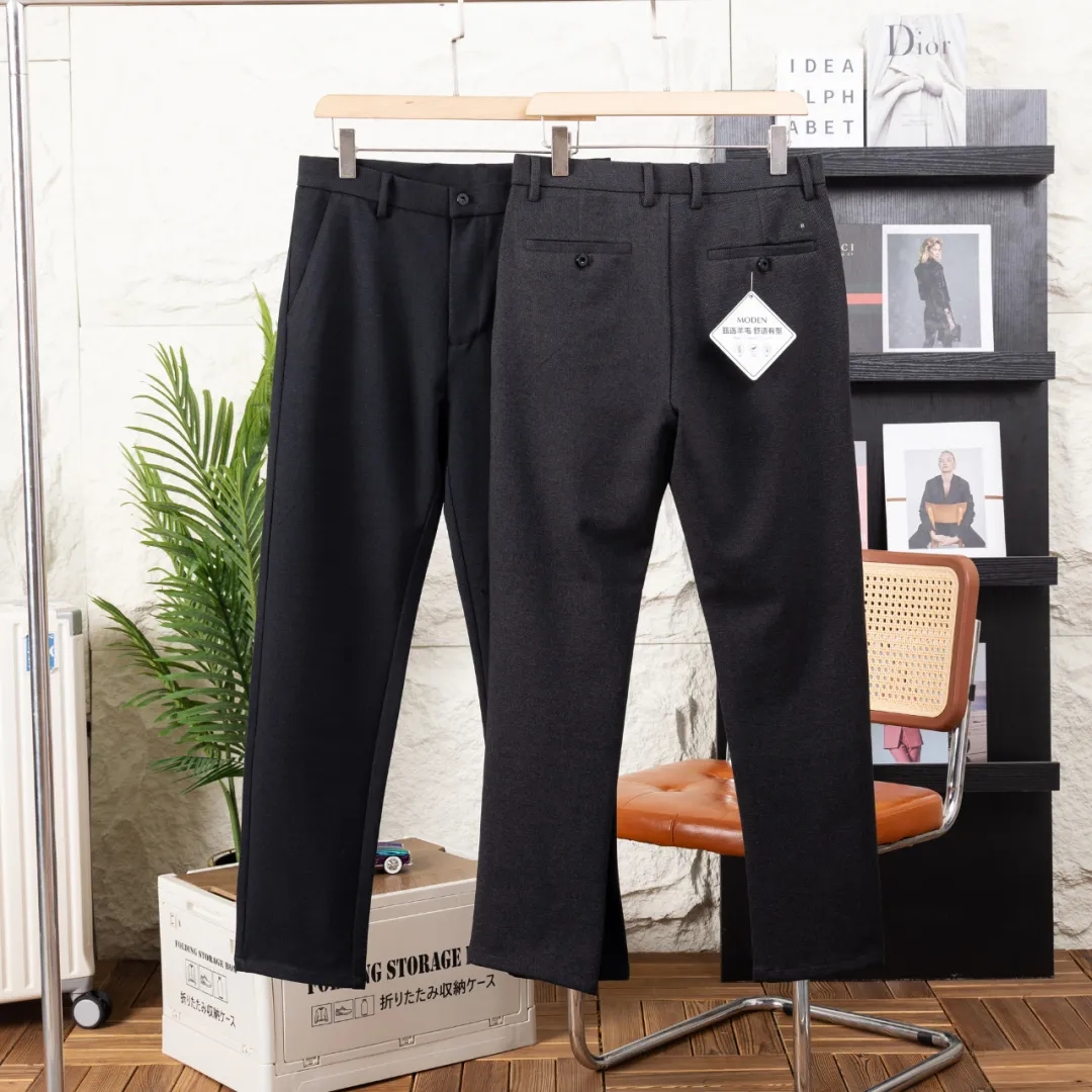 D110603品质巨献!360度无死角包边!秋冬男士羊毛呢轻商务修身小直筒休闲长裤